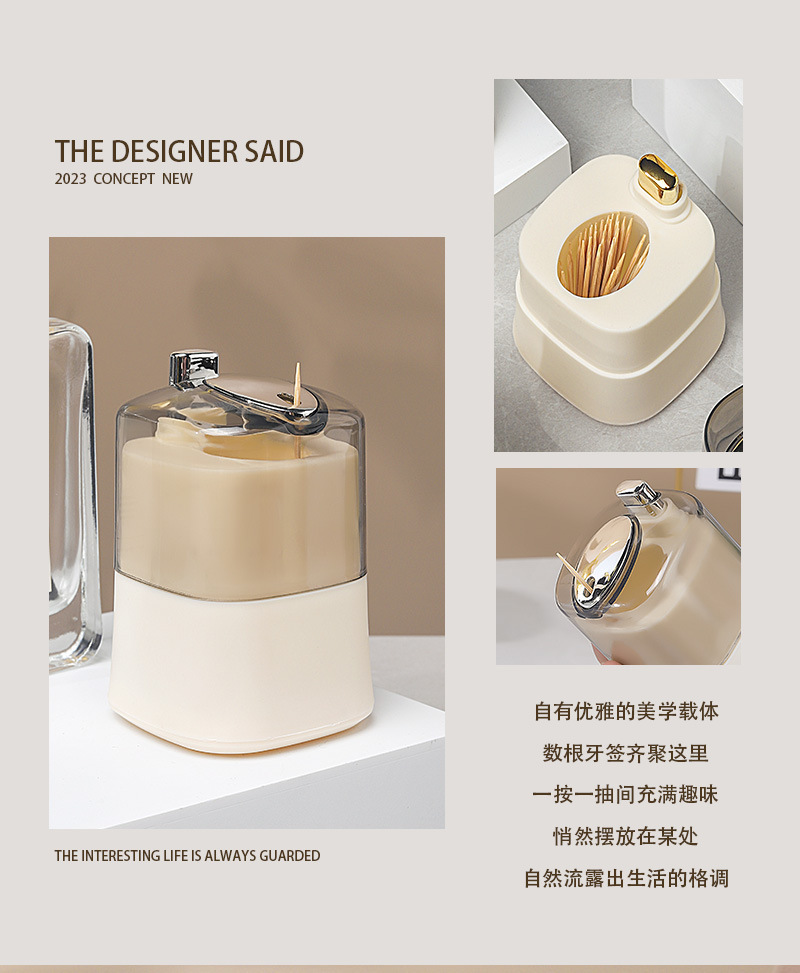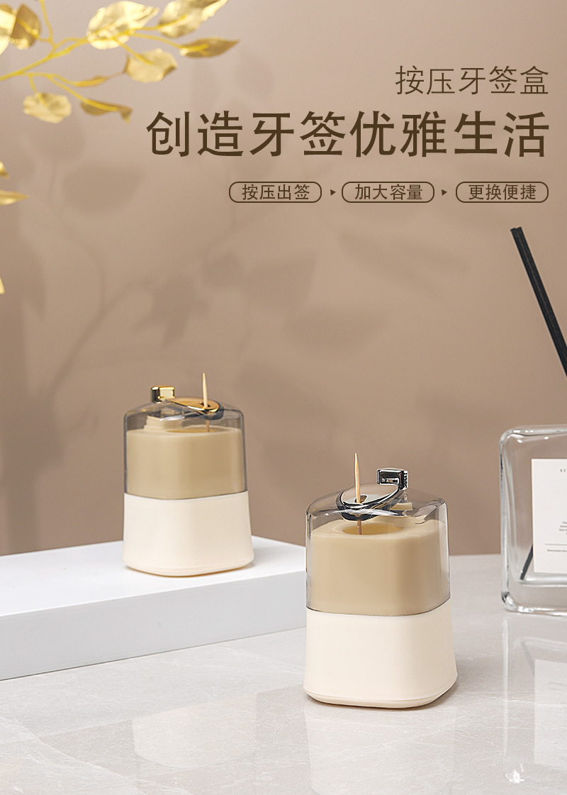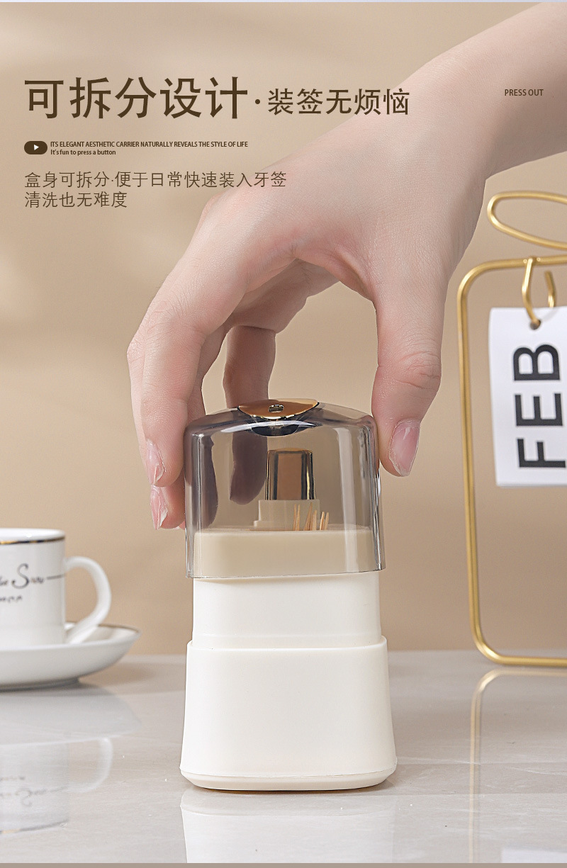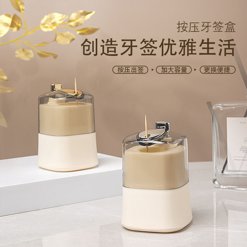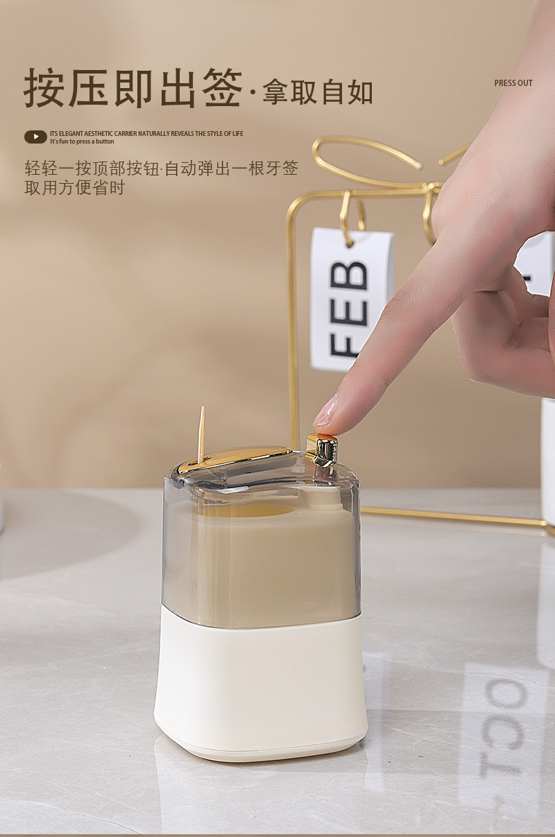 牙签盒创意牙签筒自动弹出家用收纳牙签盒高颜值个性奶油风新款