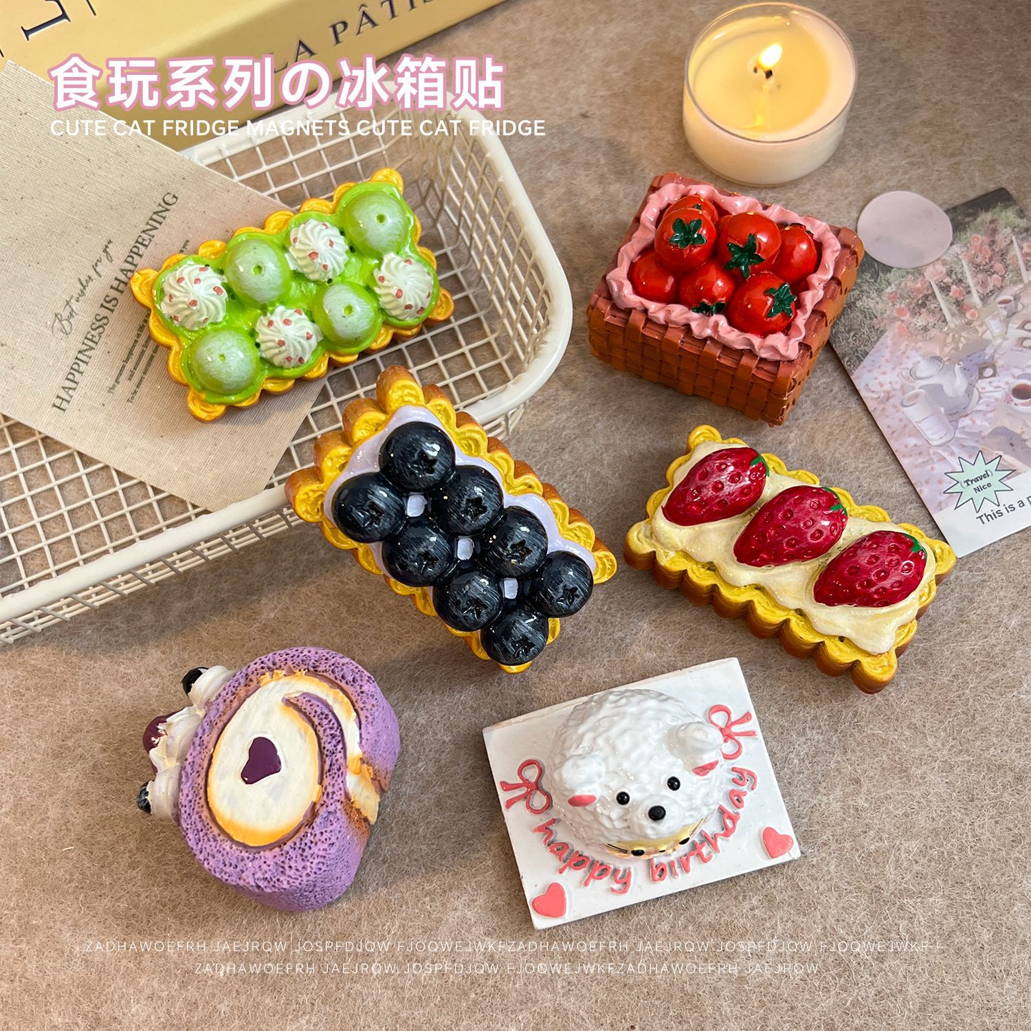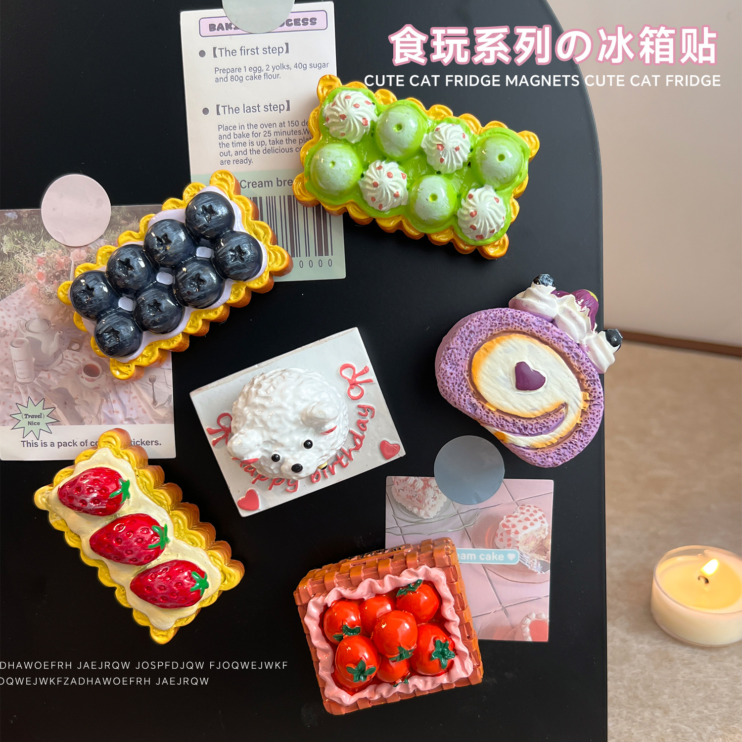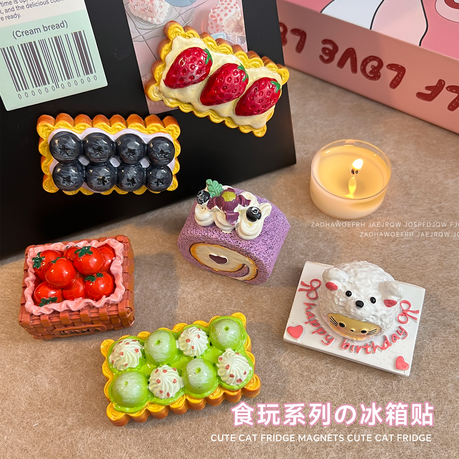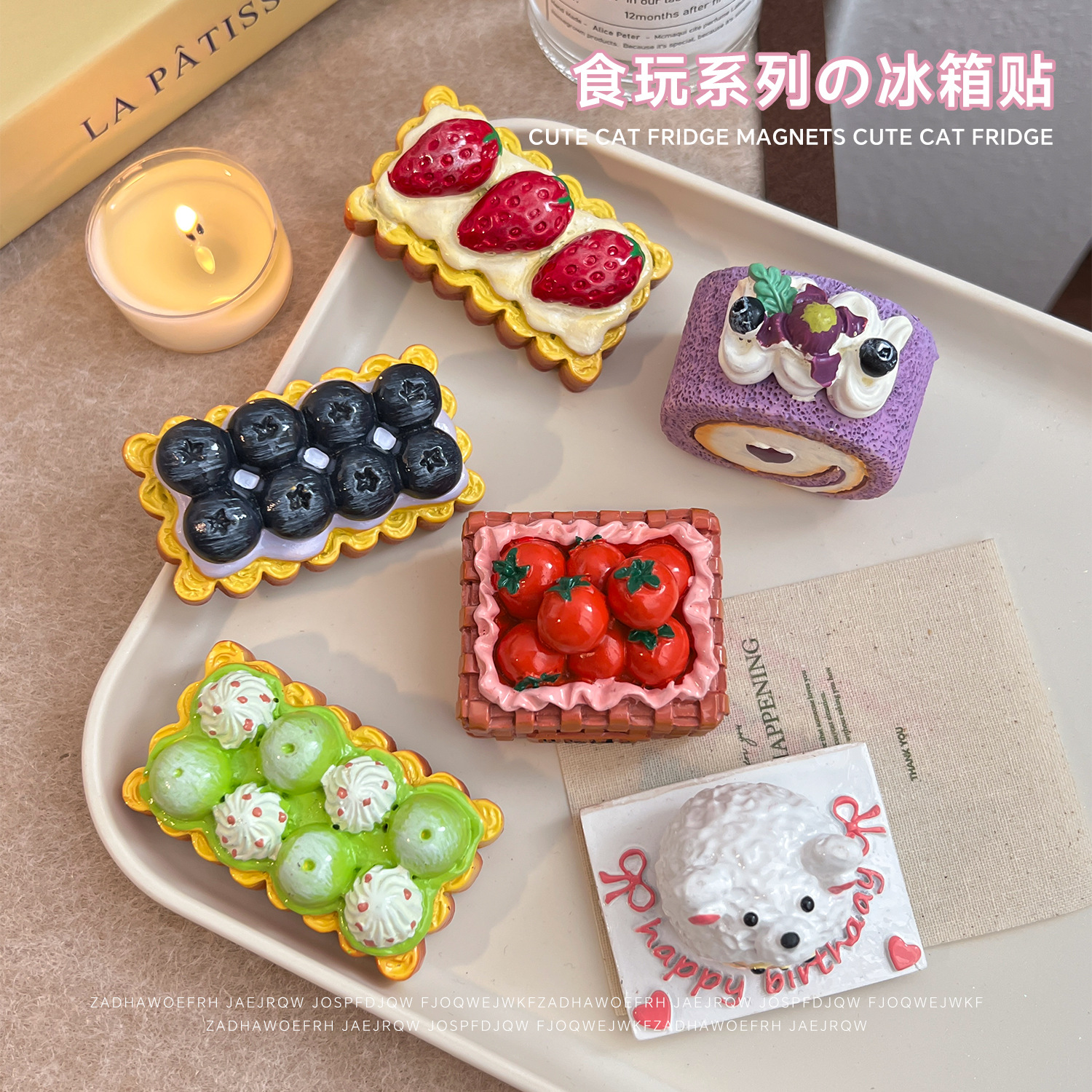 甜品蛋糕磁吸冰箱贴新款卡通KT蛋糕留言磁力贴蓝莓瑞士卷居家装饰