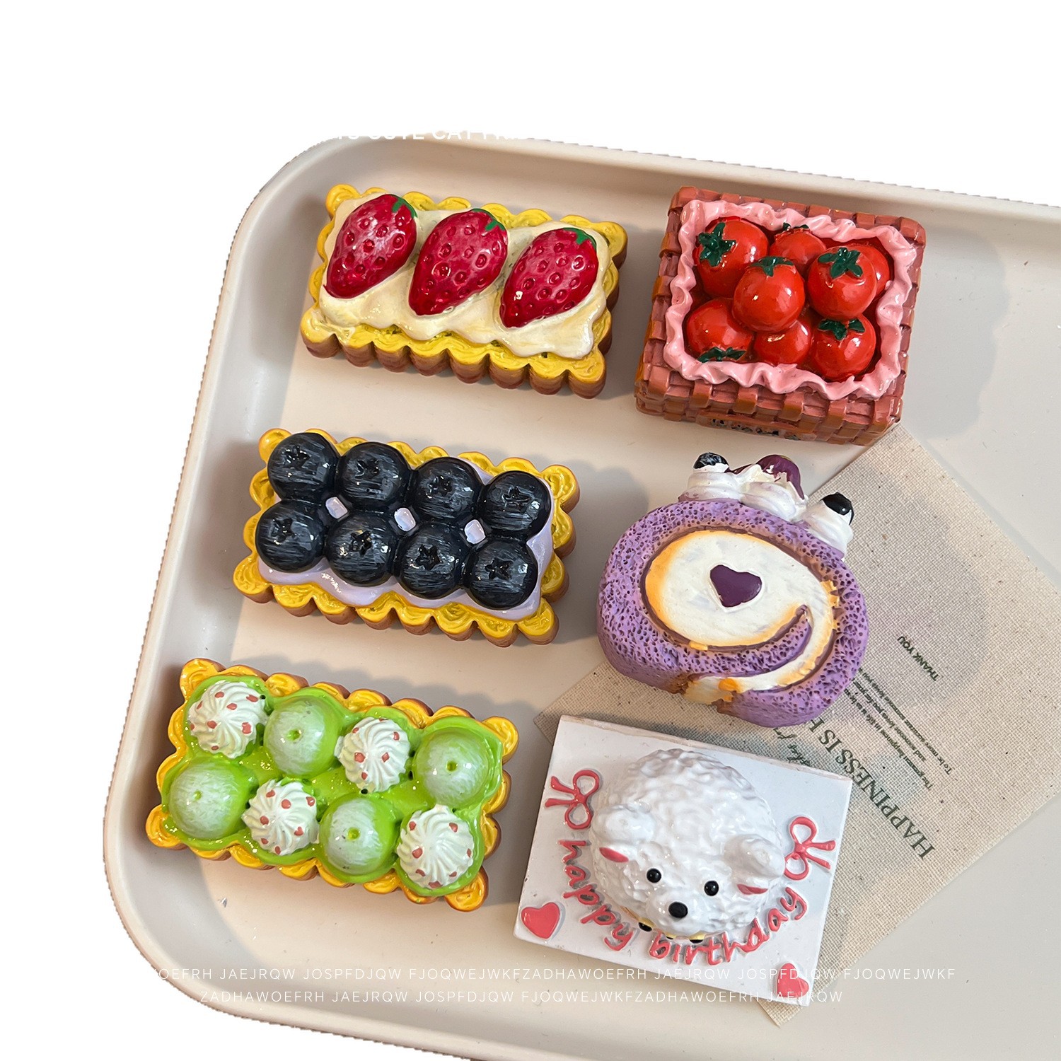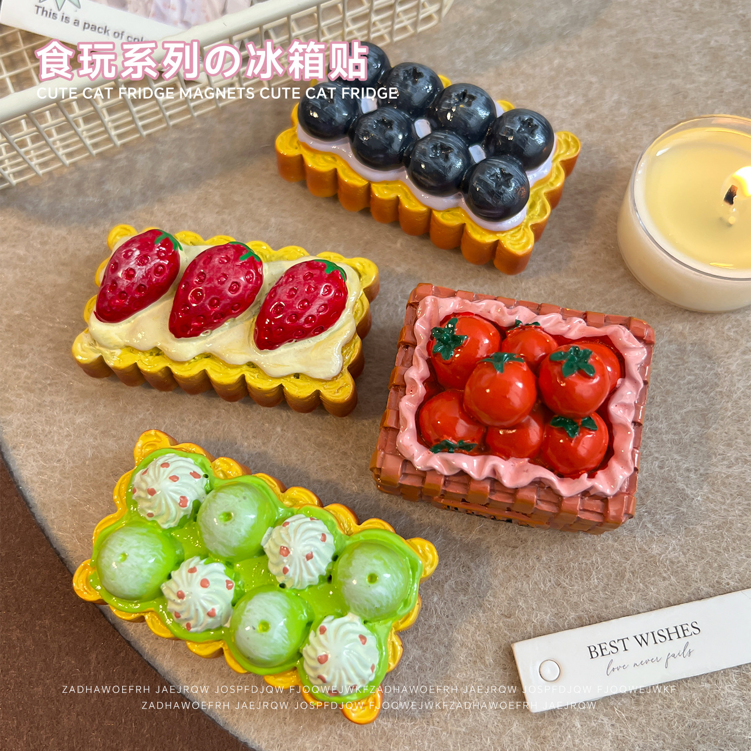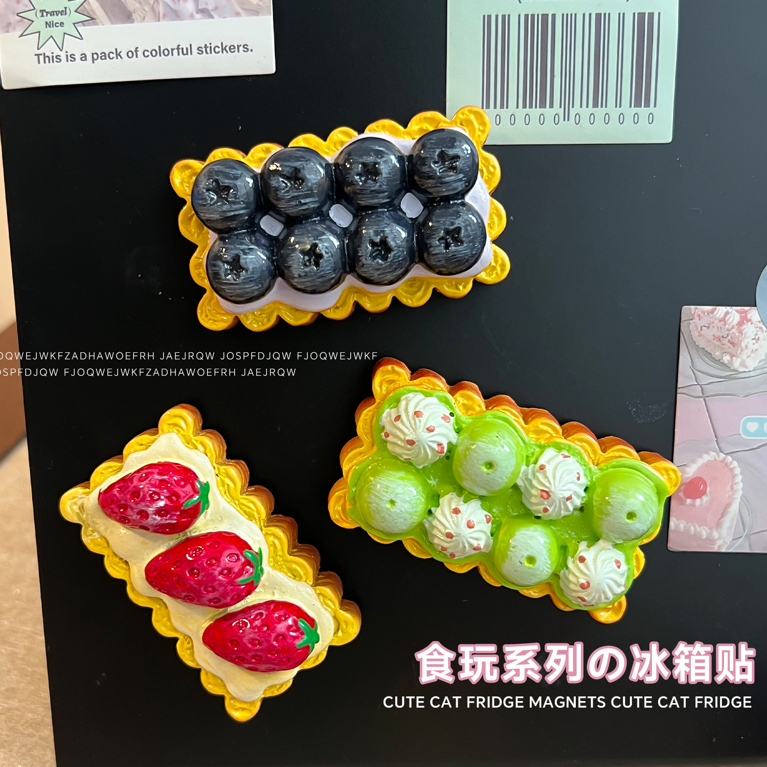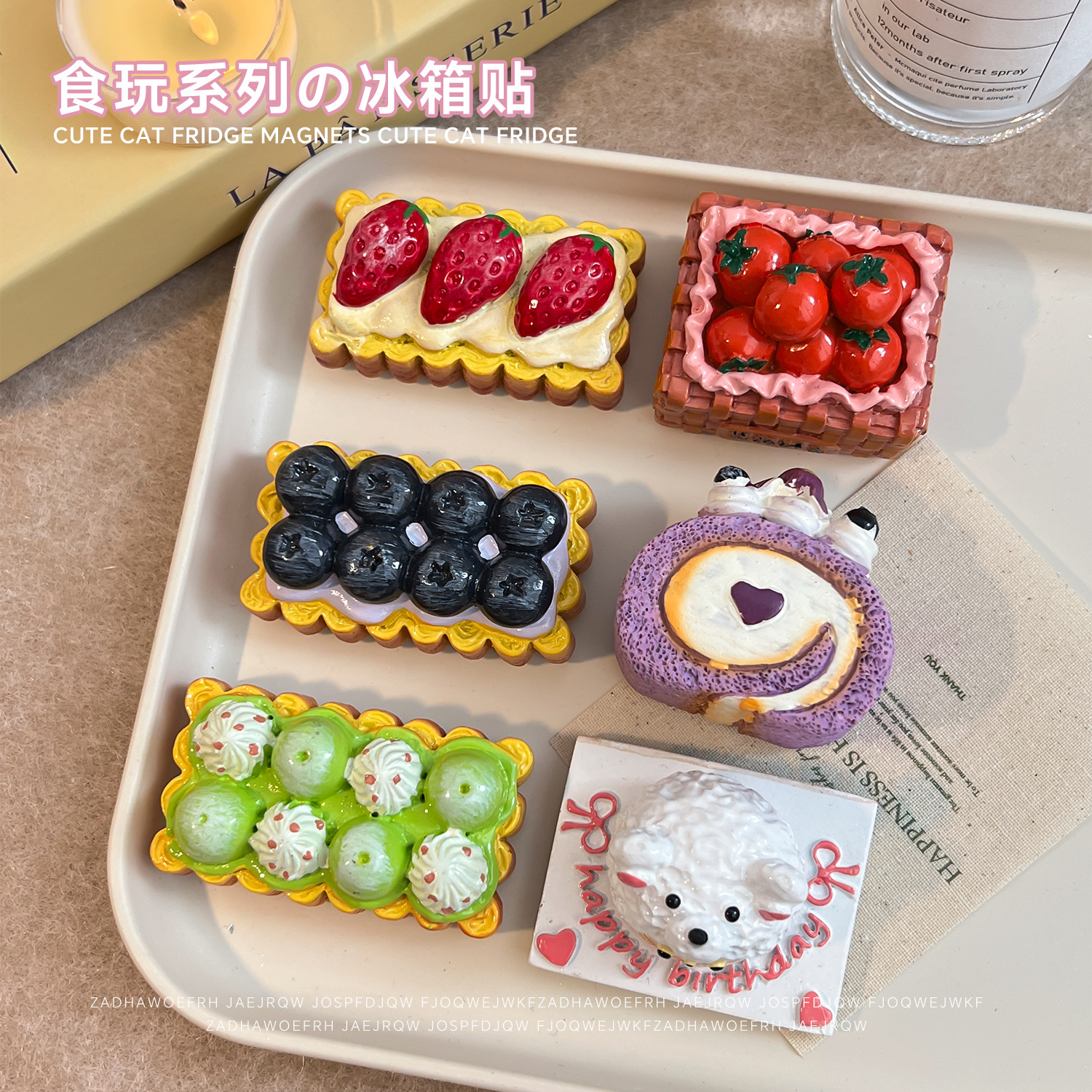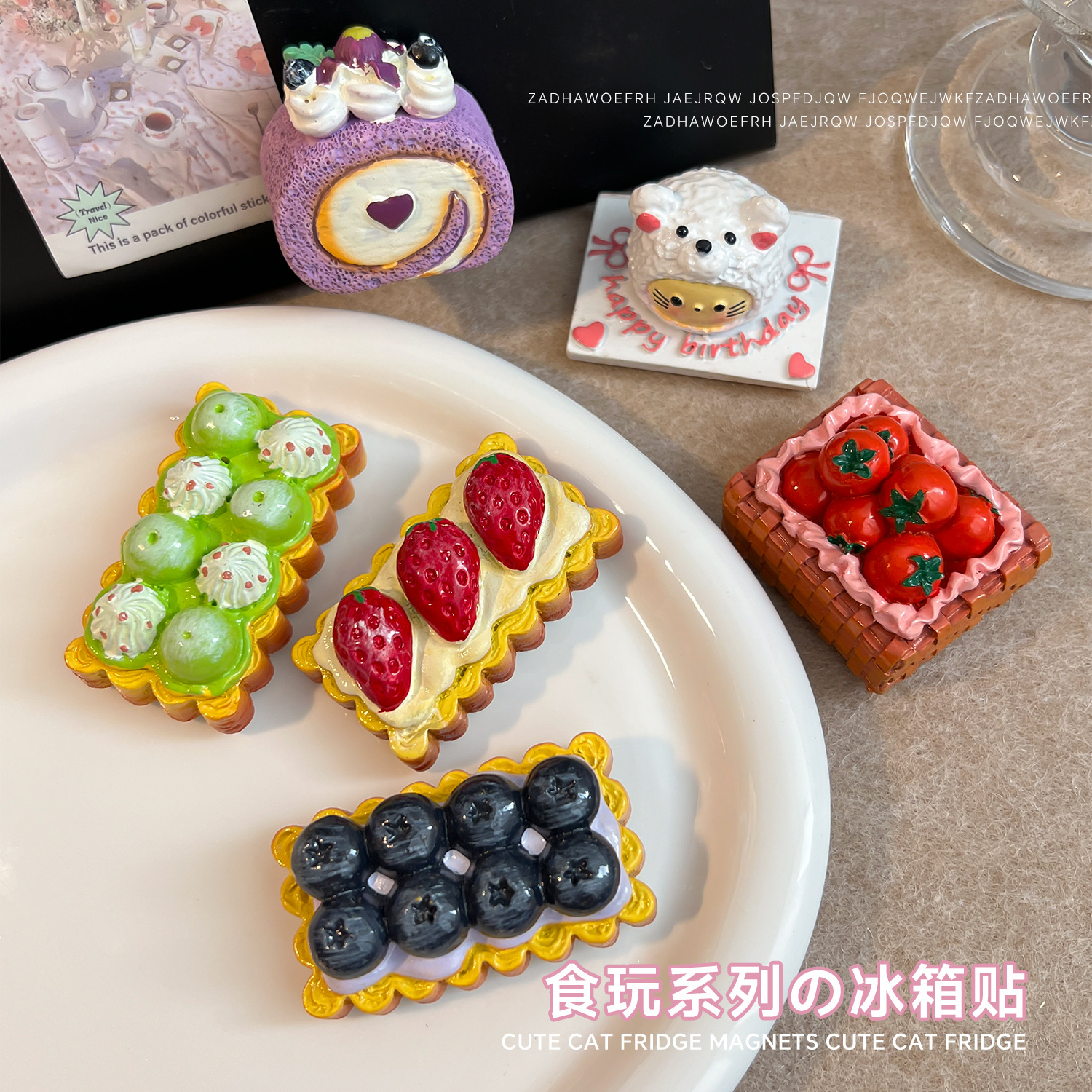 甜品蛋糕磁吸冰箱贴新款卡通KT蛋糕留言磁力贴蓝莓瑞士卷居家装饰