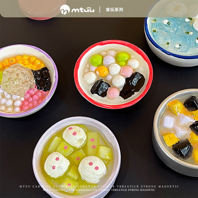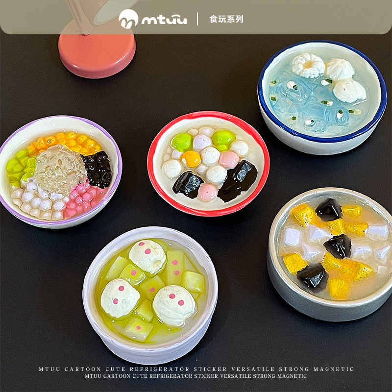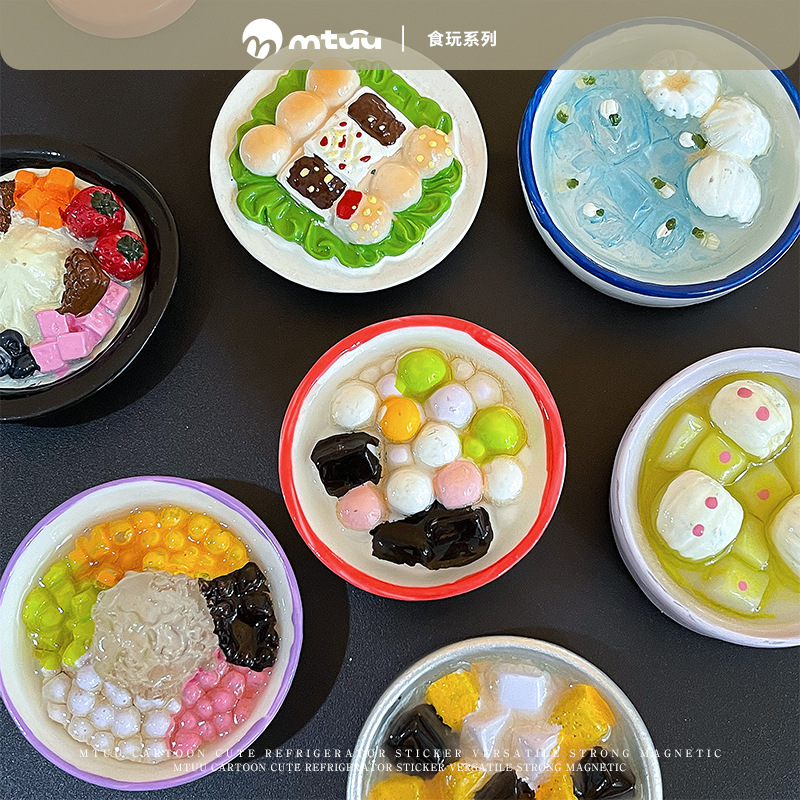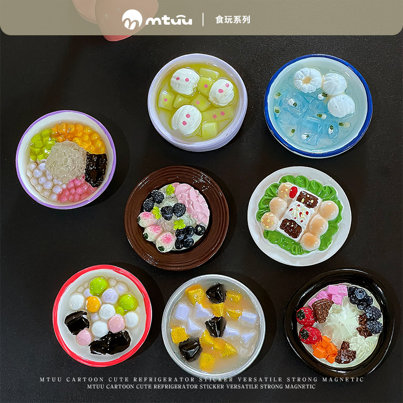 夏日仿真食玩磁吸冰箱贴甜品水果酸奶碗冰箱磁性贴装饰摆件留言贴