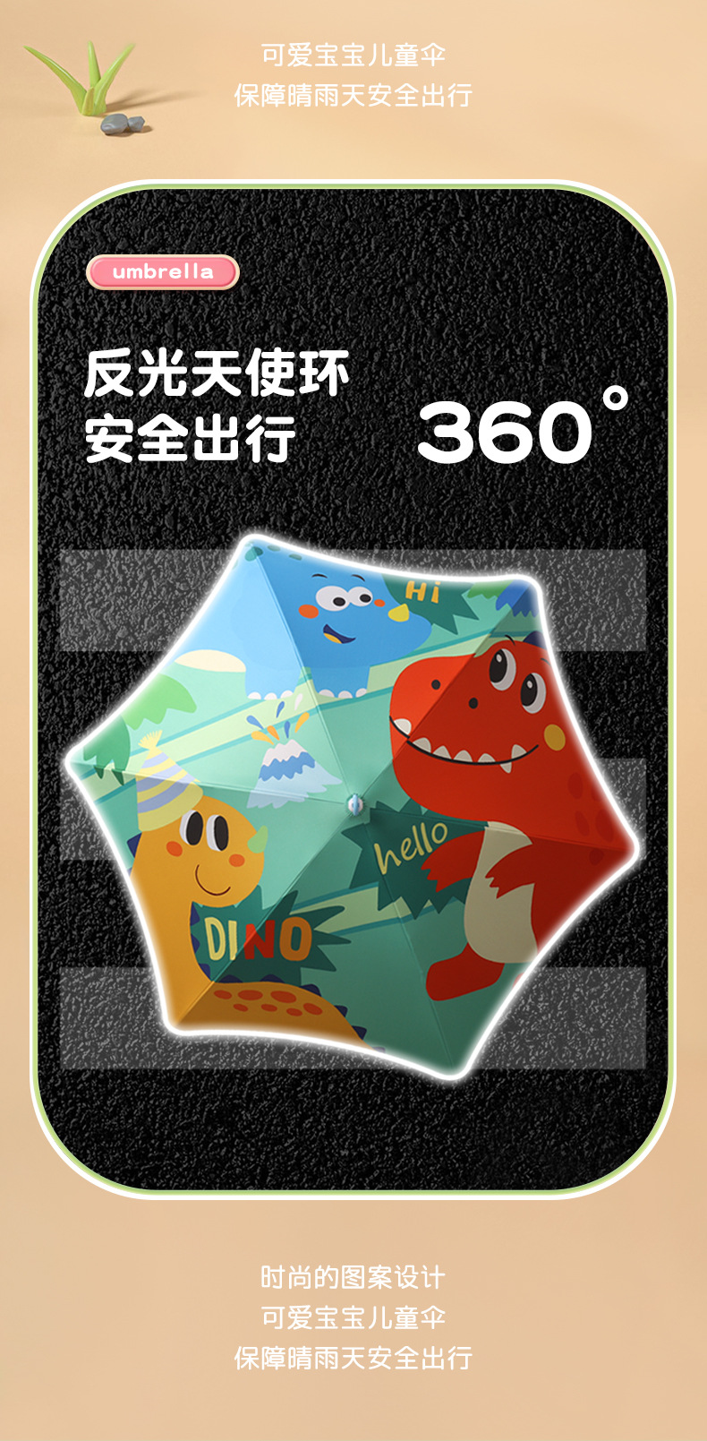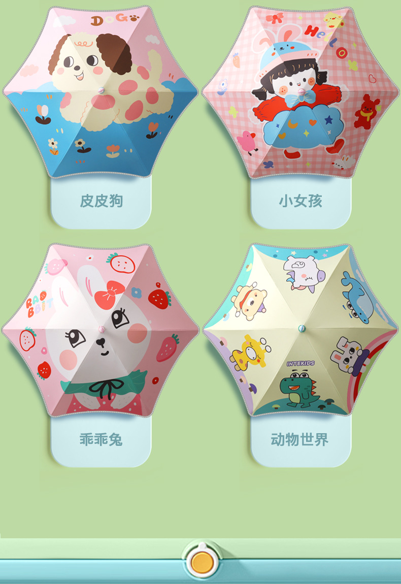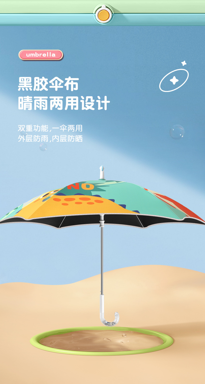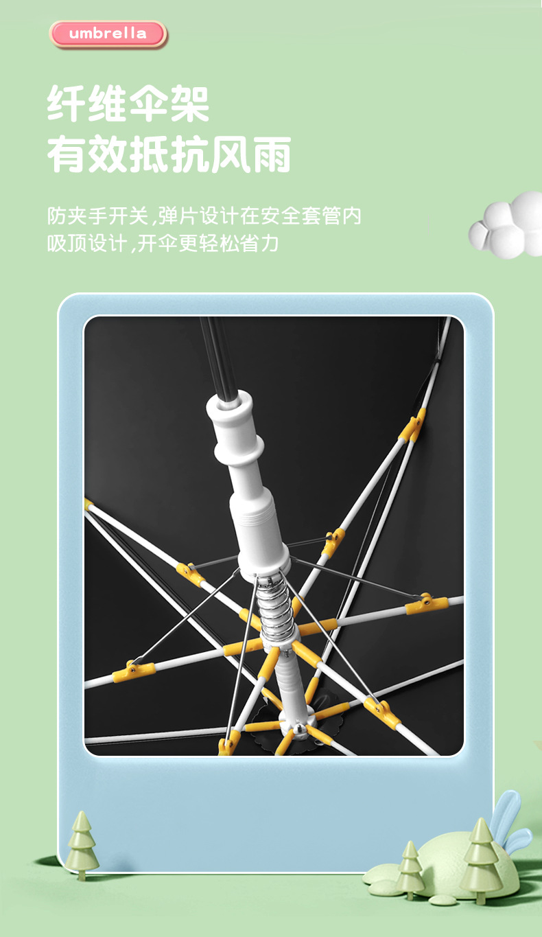 儿童雨伞圆角长柄伞卡通图案男女孩中小学生安全反光条伞可定制