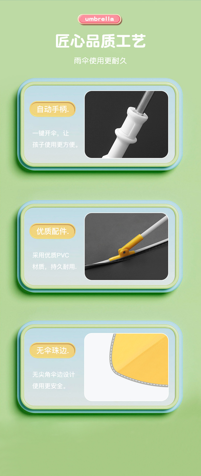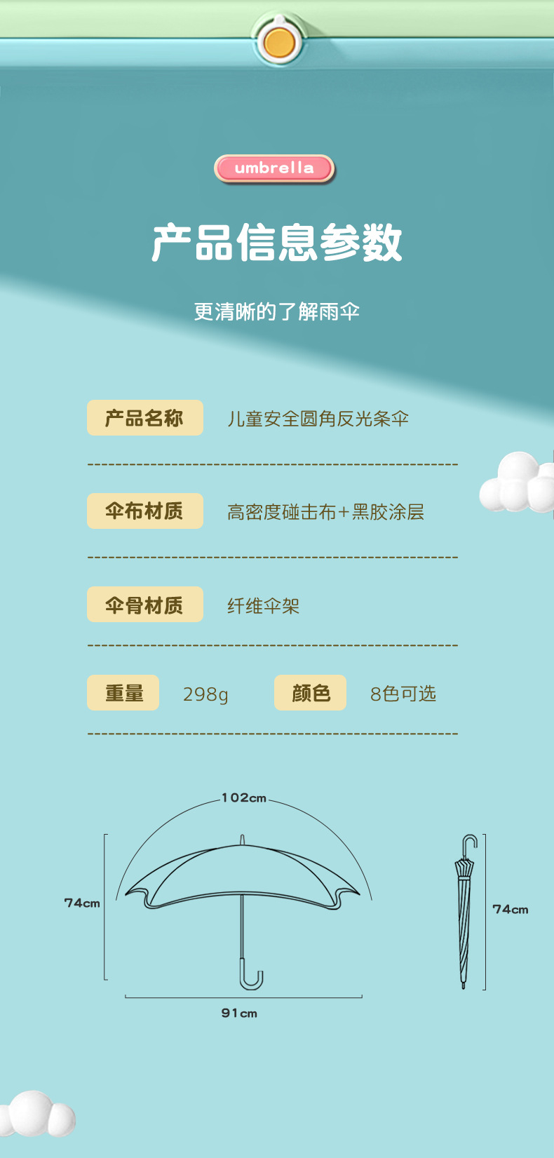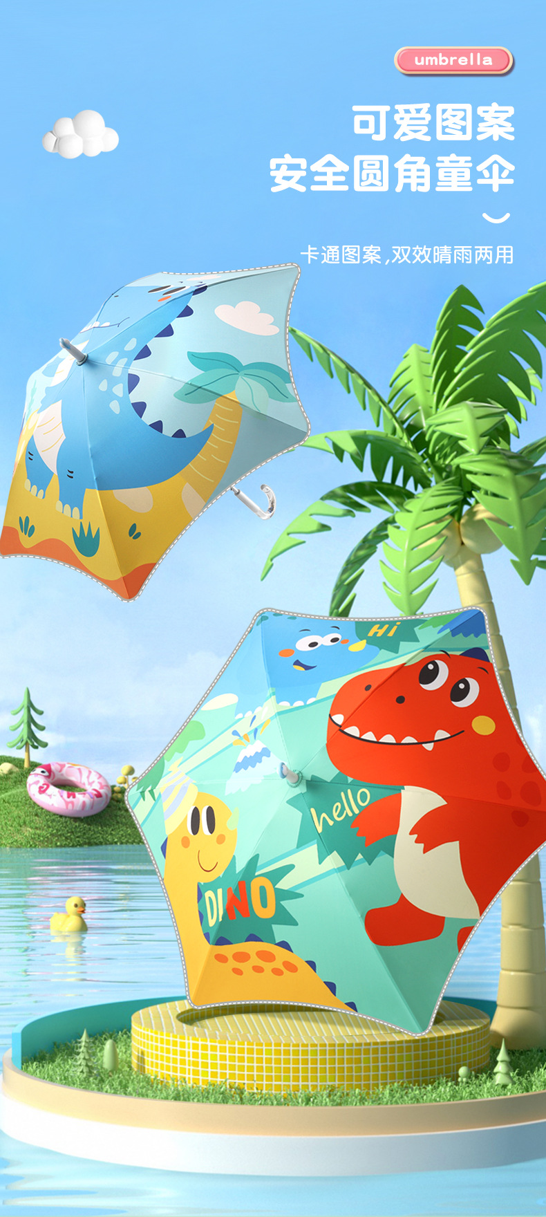 儿童雨伞圆角长柄伞卡通图案男女孩中小学生安全反光条伞可定制