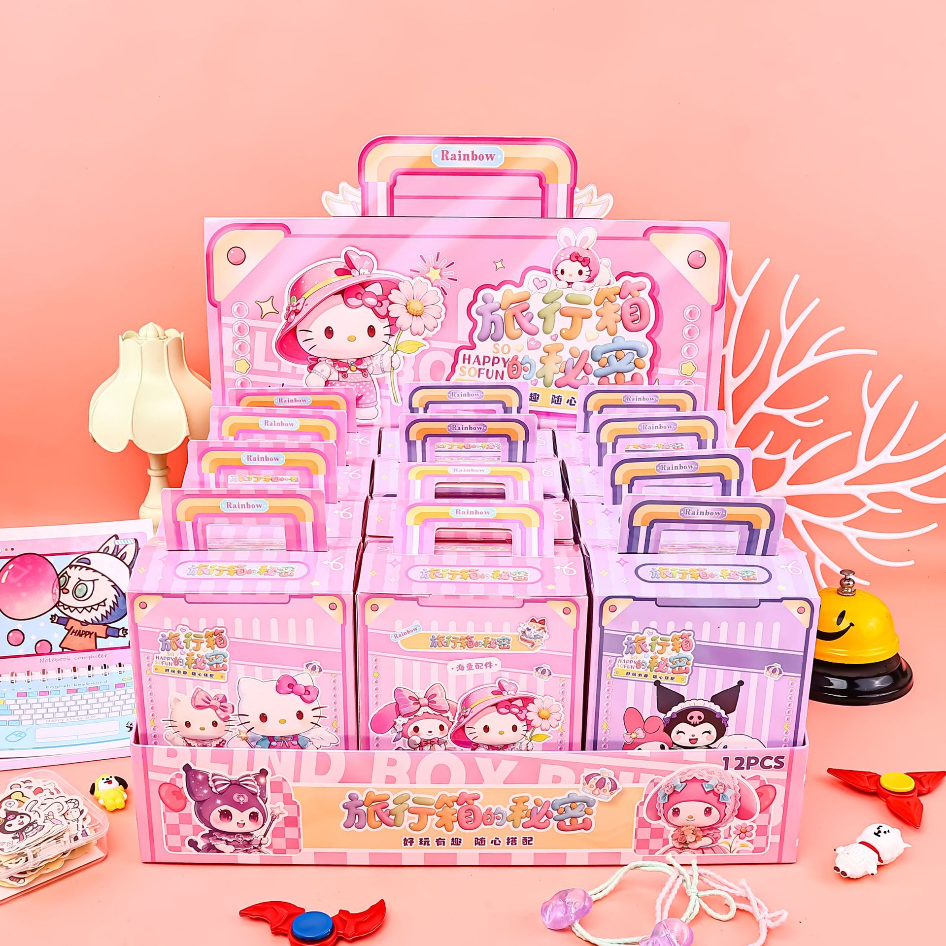 三丽鸥旅行箱惊喜小礼盒 创意贴纸手账盲盒 12入整盒 礼物批发
