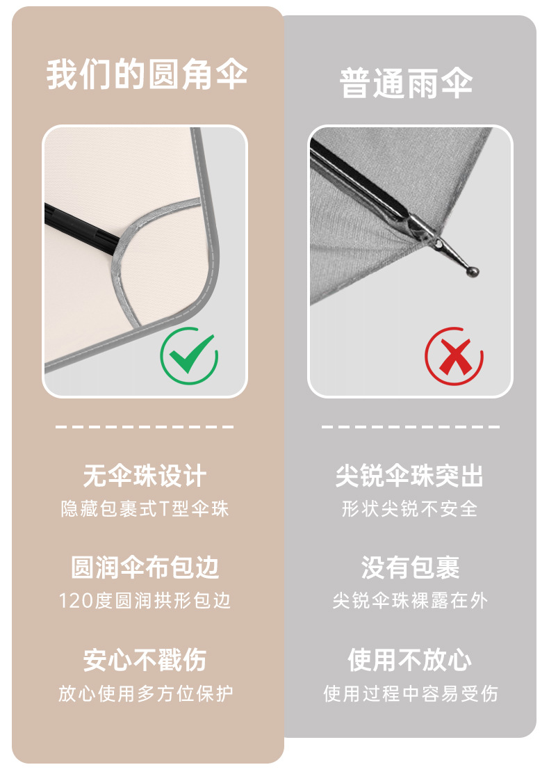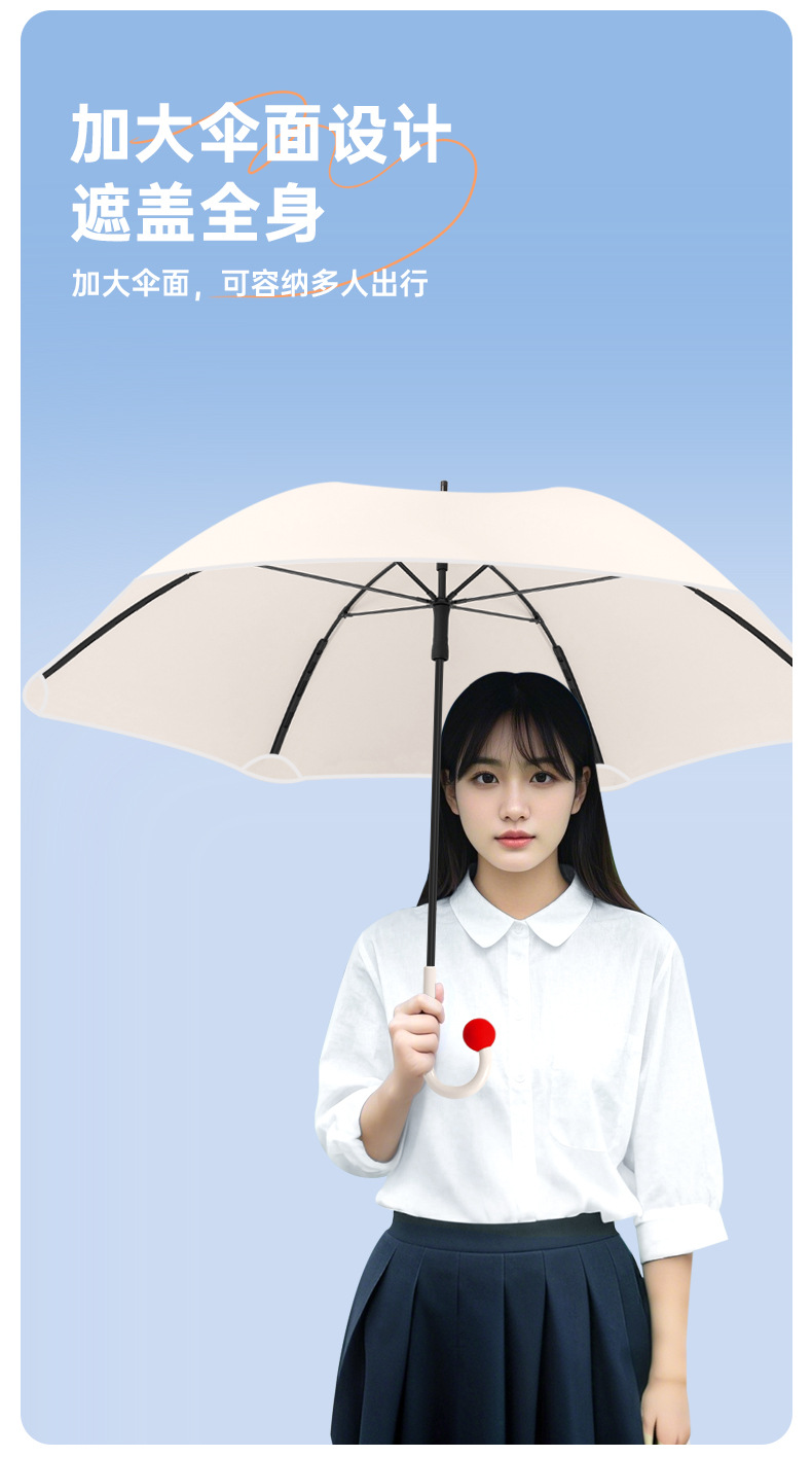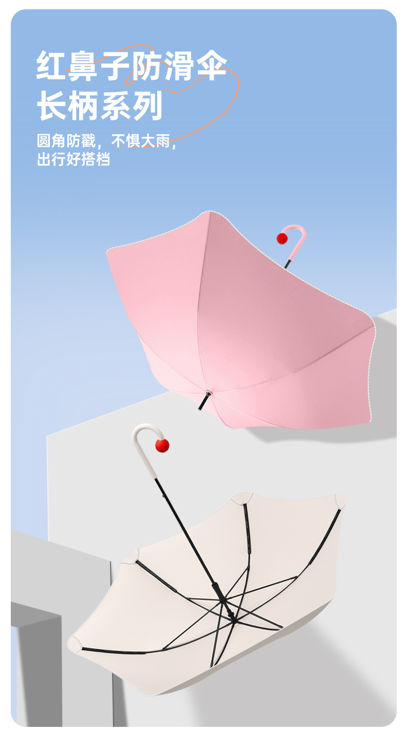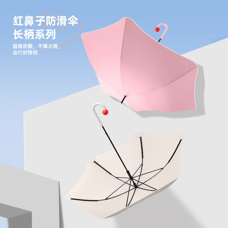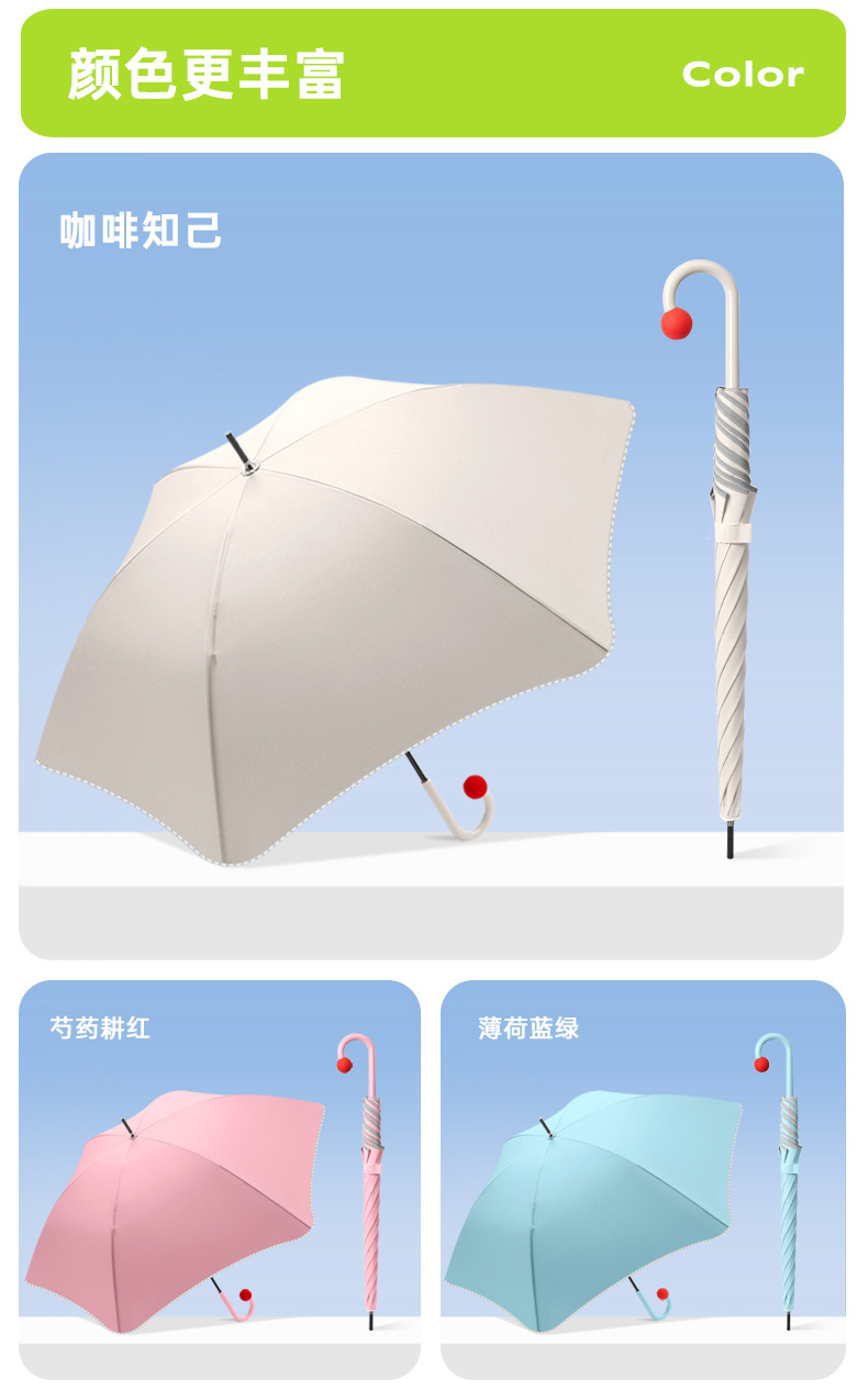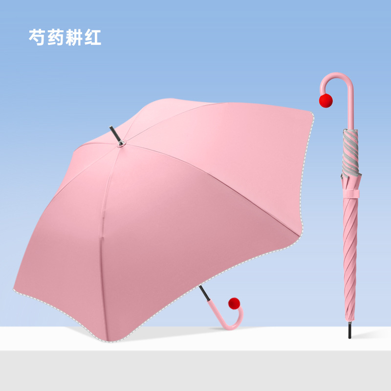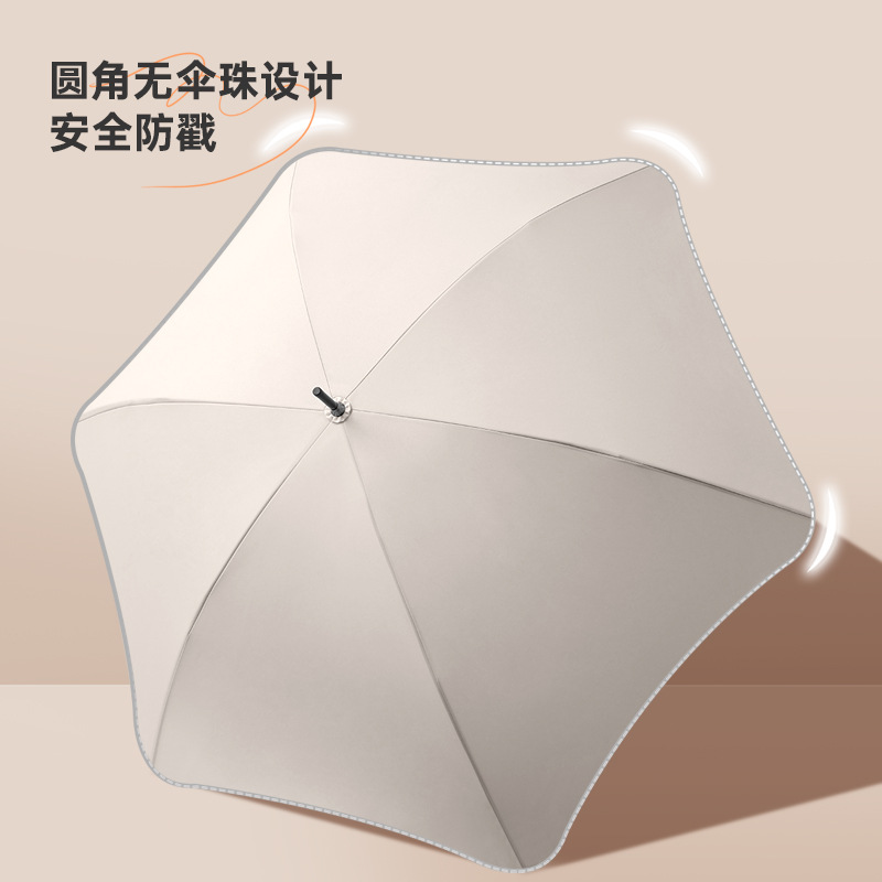 新款圆角女直杆雨伞日系可爱防戳手动长柄晴雨两用伞定制LOGO批发