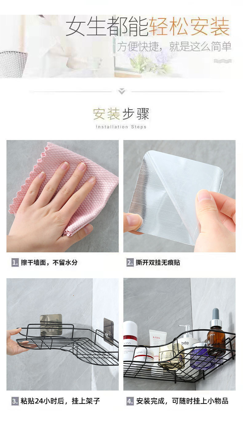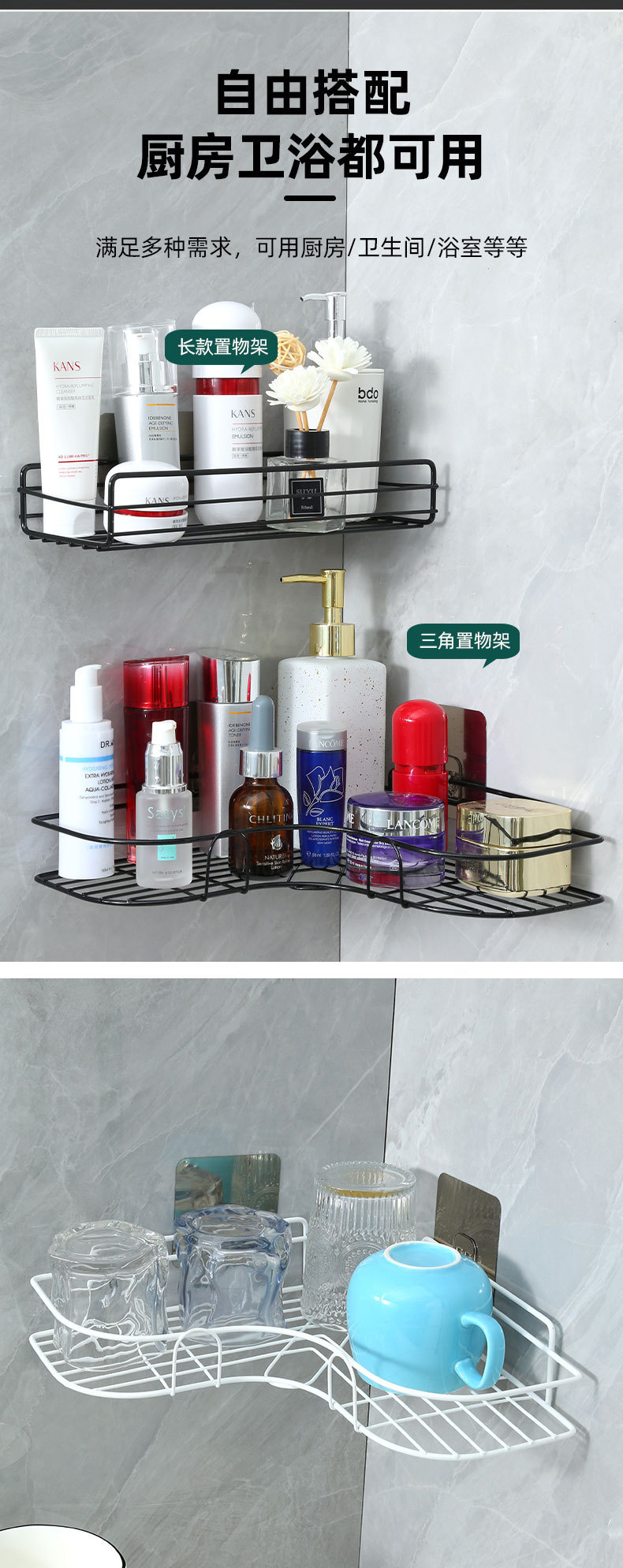 厨房收纳架厕所洗簌台收纳神器卫生间免打孔三角架浴室转角置物架