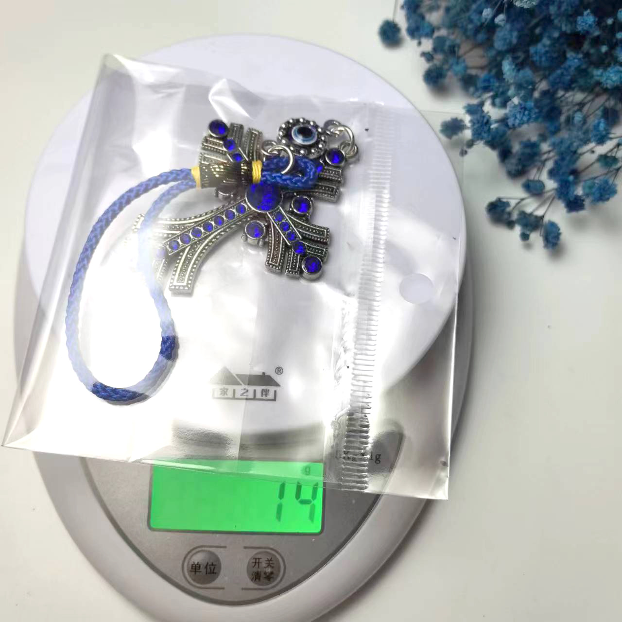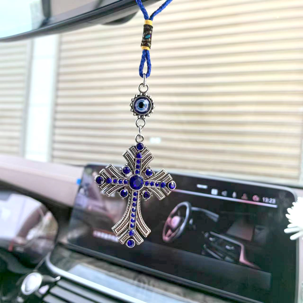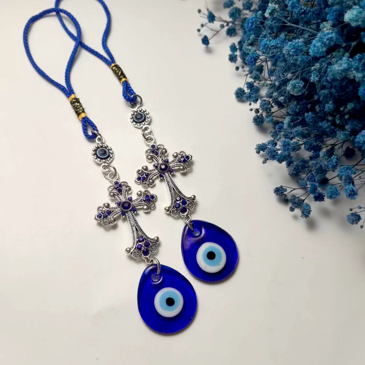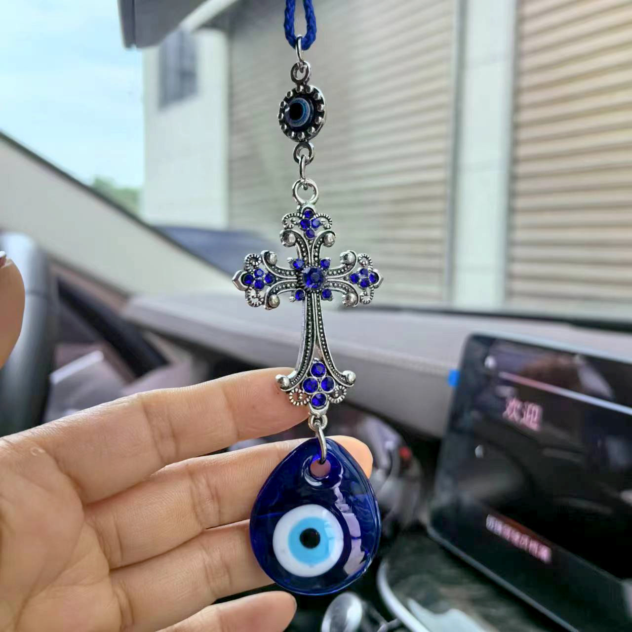 专供恶魔之眼土耳其蓝色眼睛镶钻十字架好运装饰挂件车挂包包挂件