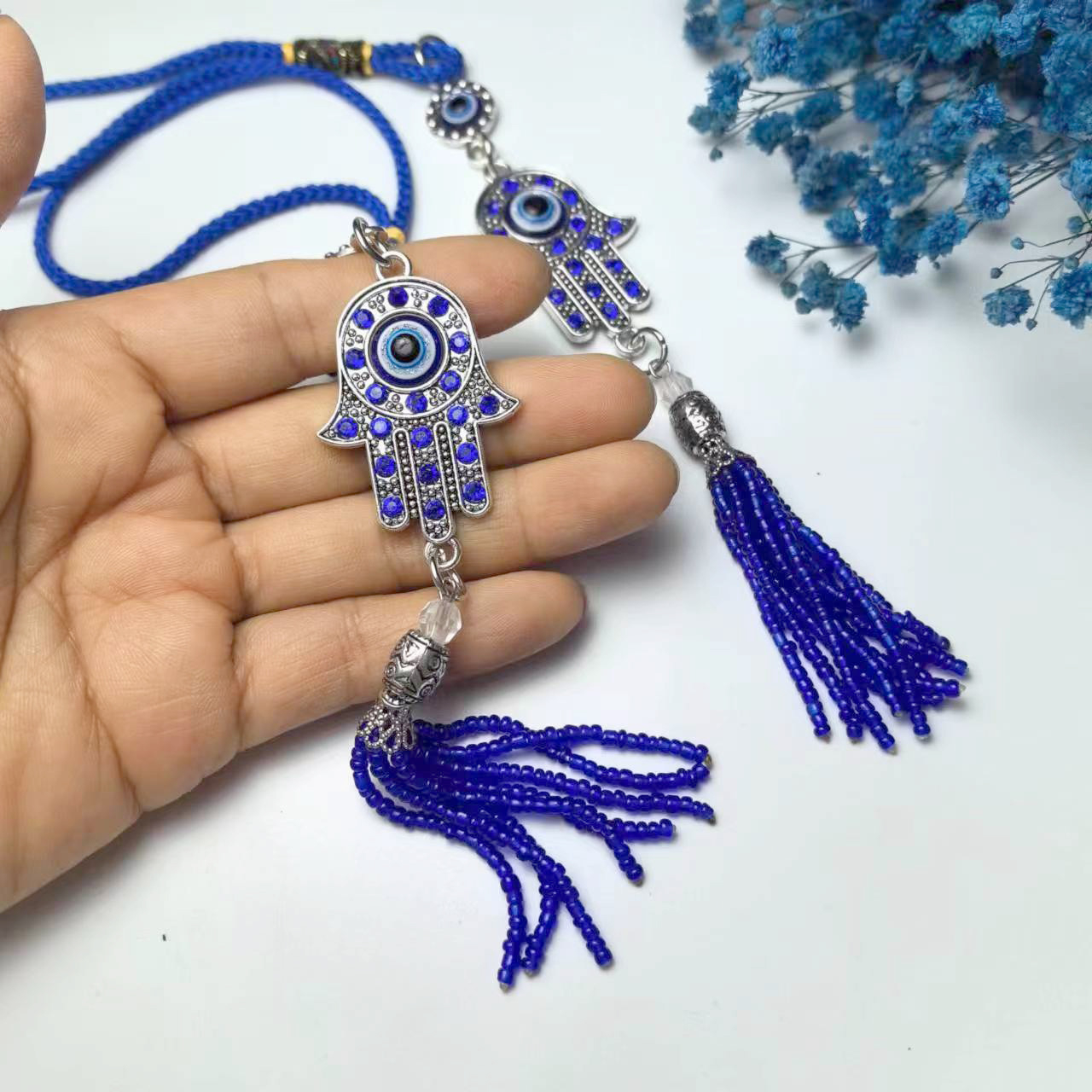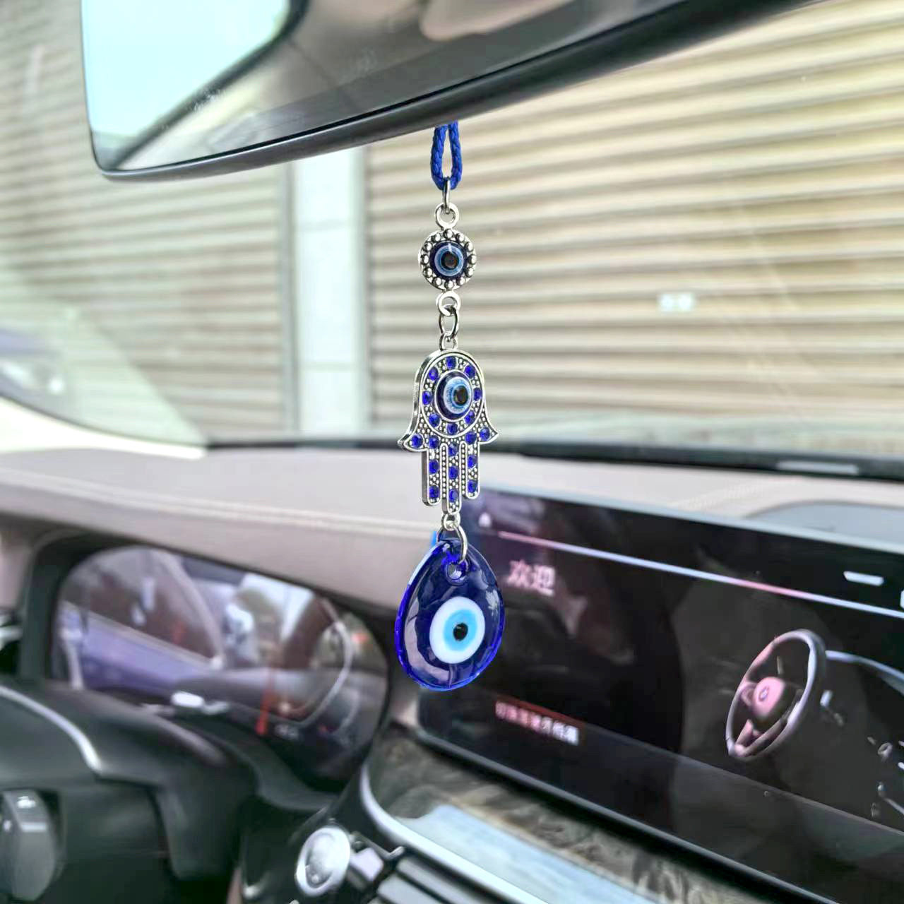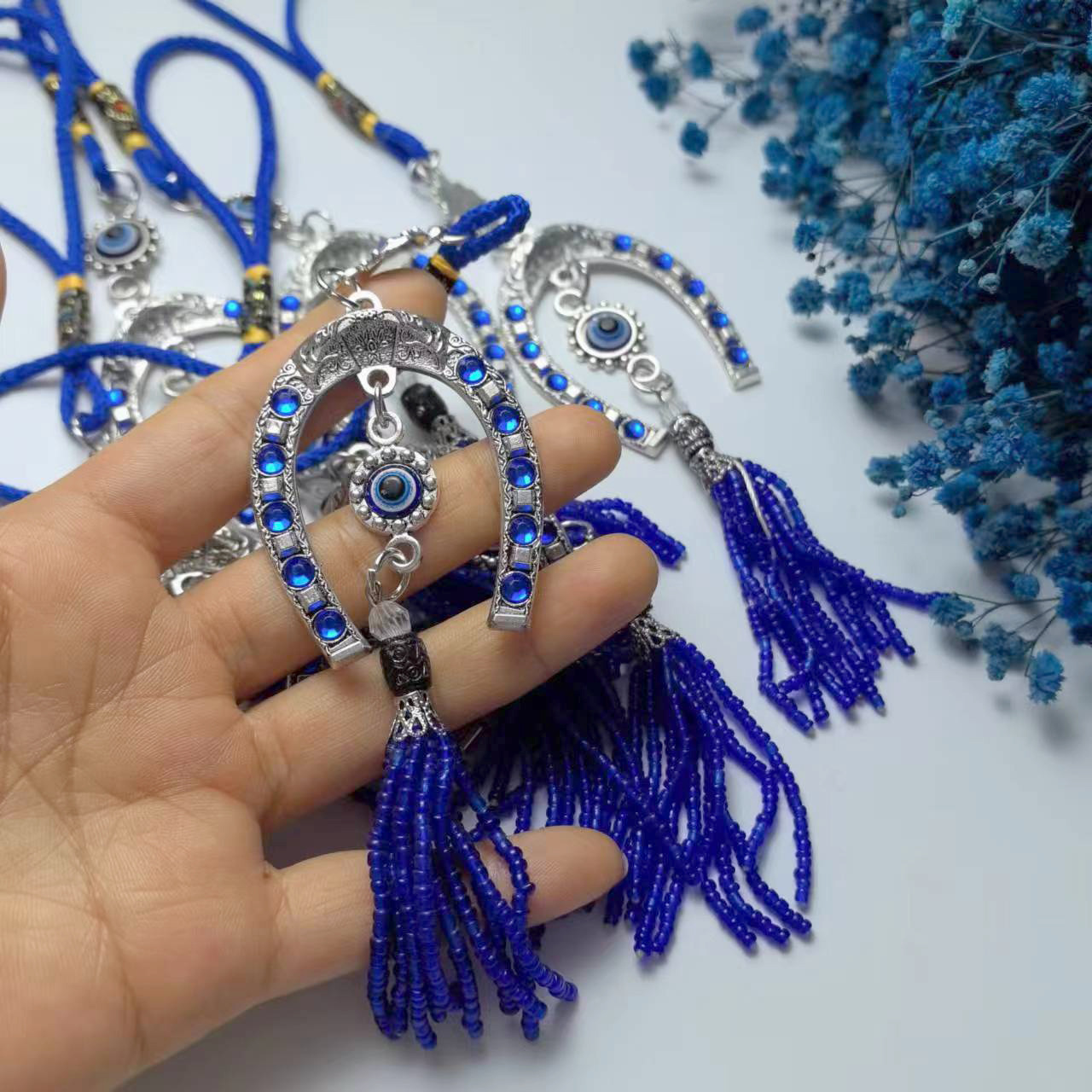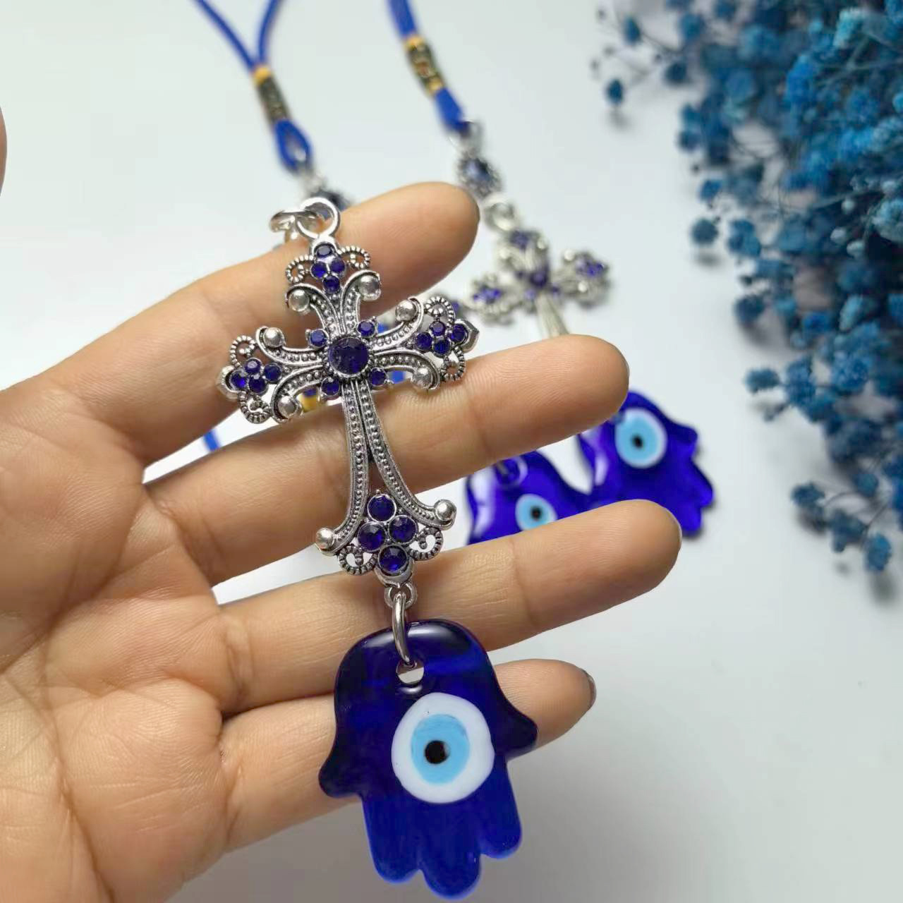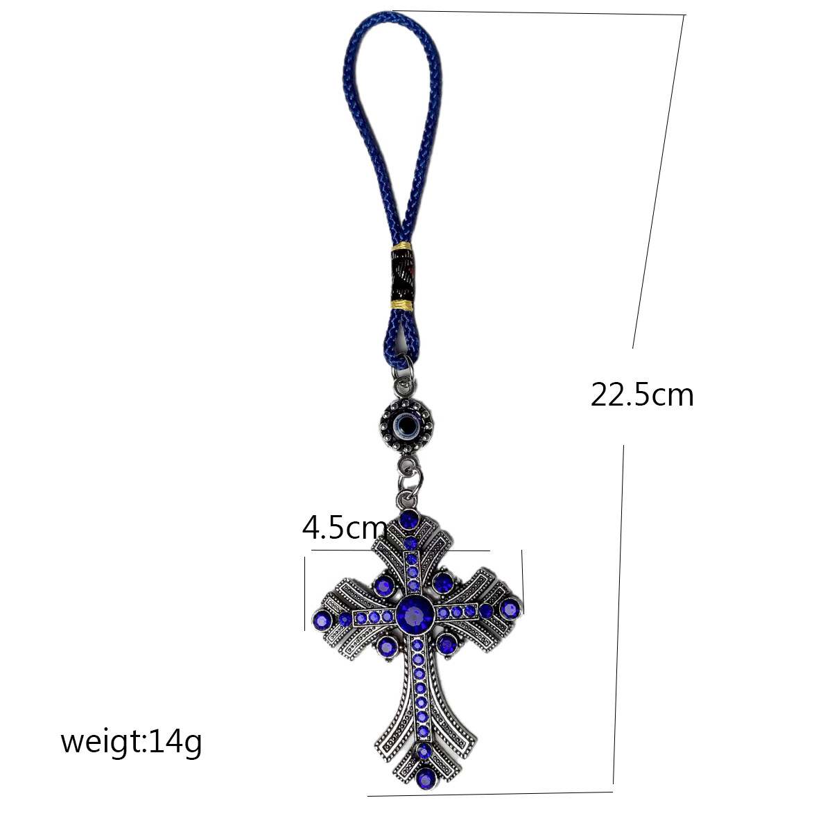 专供恶魔之眼土耳其蓝色眼睛镶钻十字架好运装饰挂件车挂包包挂件