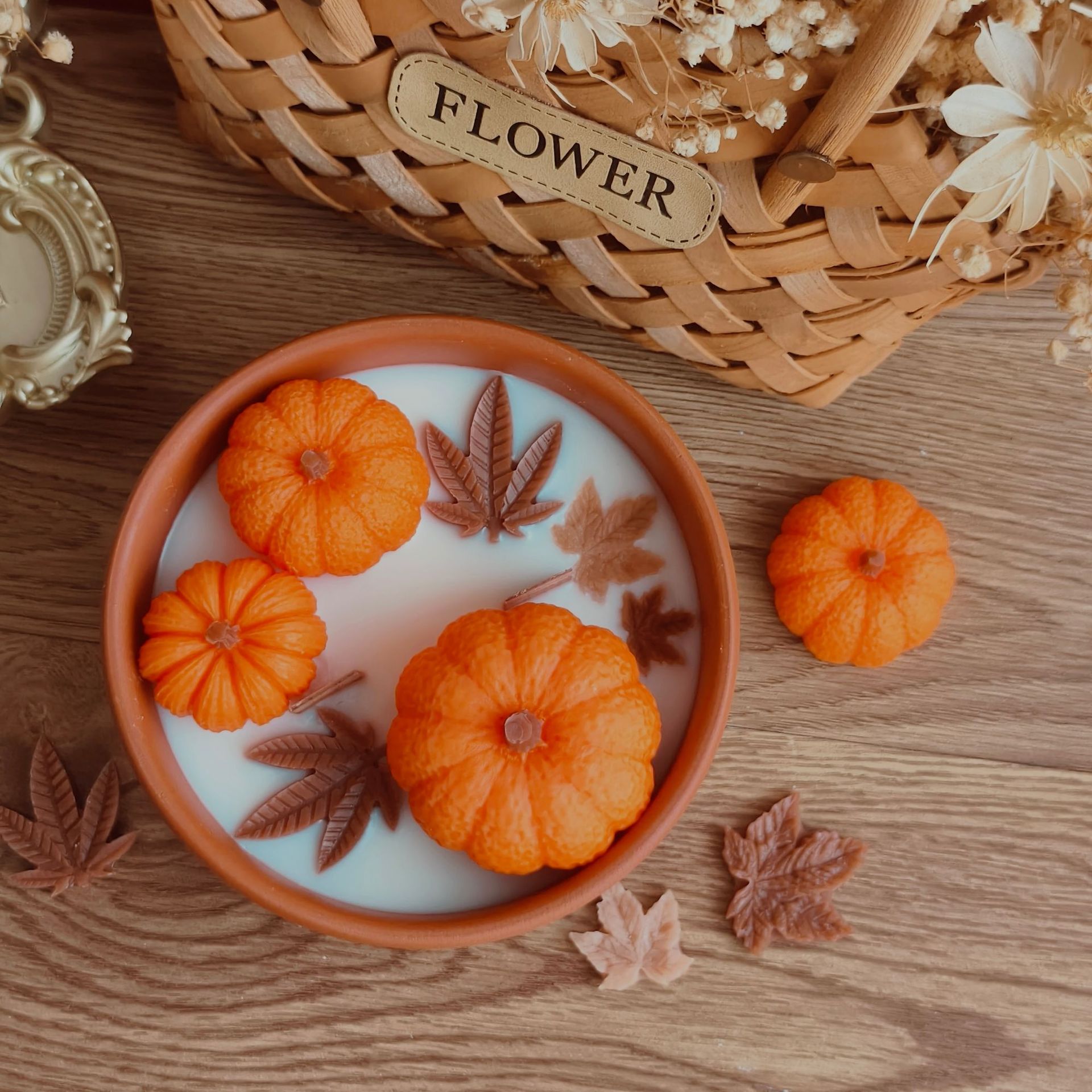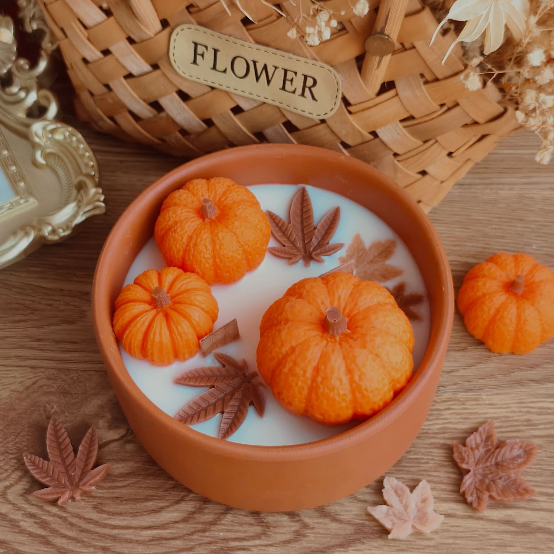 创意丰收节南瓜香薰蜡烛万圣节跨境新款生日伴手礼枫叶家居装饰