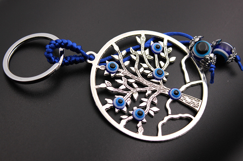 合金电镀古银大生命树那扎尔土耳其蓝色眼睛钥匙扣钥匙配饰