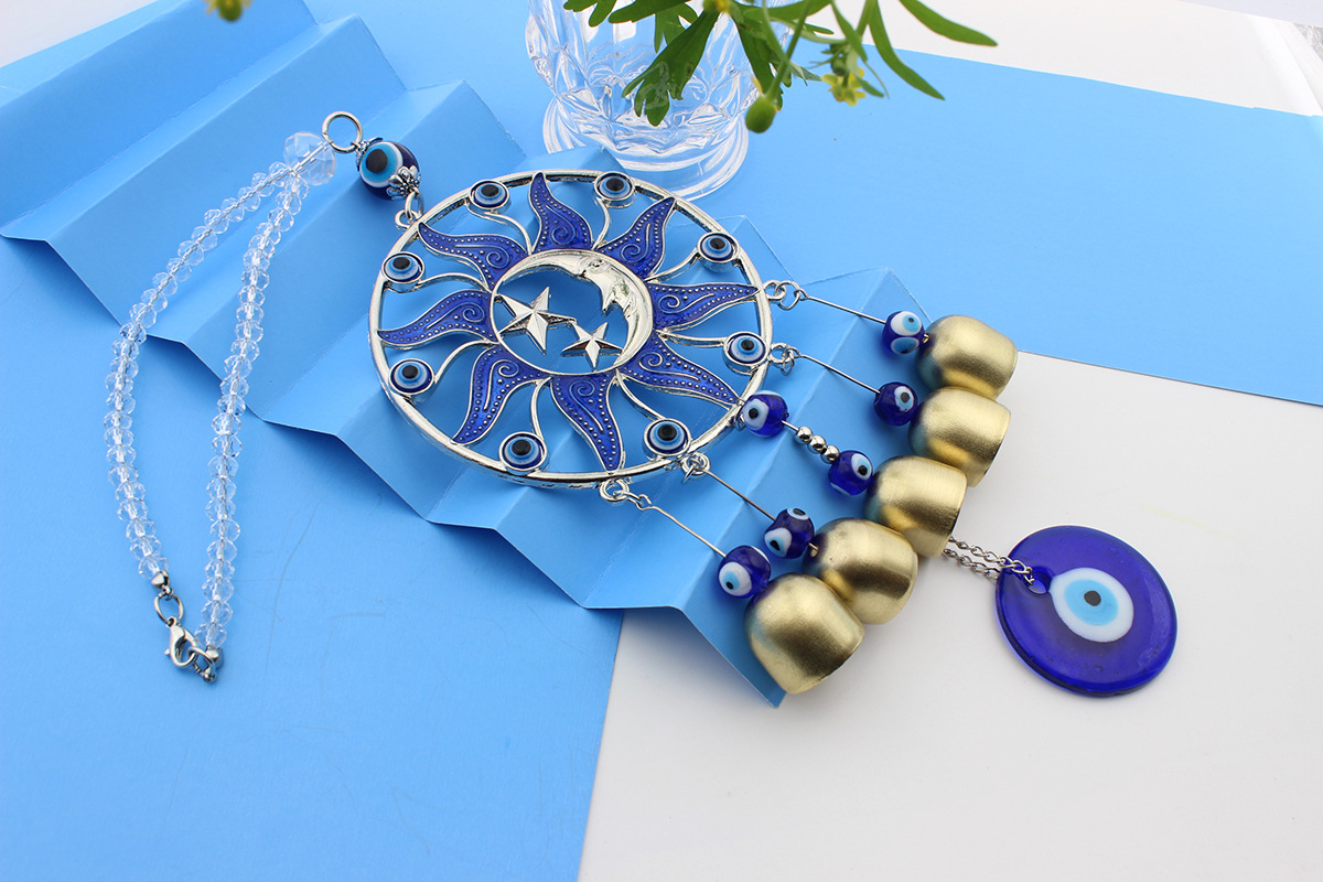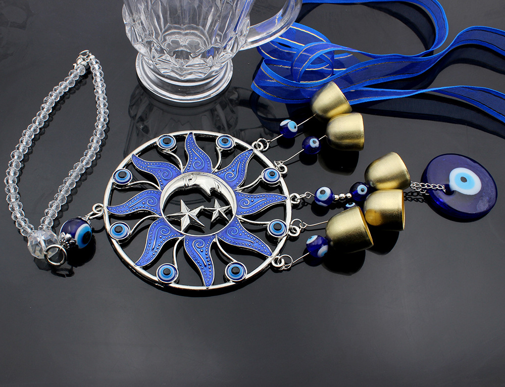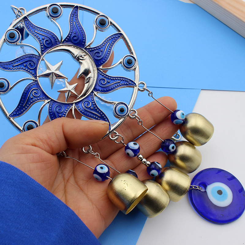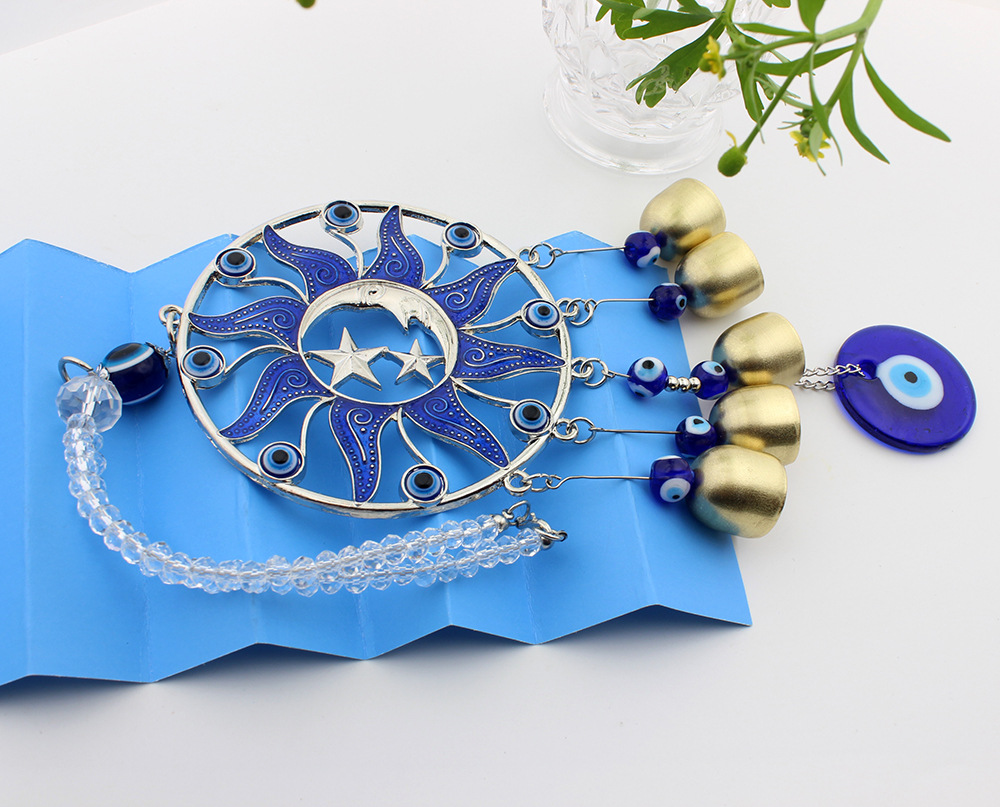 圆形滴胶蓝色太阳公公月亮土耳其风铃挂饰汽车铜铃挂件风铃挂件