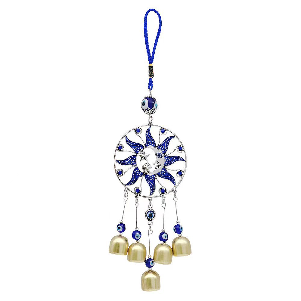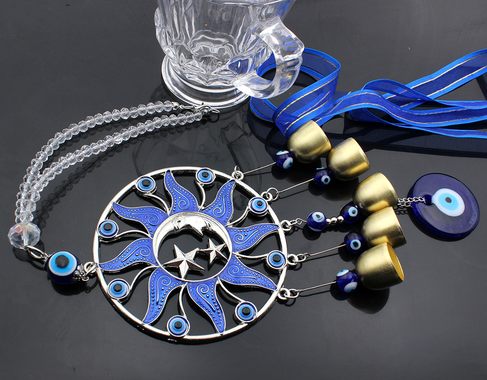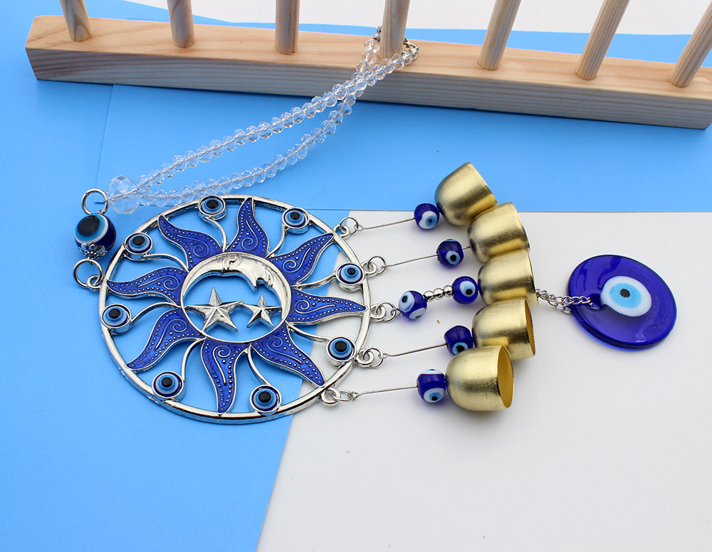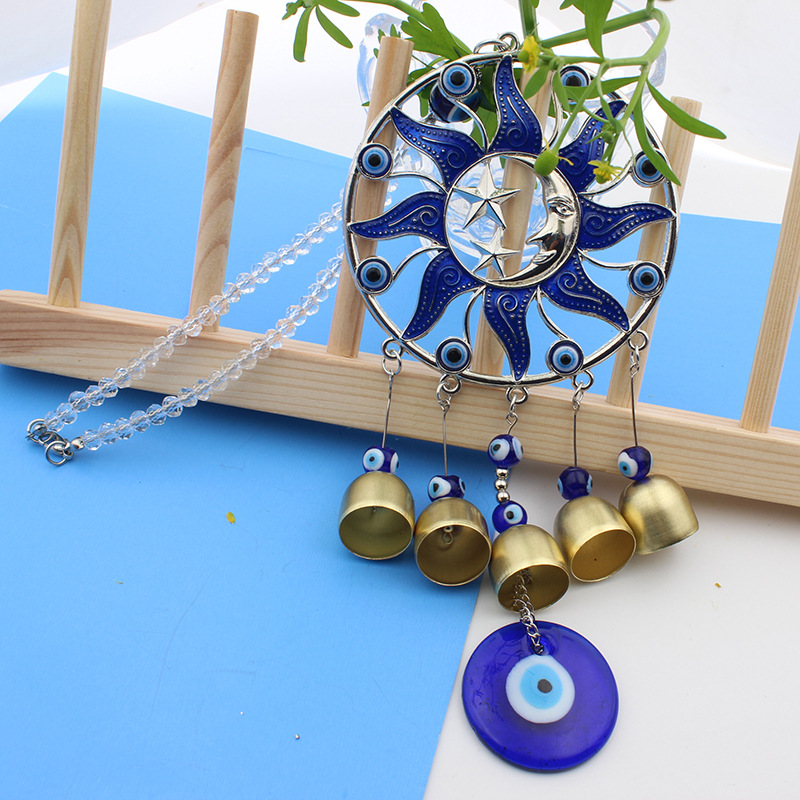 圆形滴胶蓝色太阳公公月亮土耳其风铃挂饰汽车铜铃挂件风铃挂件