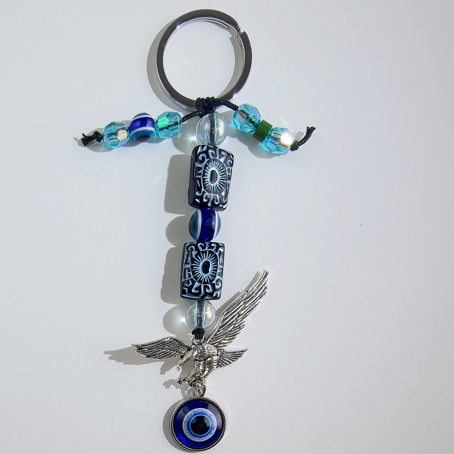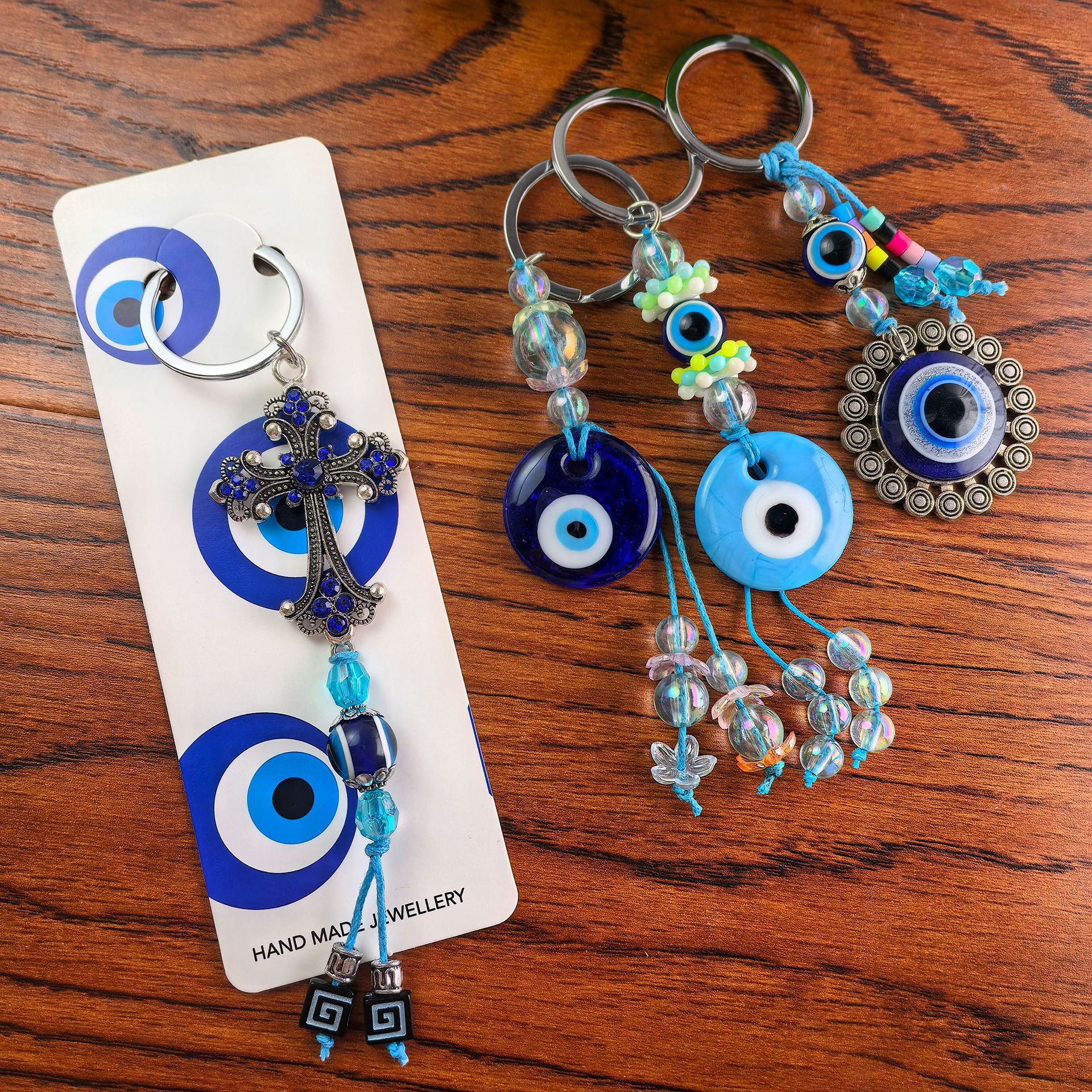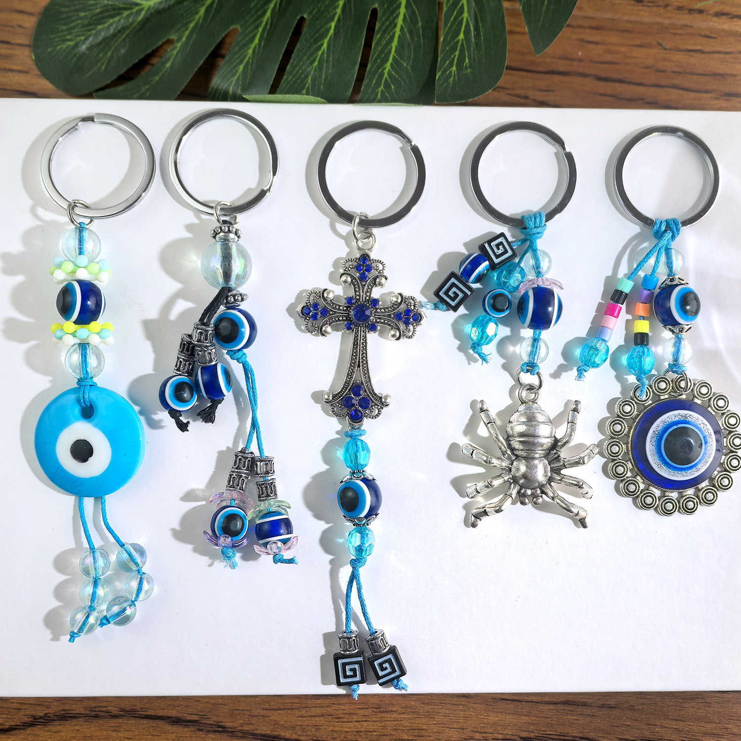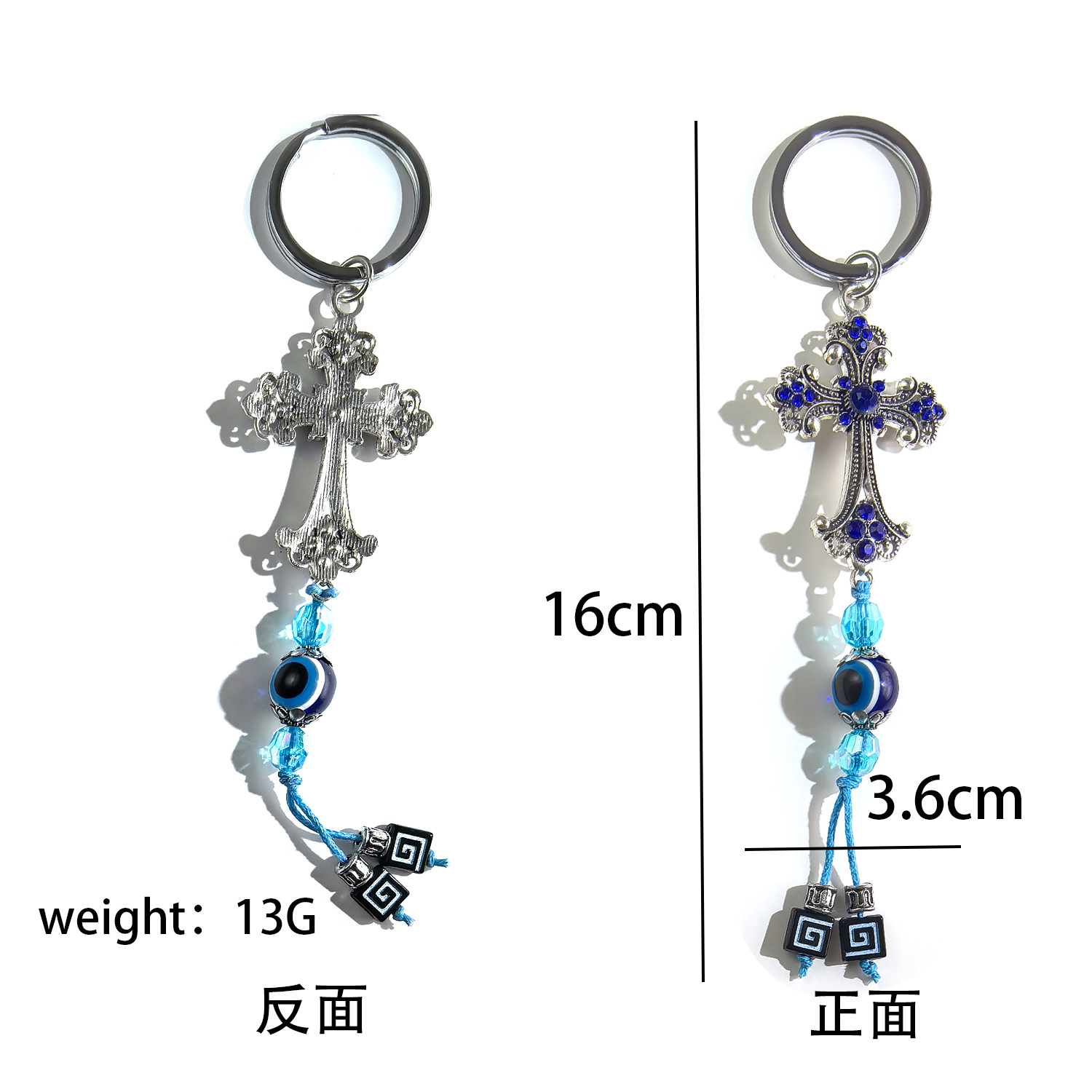原创恶魔之眼钥匙扣锌合金蜘蛛十字架蓝色眼睛挂件包包挂件批发