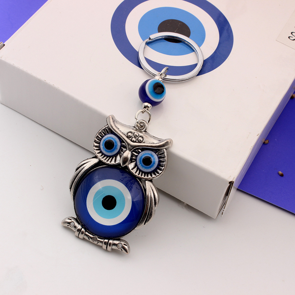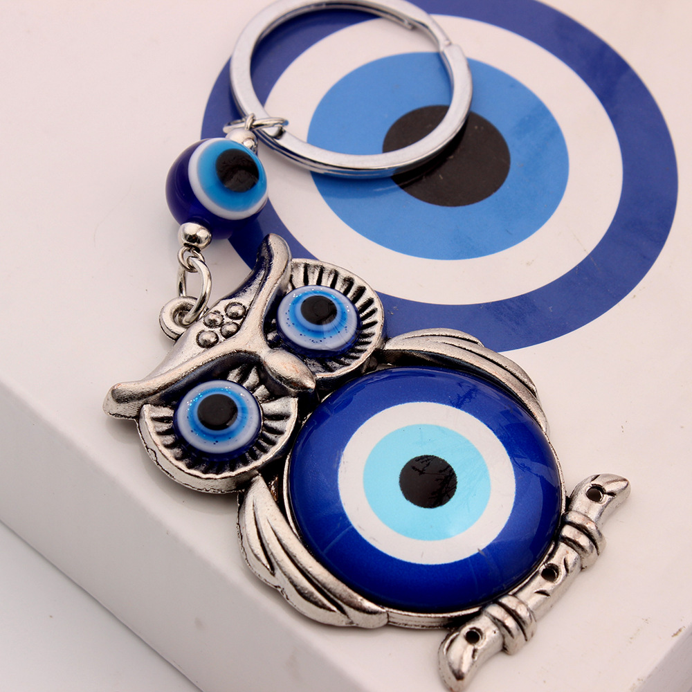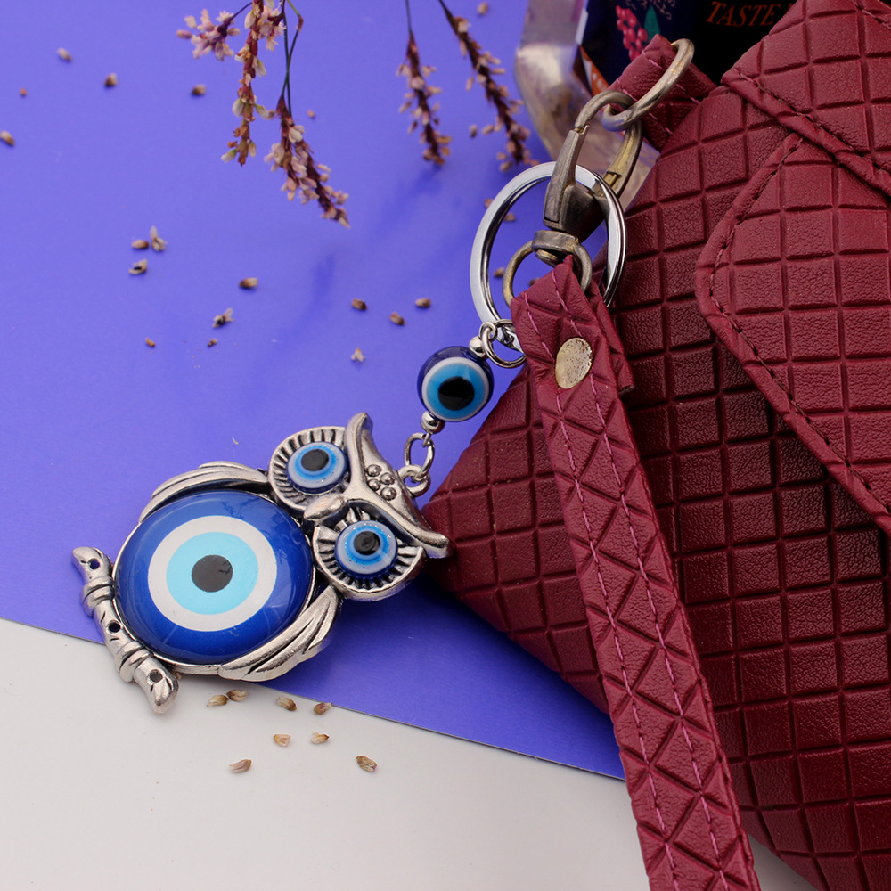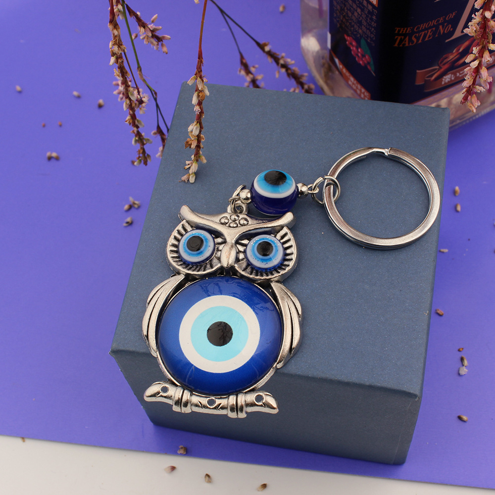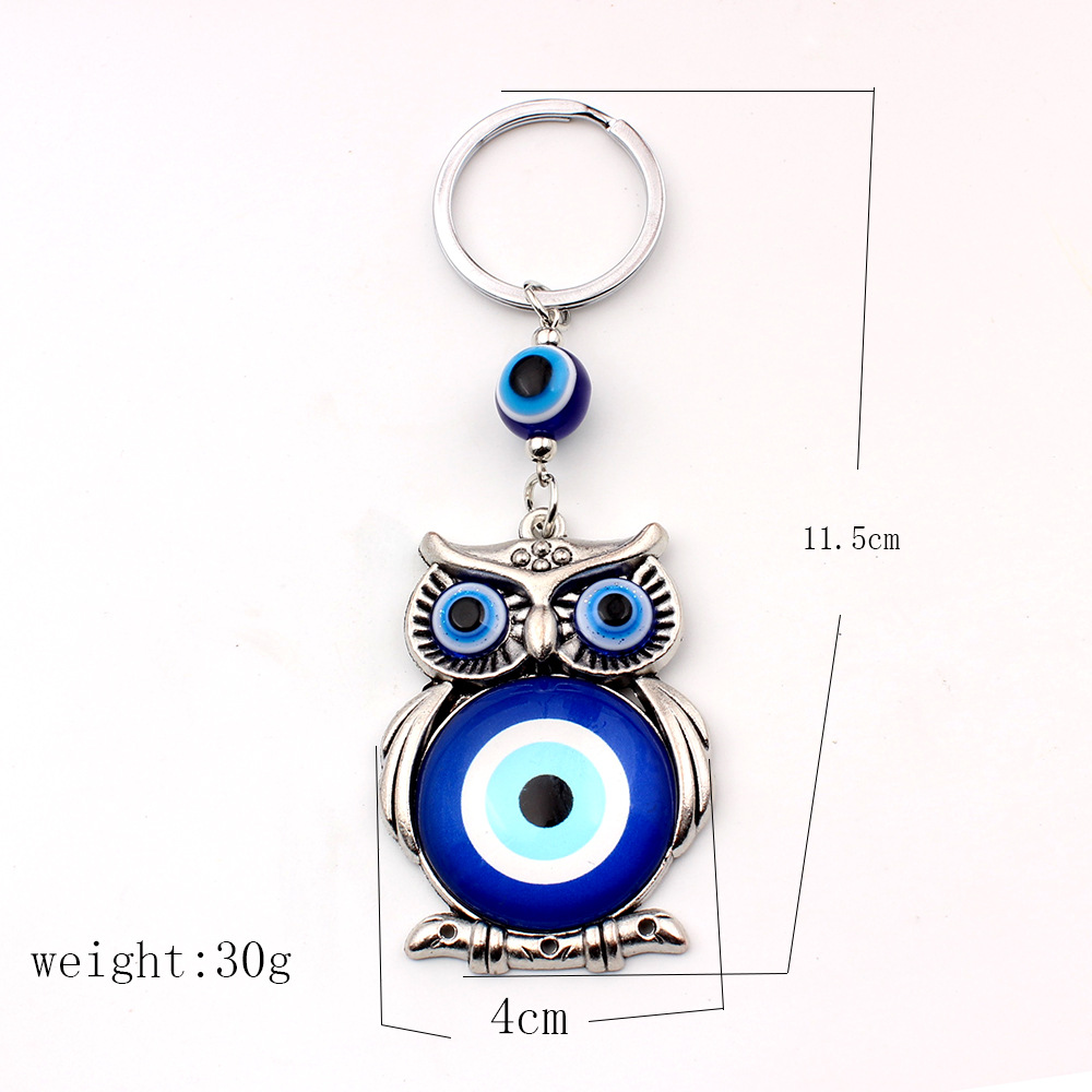 外贸跨境货源希腊土耳其蓝色眼睛钥匙扣合金猫头鹰挂件钥匙扣包挂