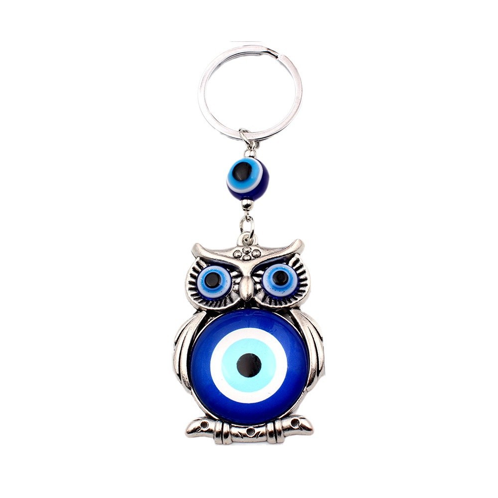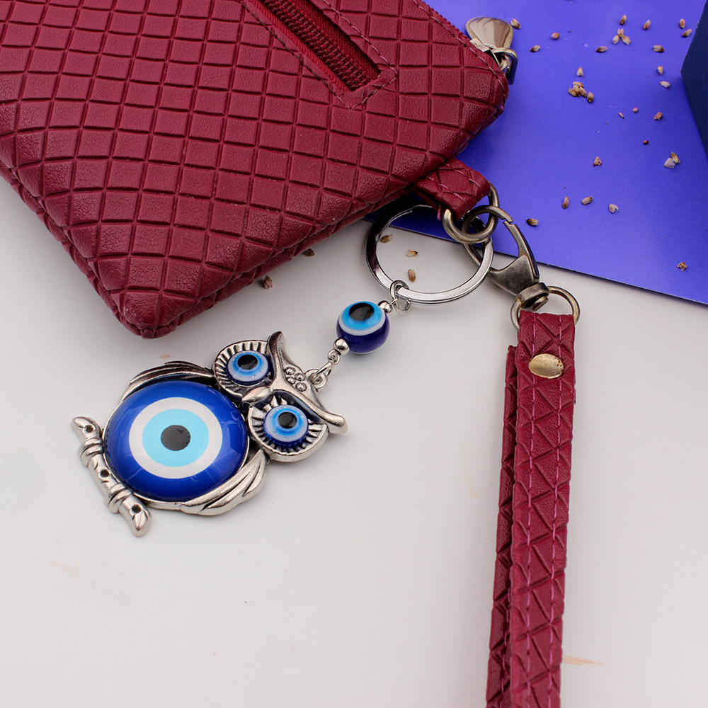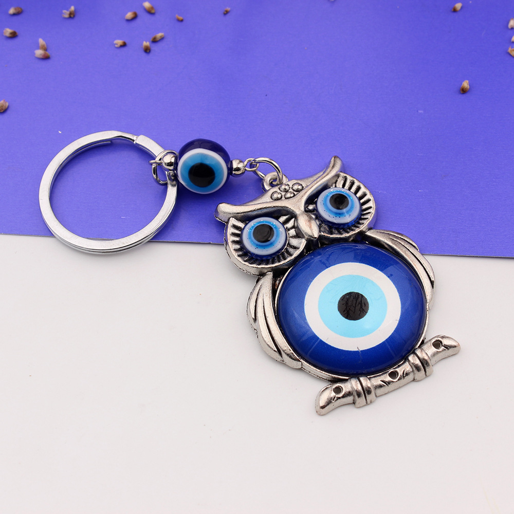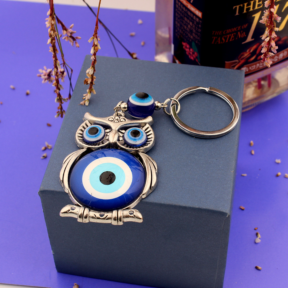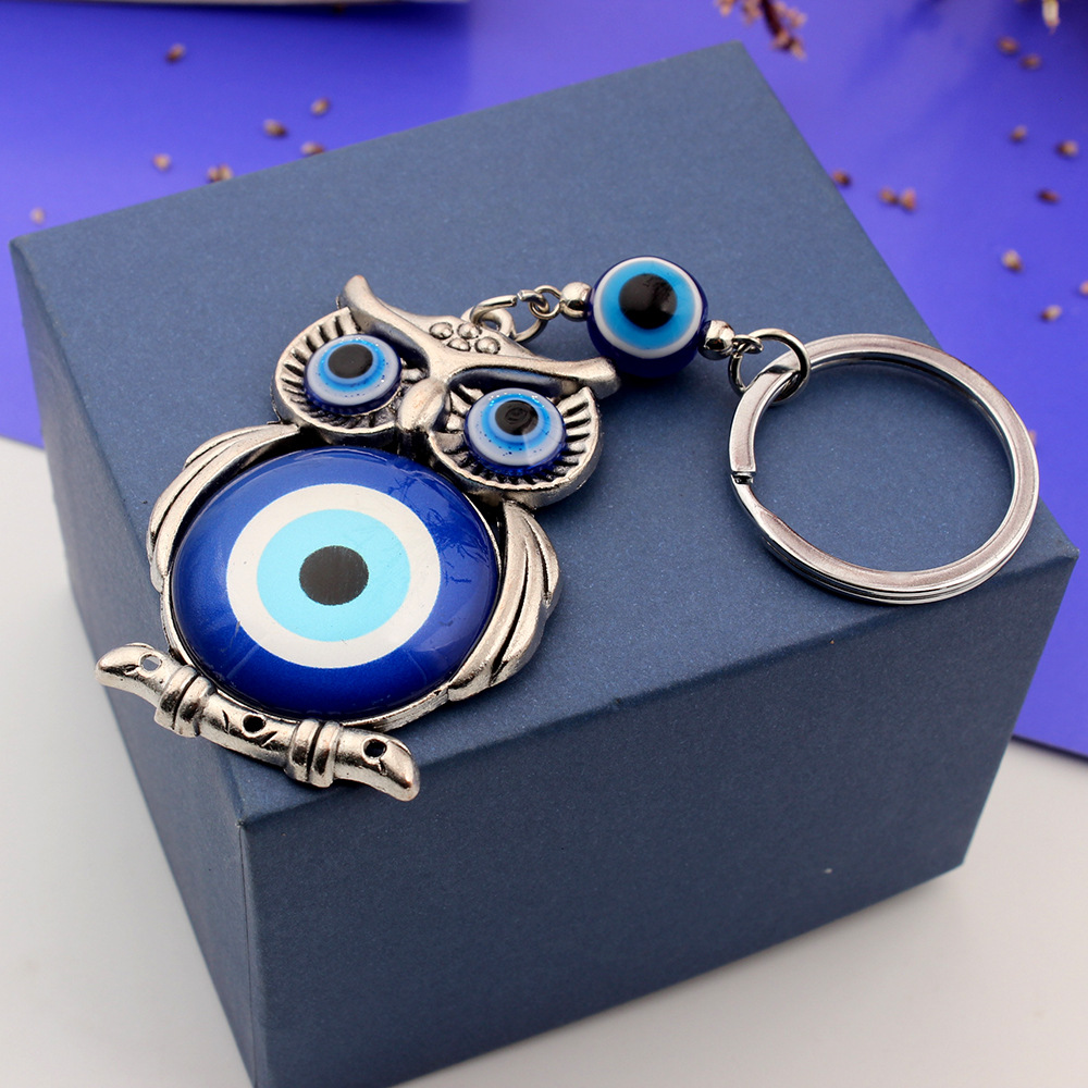 外贸跨境货源希腊土耳其蓝色眼睛钥匙扣合金猫头鹰挂件钥匙扣包挂