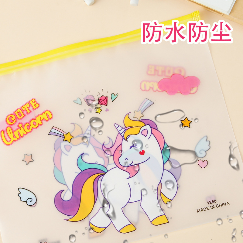 A5可爱卡通文件袋学生桌面文具收纳拉链袋透明防水试卷档 案袋批
