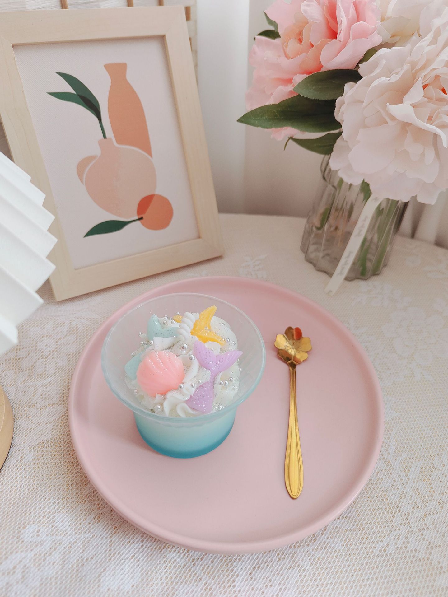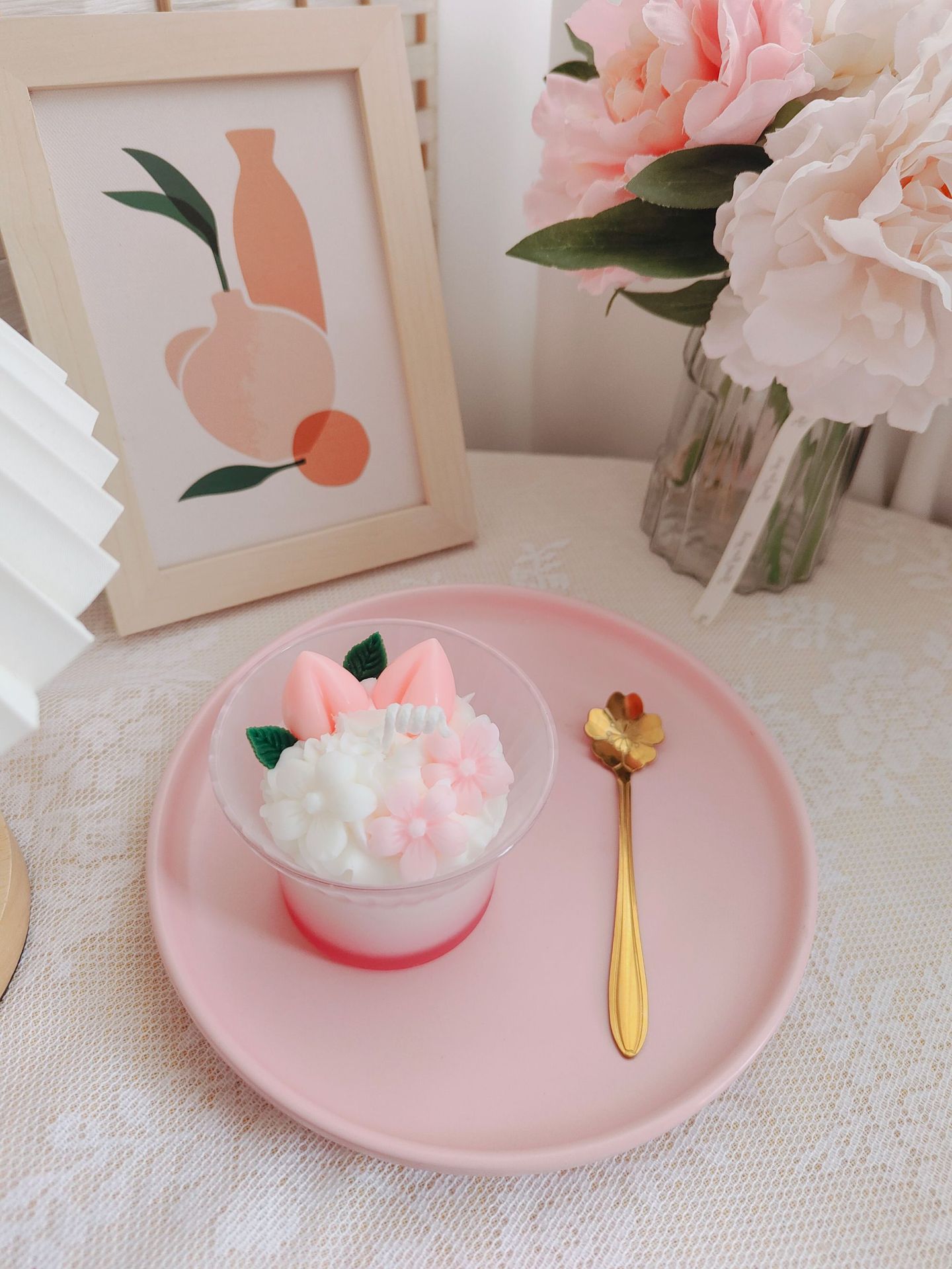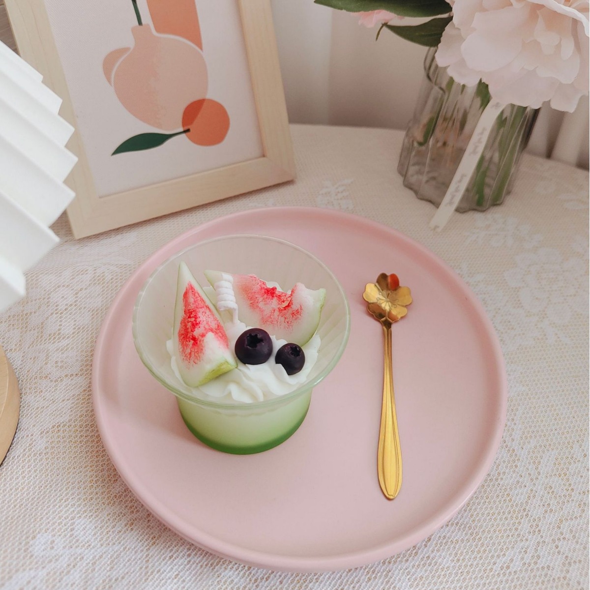创意高级渐变花朵咖啡杯冰淇凌香薰蜡烛跨境甜品香氛水果杯蜡