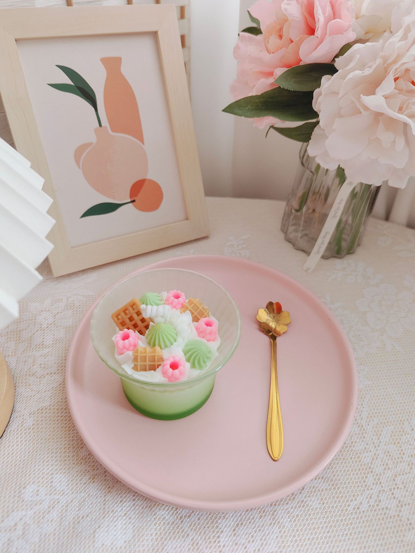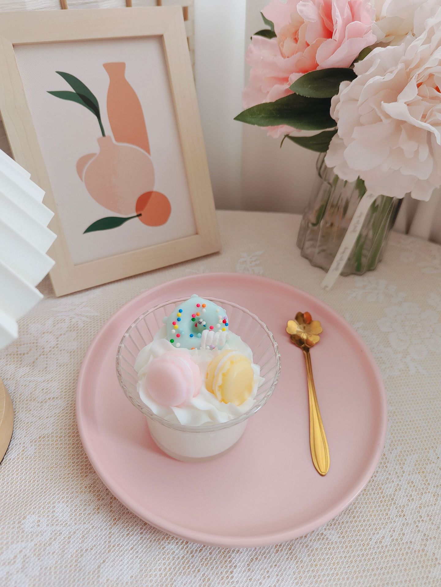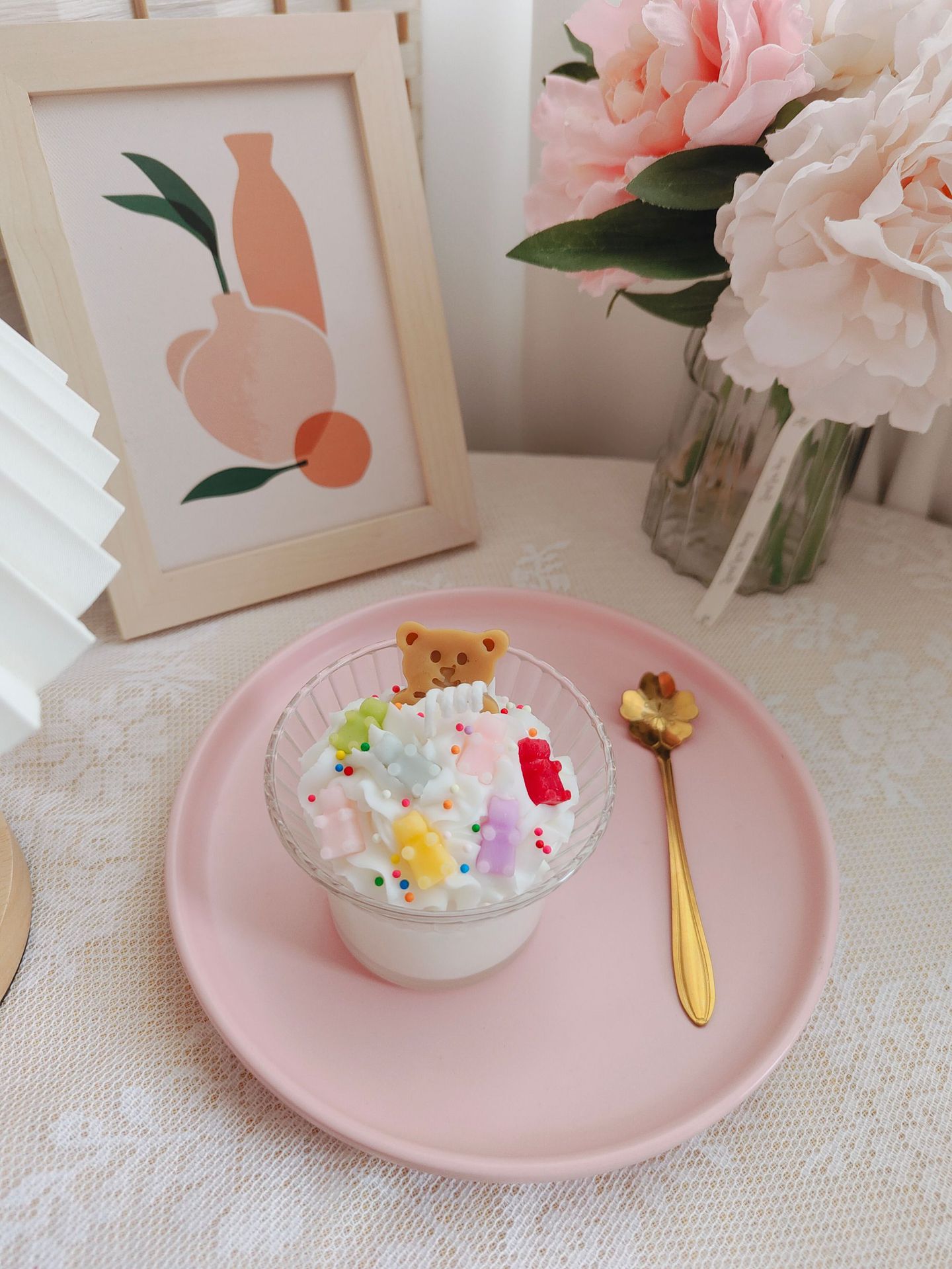 创意高级渐变花朵咖啡杯冰淇凌香薰蜡烛跨境甜品香氛水果杯蜡