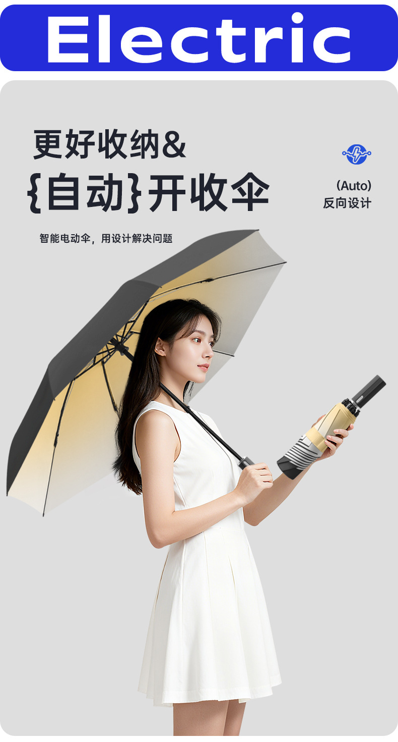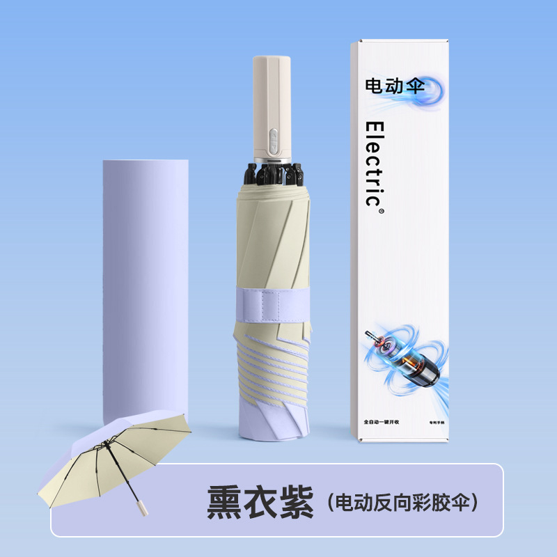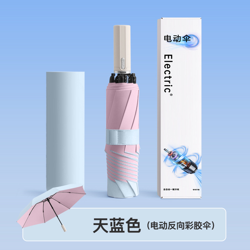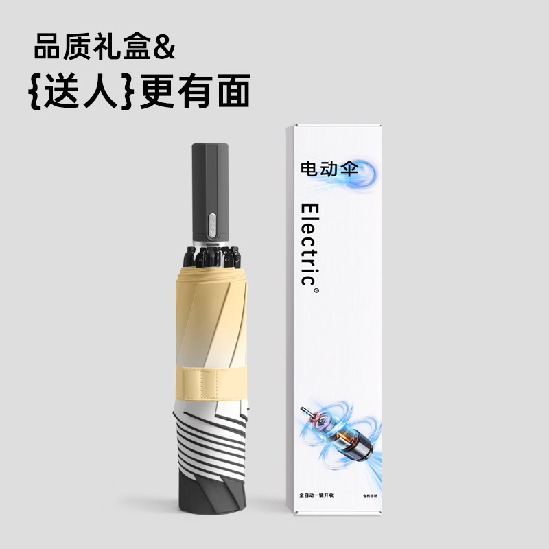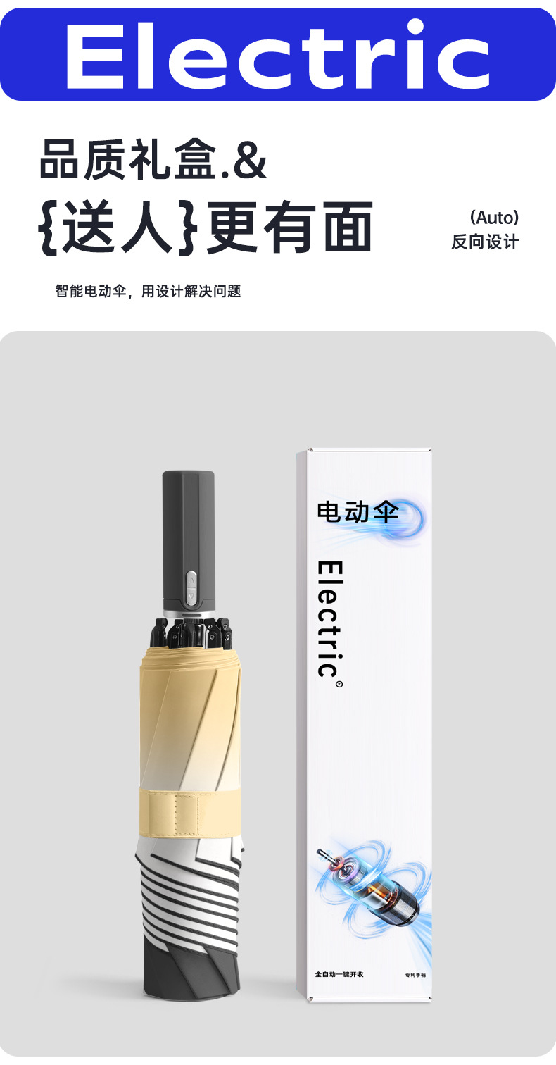 智能科技电动伞全自动开收伞反向晴雨两用黑胶折叠太阳伞礼盒定制