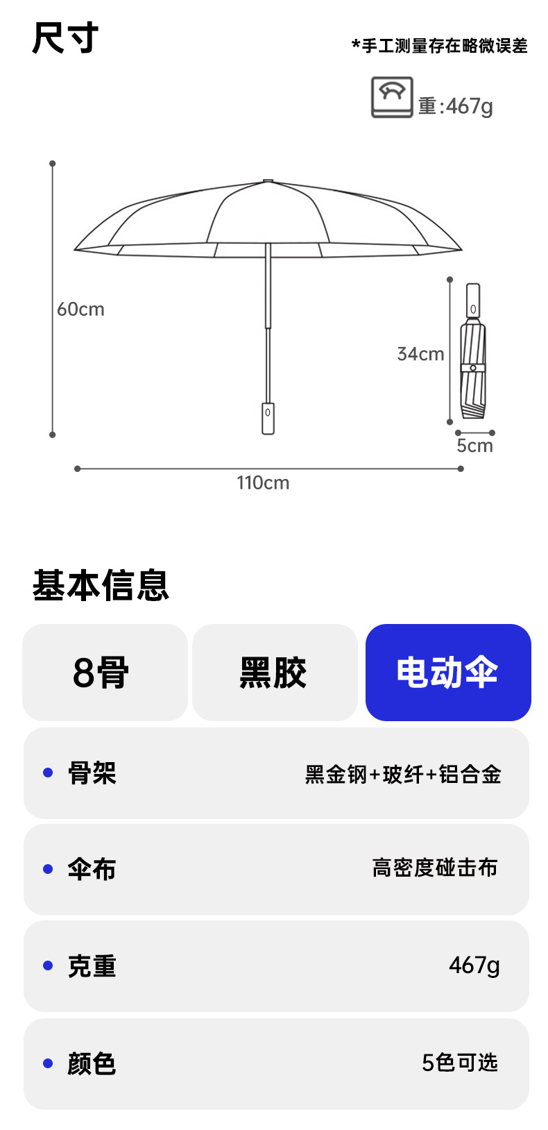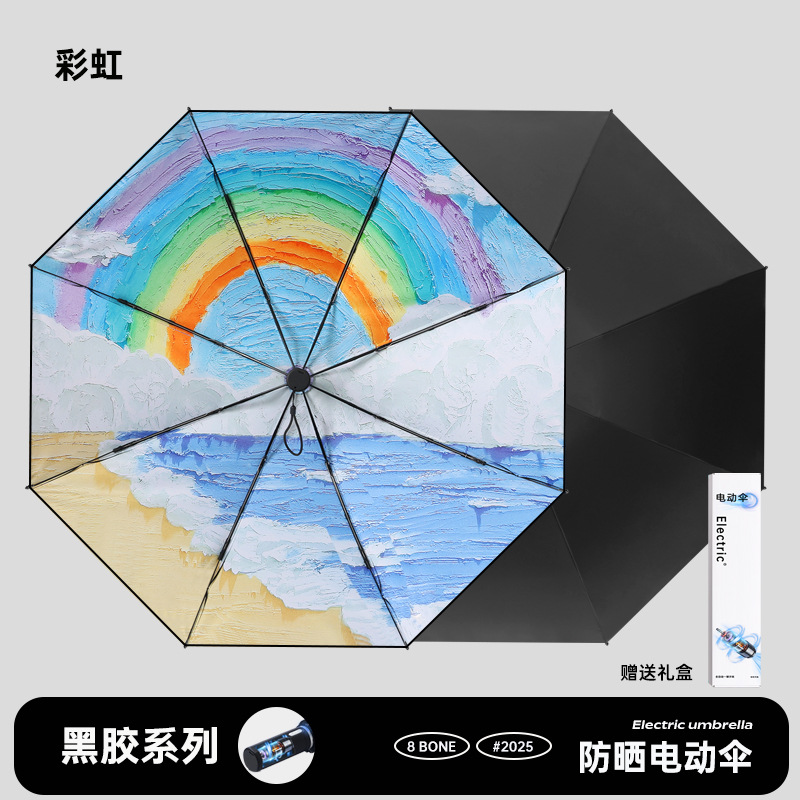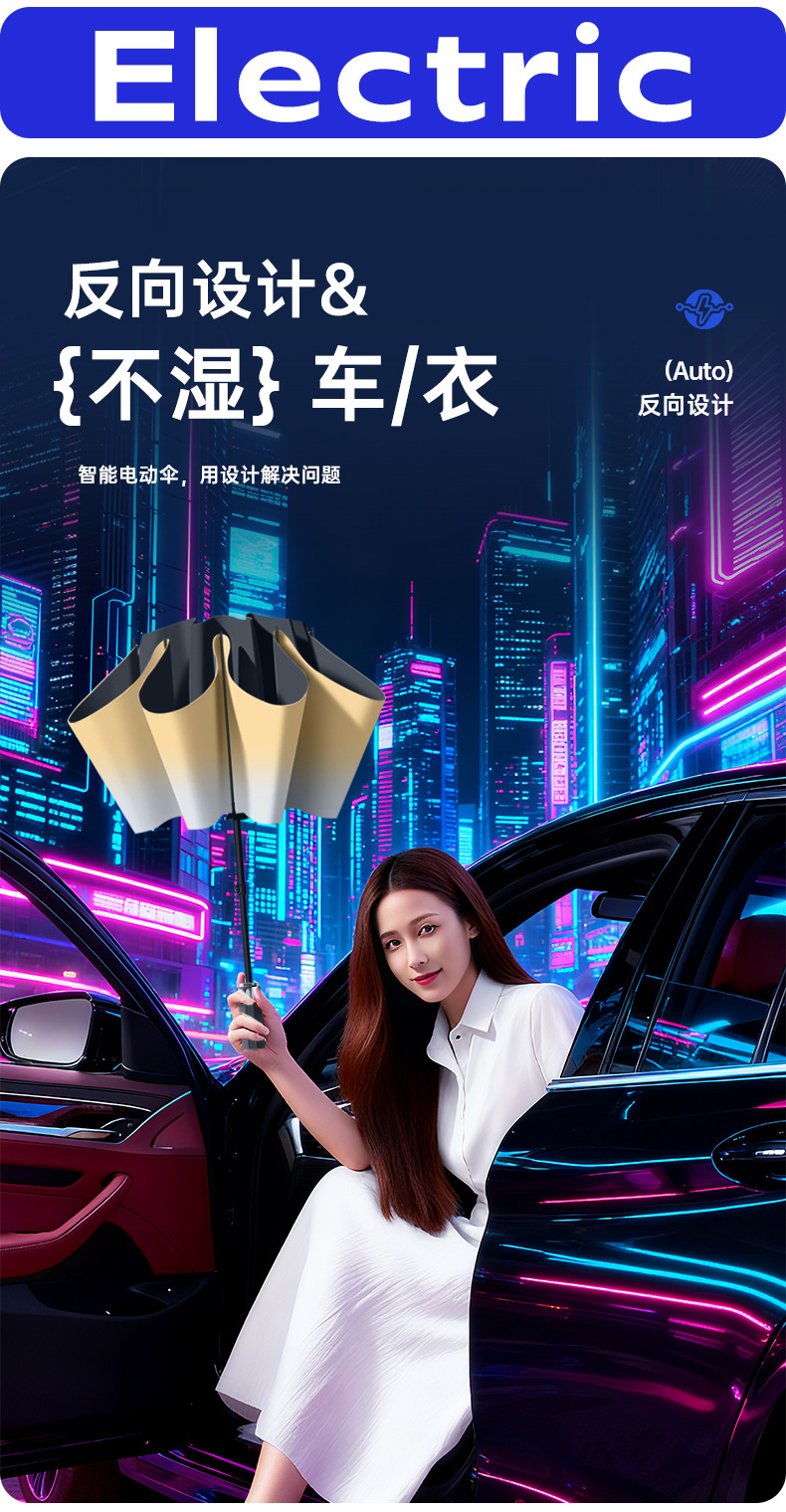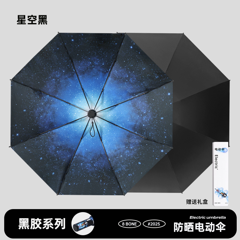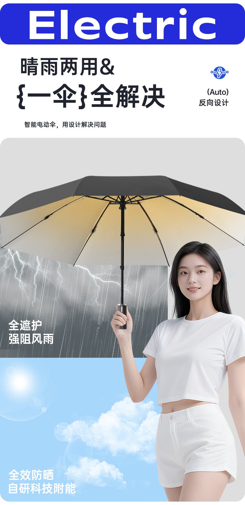 智能科技电动伞全自动开收伞反向晴雨两用黑胶折叠太阳伞礼盒定制