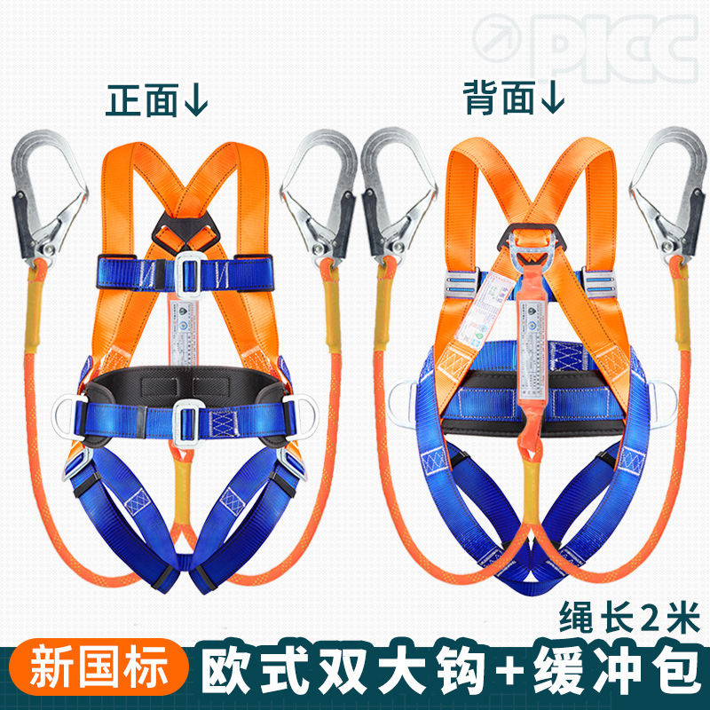 国标安全带电工防坠落全身式五点式双大钩带缓冲包安全带双大钩LA