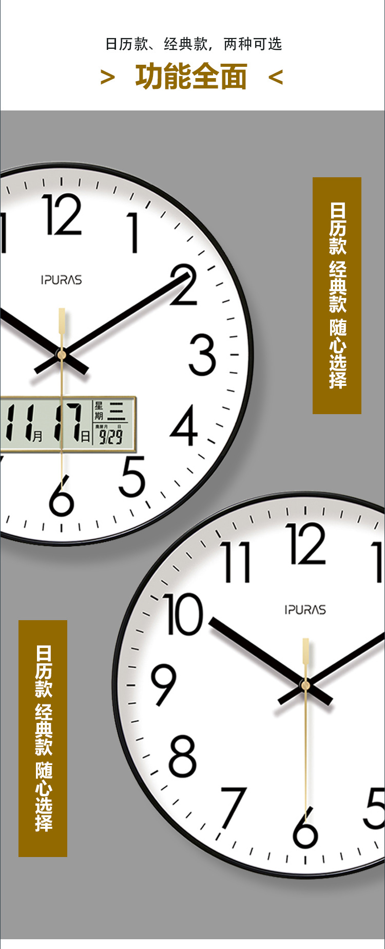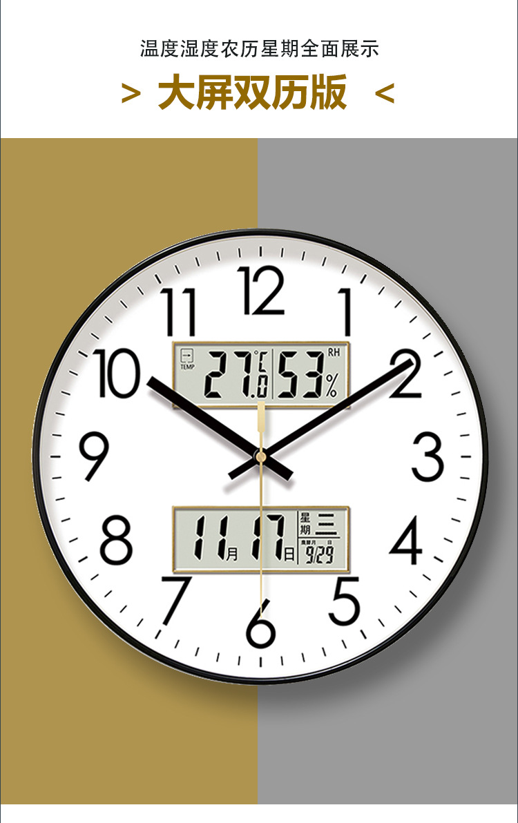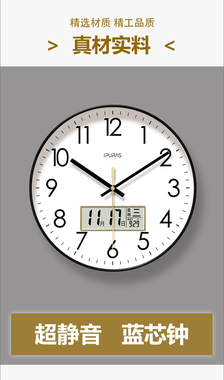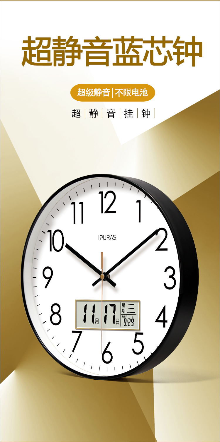 超静音6026网红钟表挂钟客厅经典钟表时钟挂表挂墙静音扫秒石英钟
