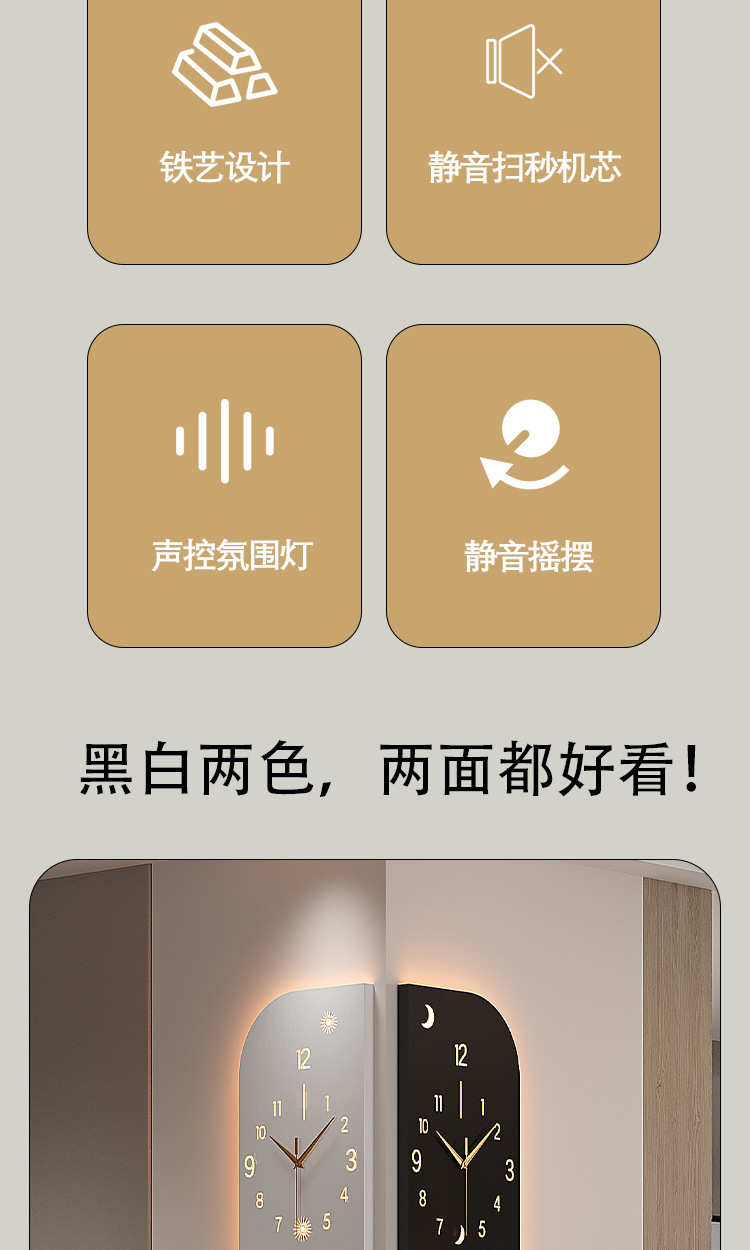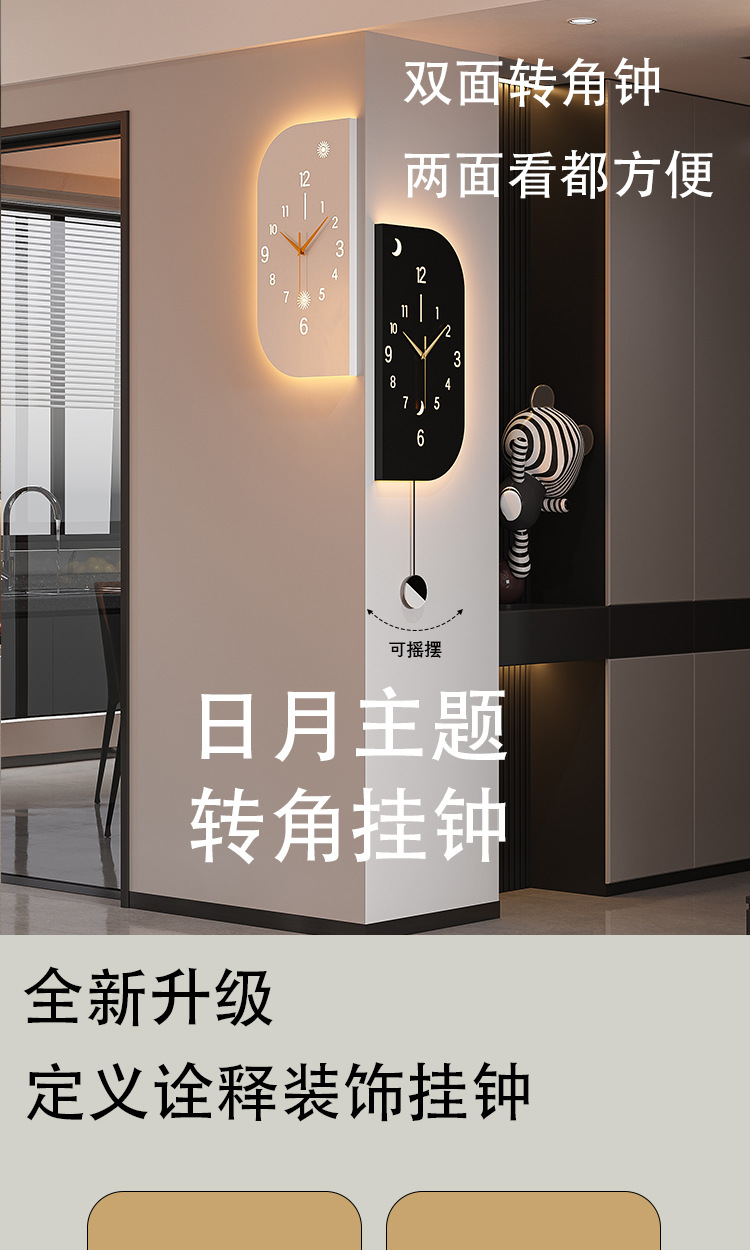 现代钟表拐角挂钟客厅2025新款网红转角双面时钟挂墙高级感壁挂表