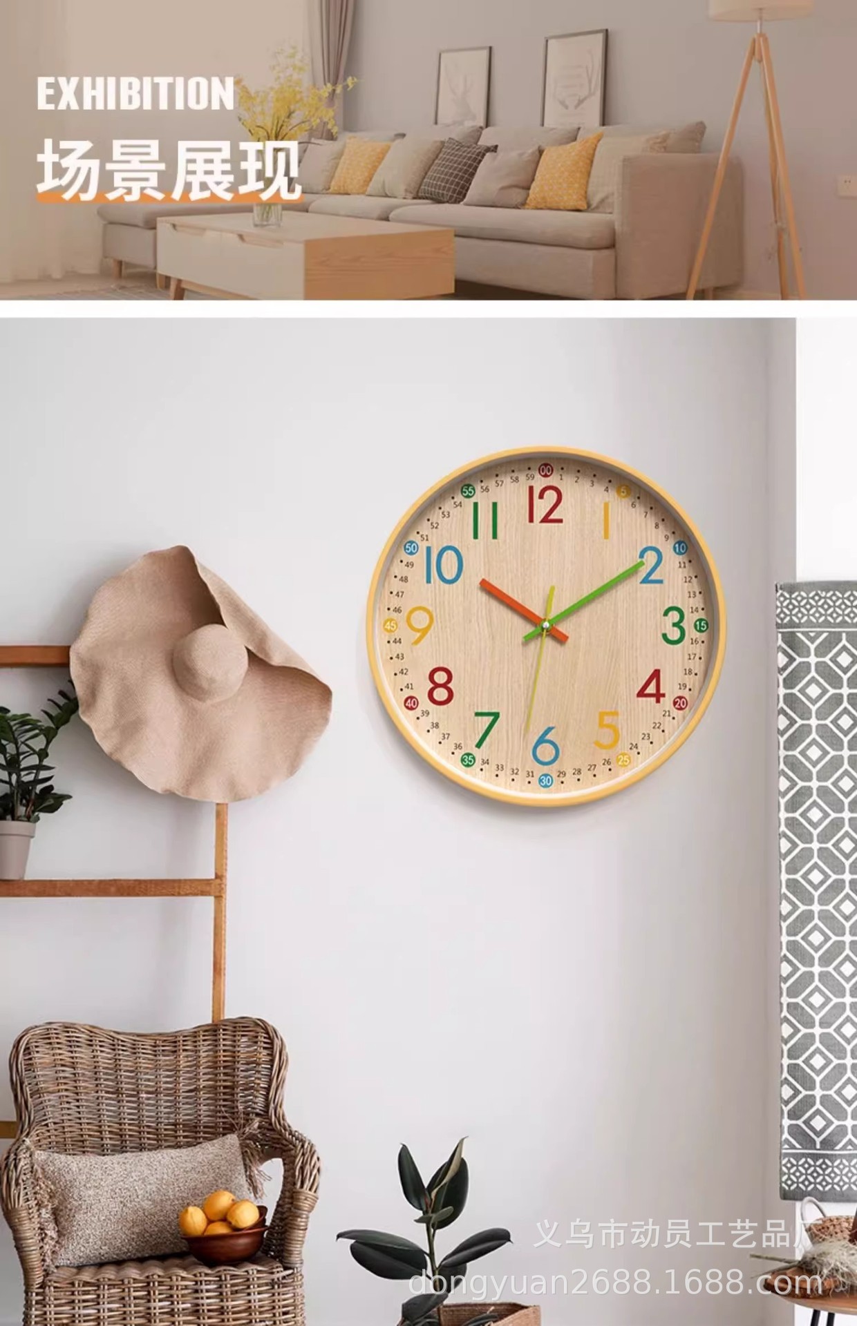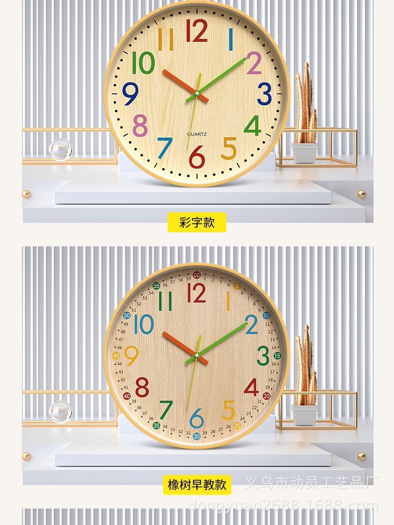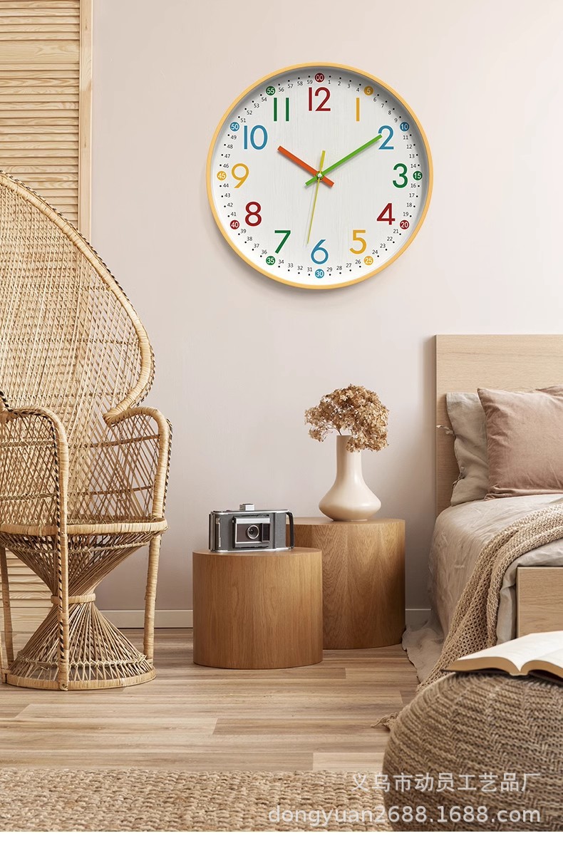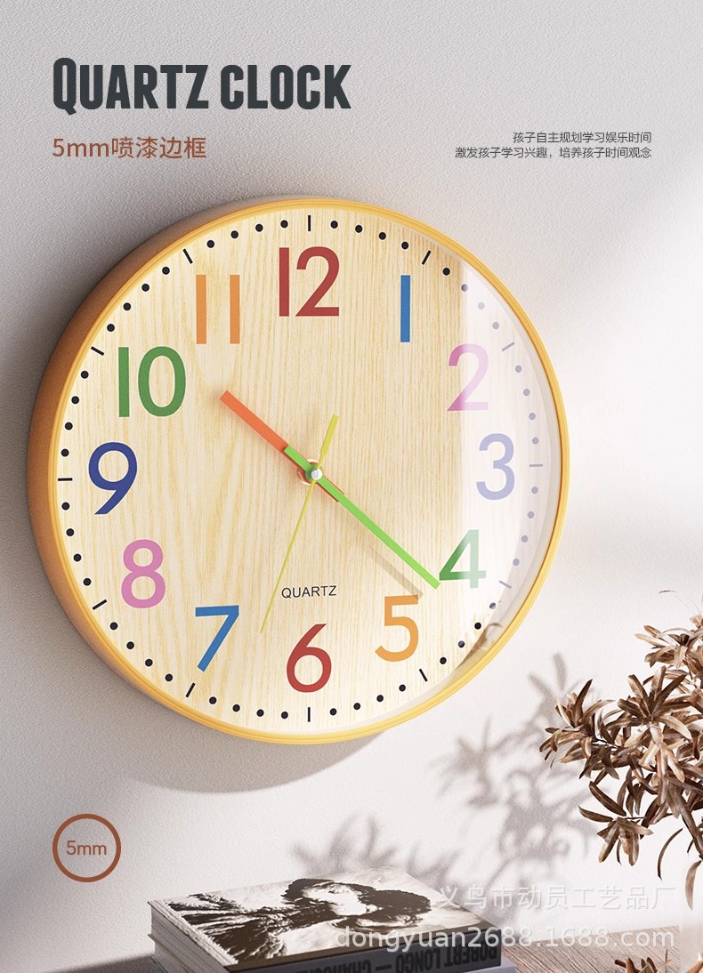 挂钟儿童钟表挂客厅家用挂墙上网红时钟时尚房间装饰表免打孔厂家