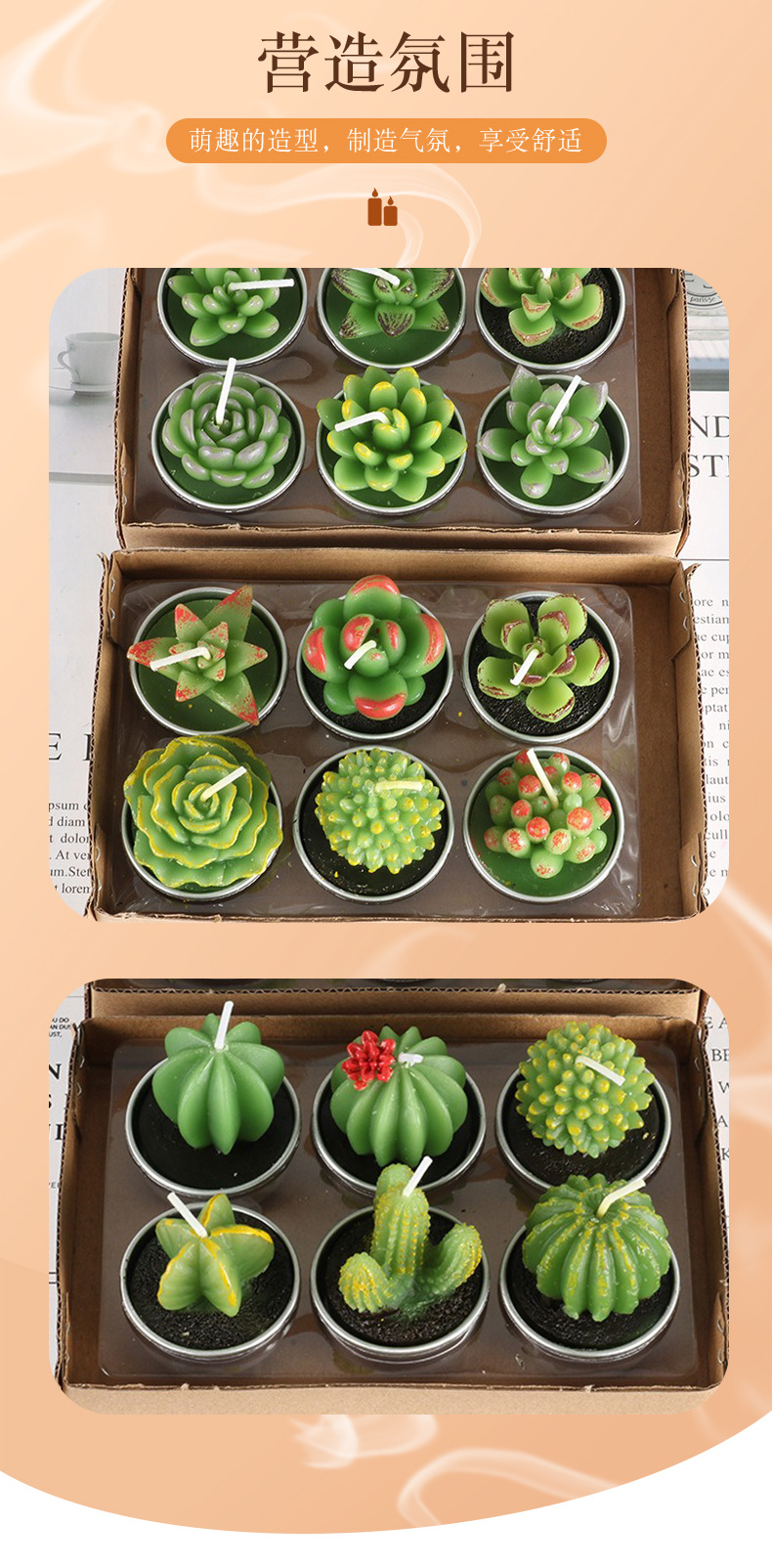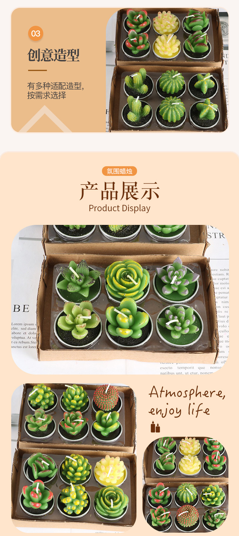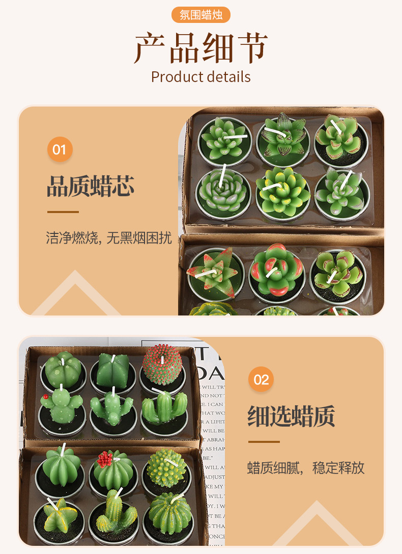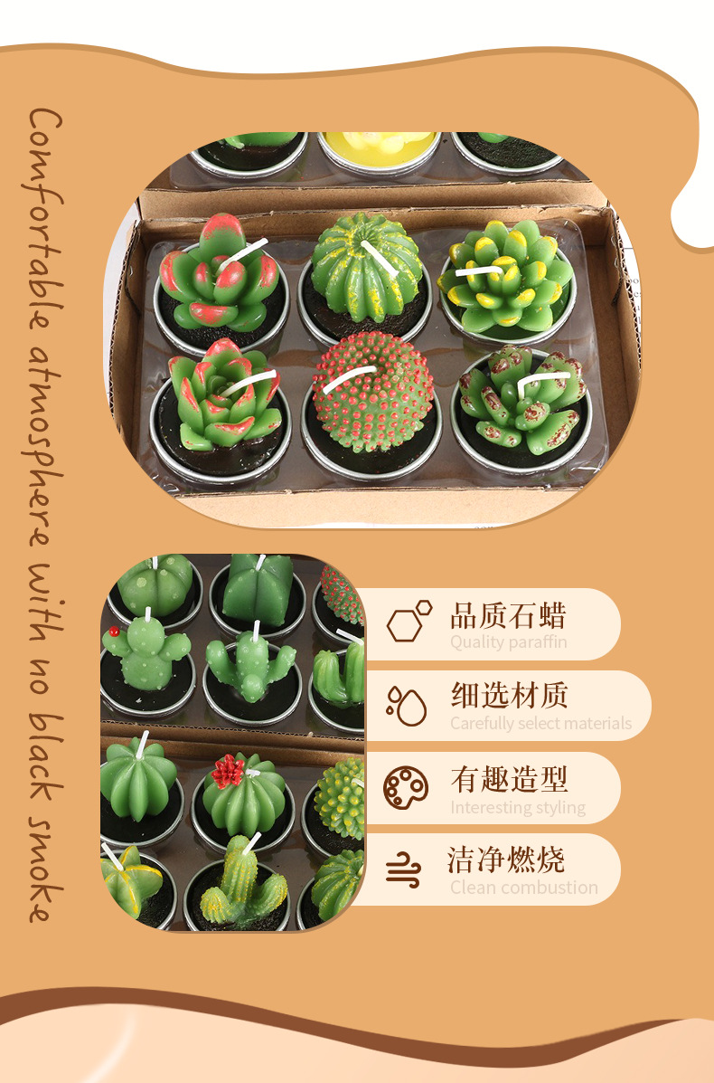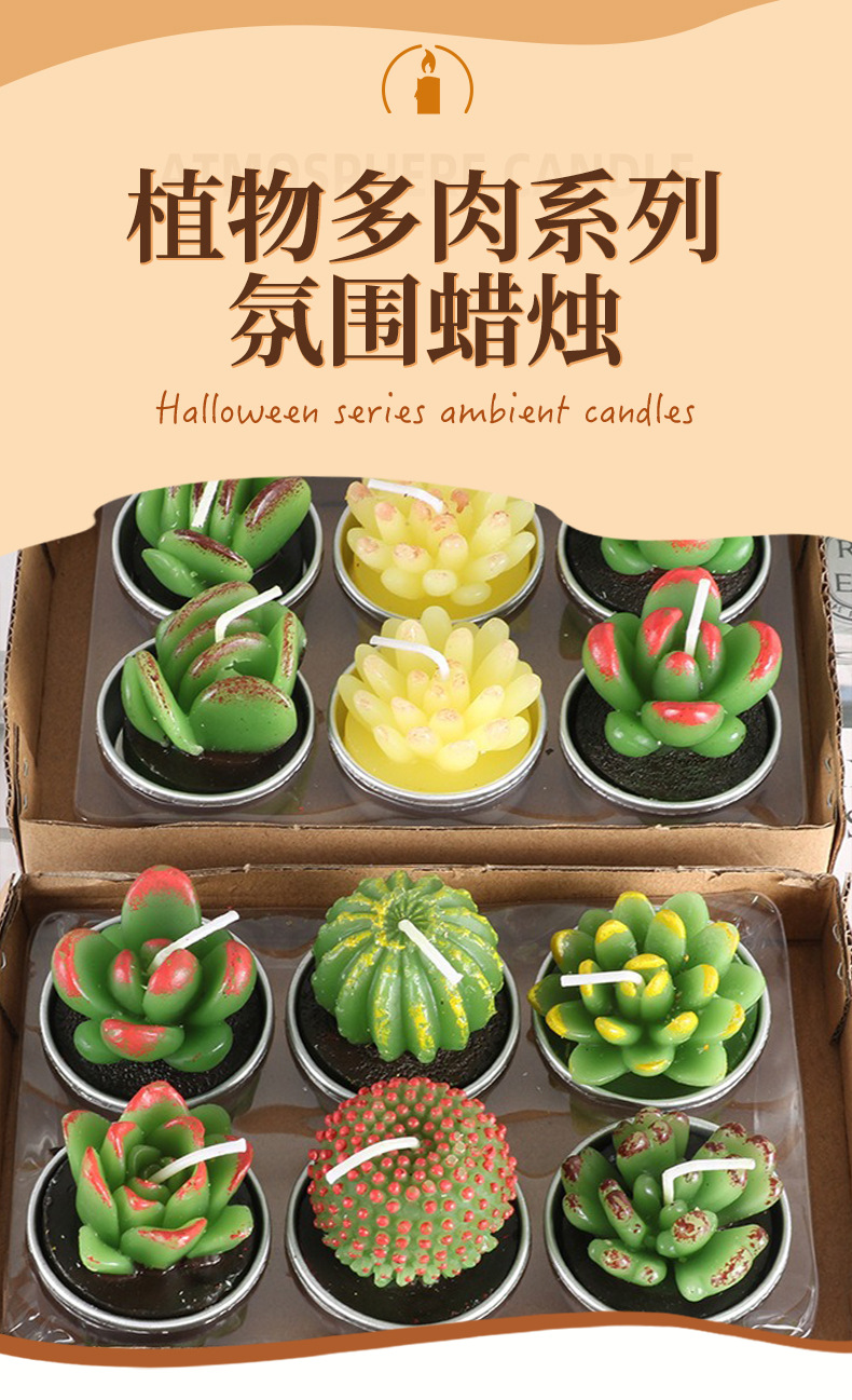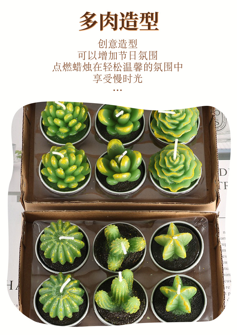 圣坤跨境多肉植物蜡烛 仙人掌工艺玫瑰花型蜡烛 圣诞系列多肉蜡烛