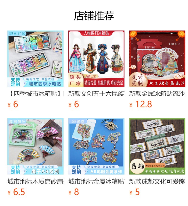 票根冰箱贴城市金属滑动磁吸贴旅游景区纪念品地标文创特色冰箱贴