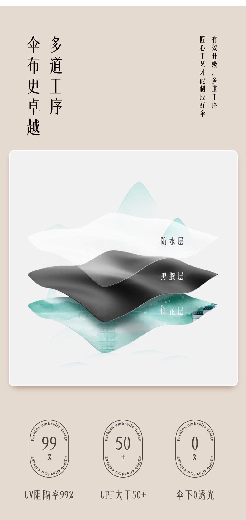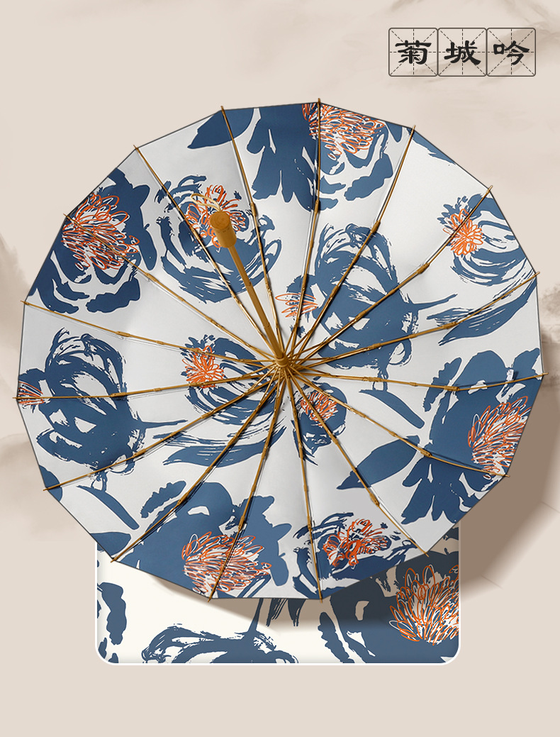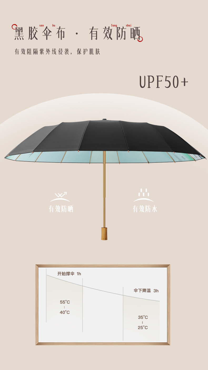 2023古风新款黑胶16骨三折伞遮阳防晒伞小清新防晒防紫外线女