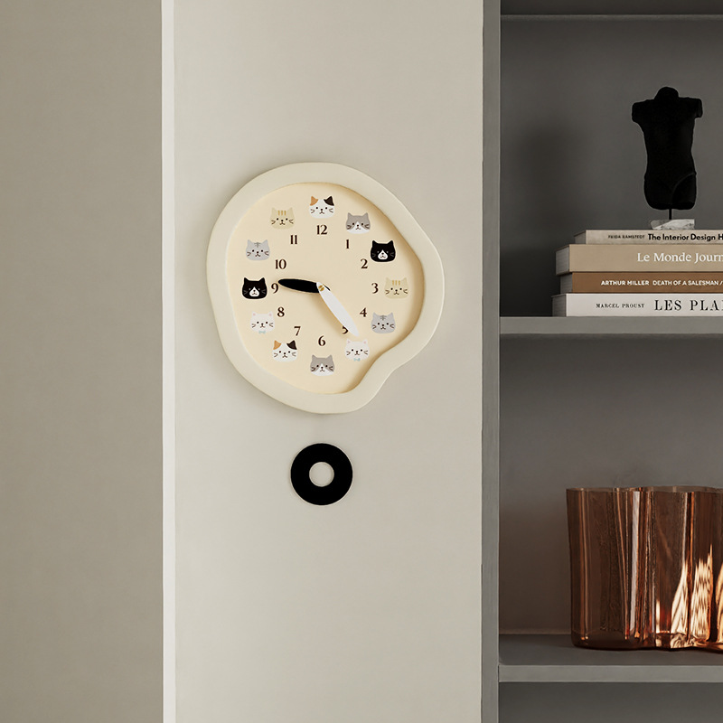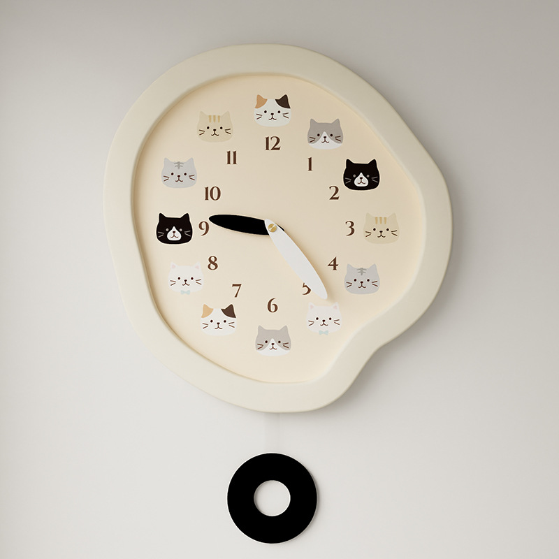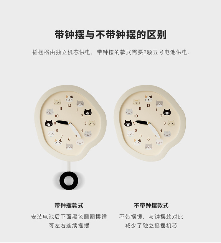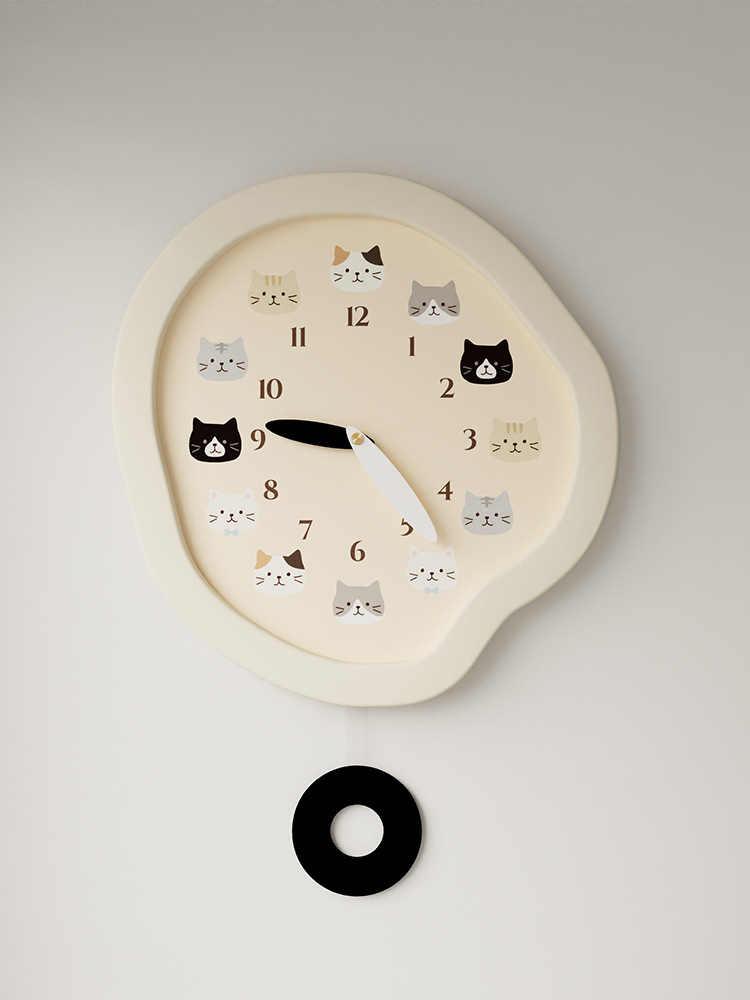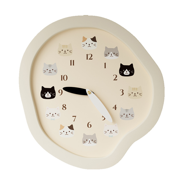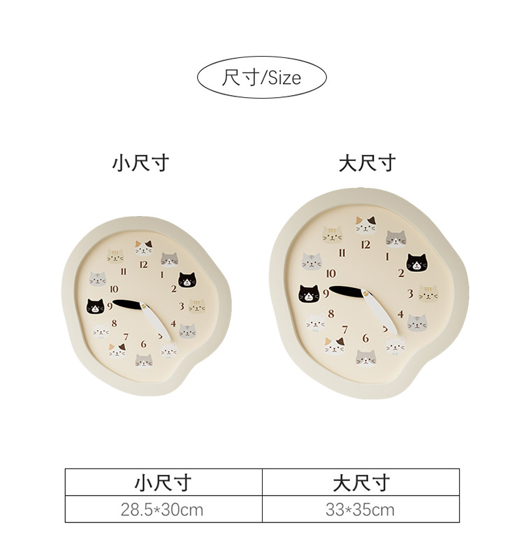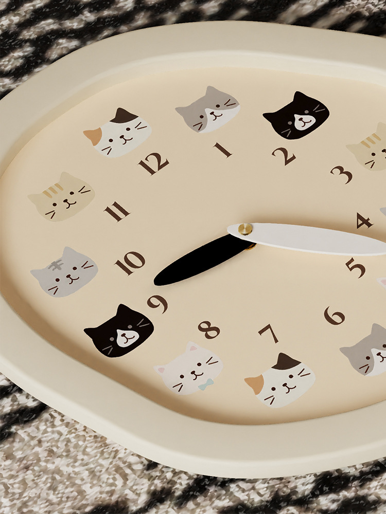 猫咪奶油风儿童房静音钟表挂钟客厅简约现代大气2024新款网红时钟