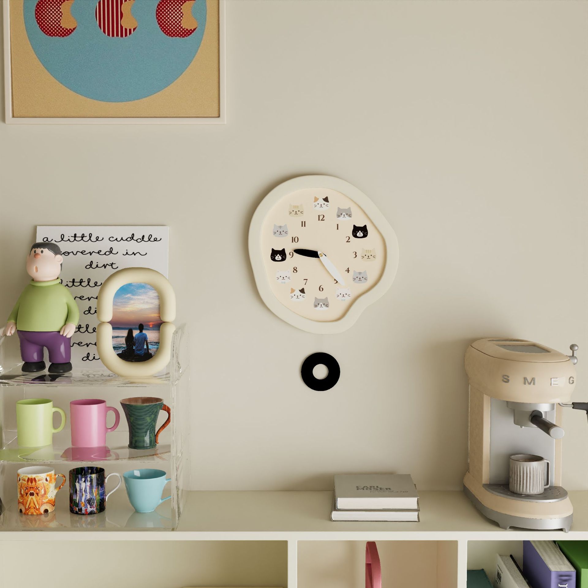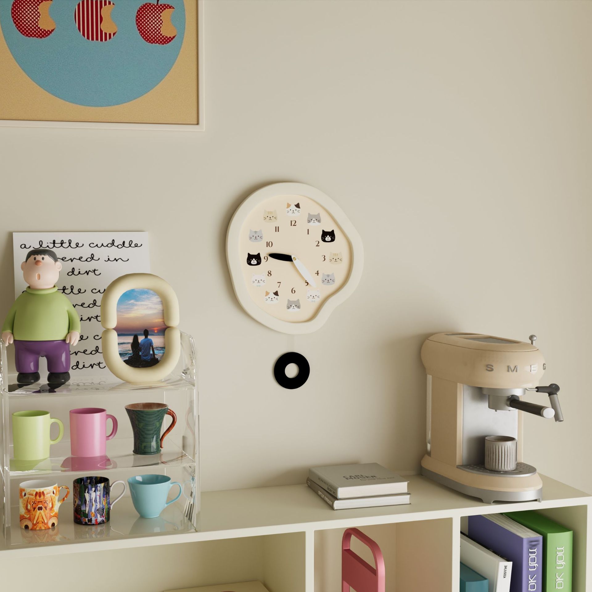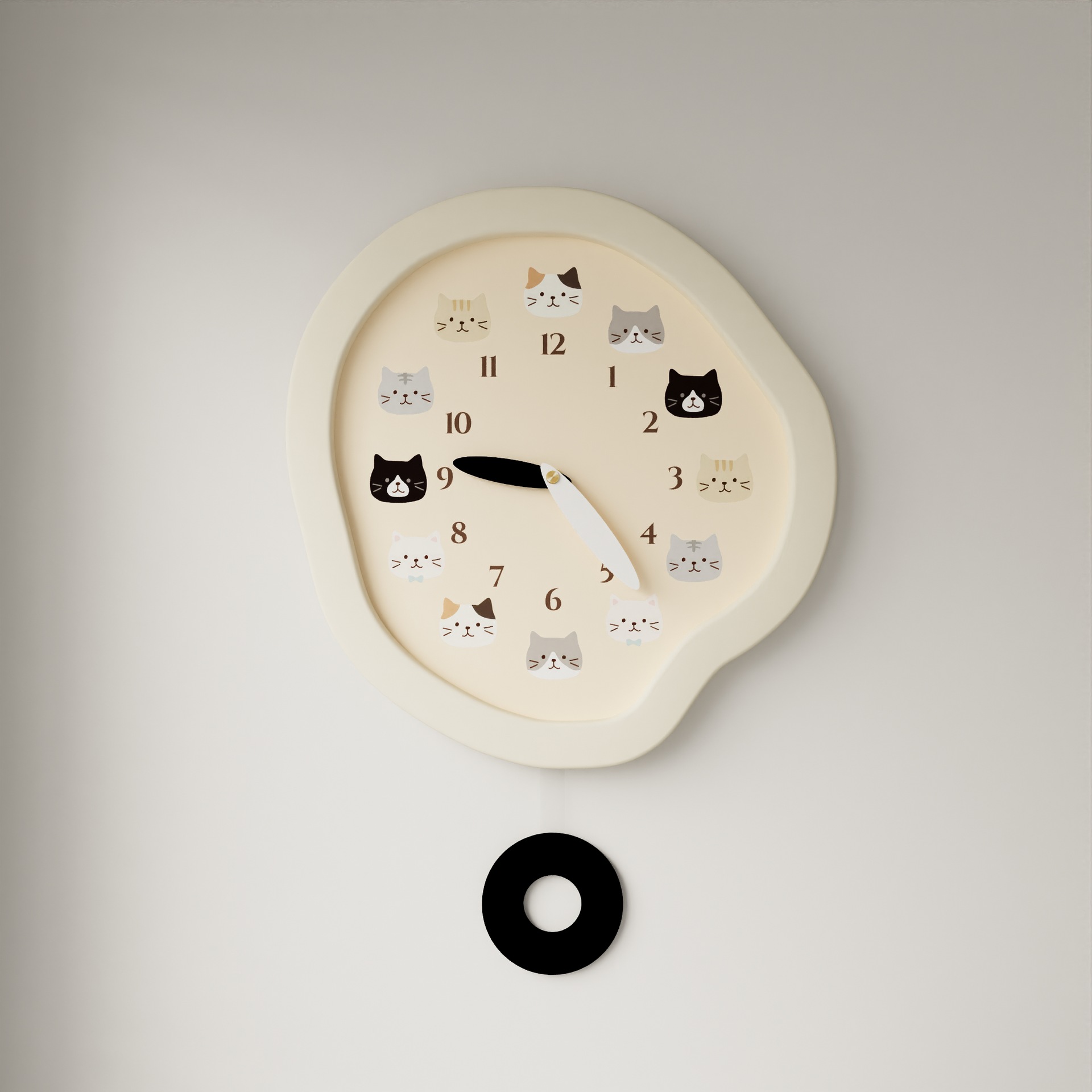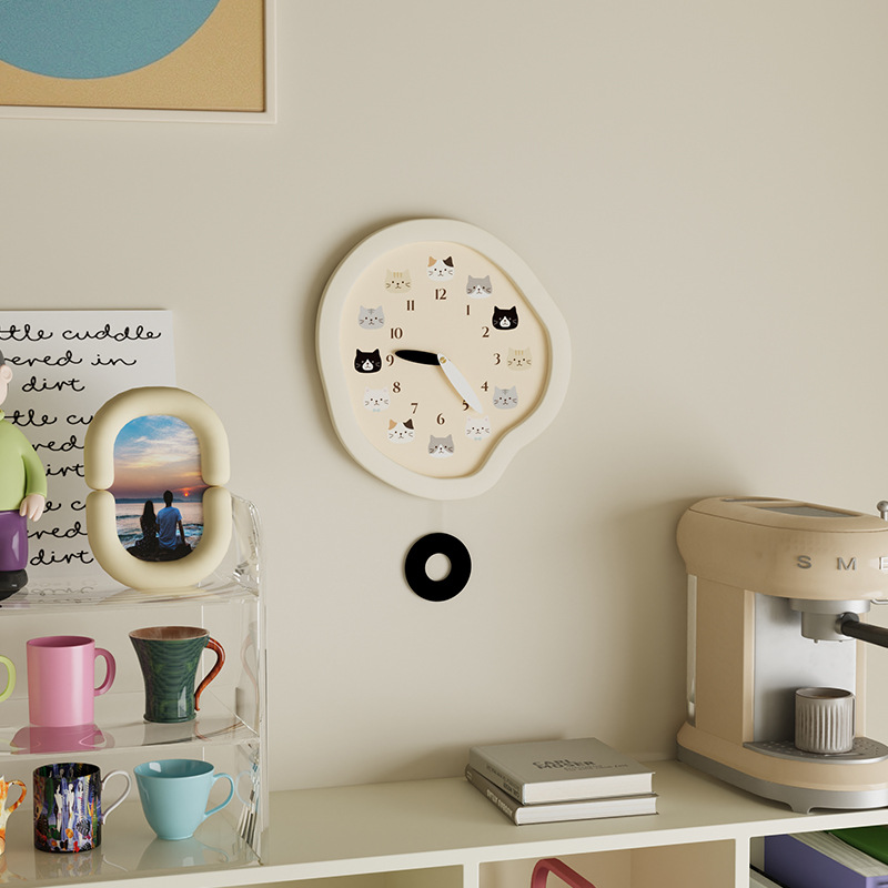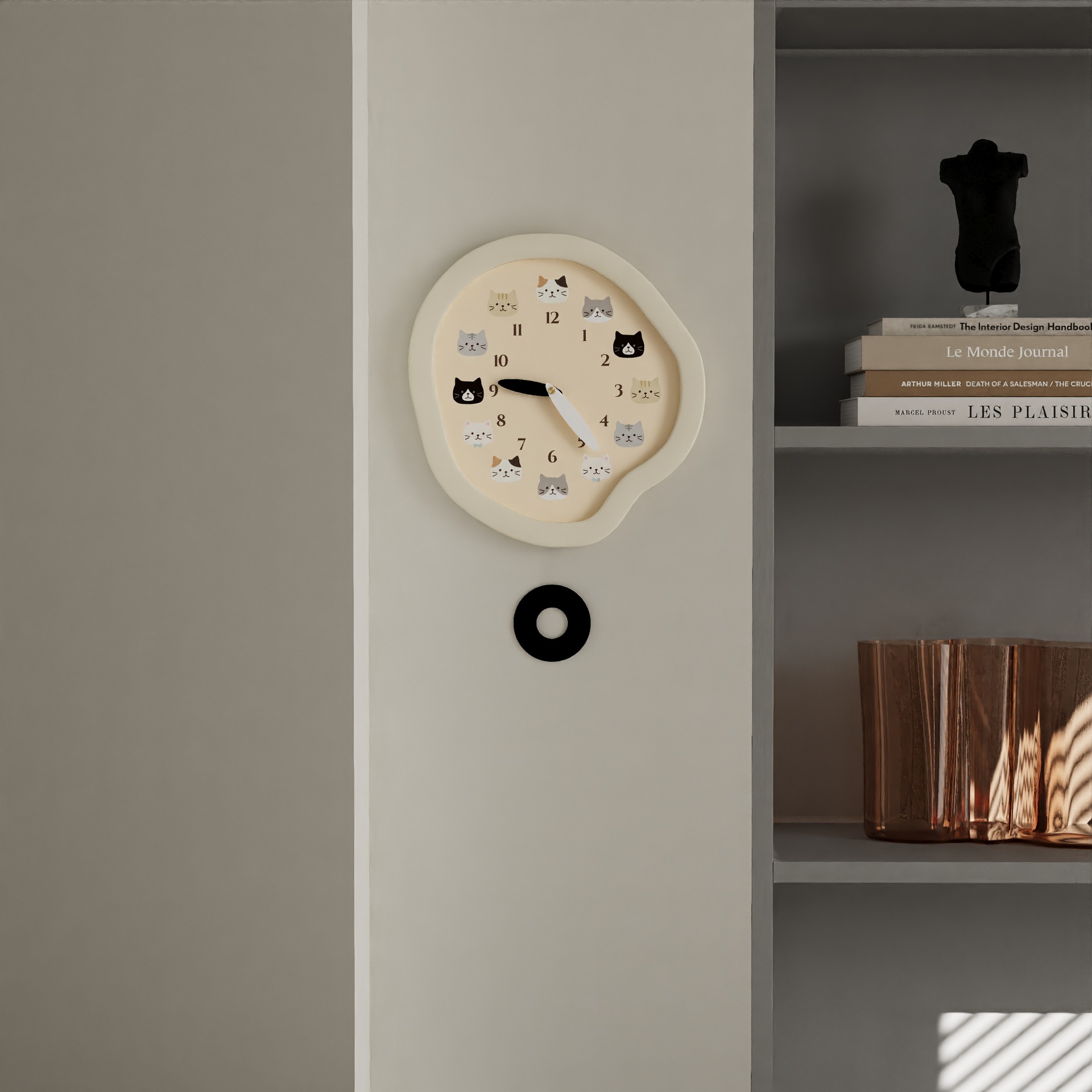 猫咪奶油风儿童房静音钟表挂钟客厅简约现代大气2024新款网红时钟