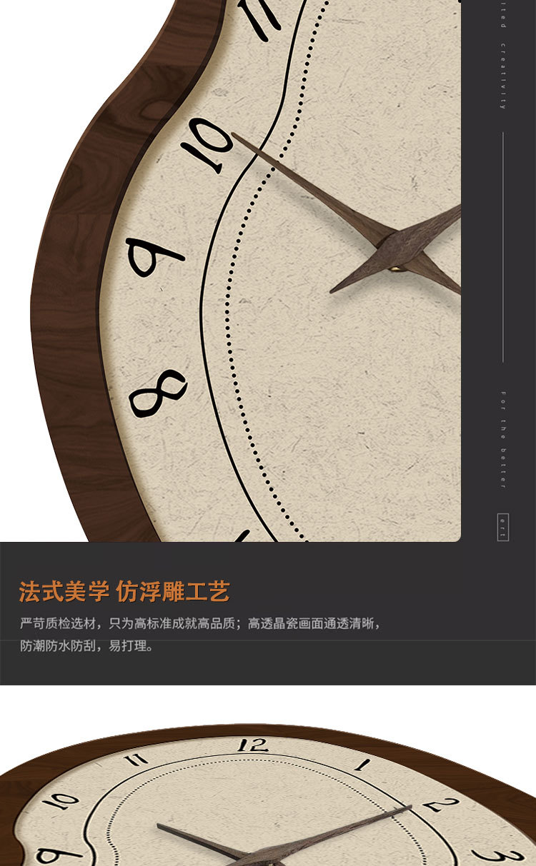 法式中古风餐厅挂墙时钟网红创意高级感客厅家用装饰挂钟艺术钟表