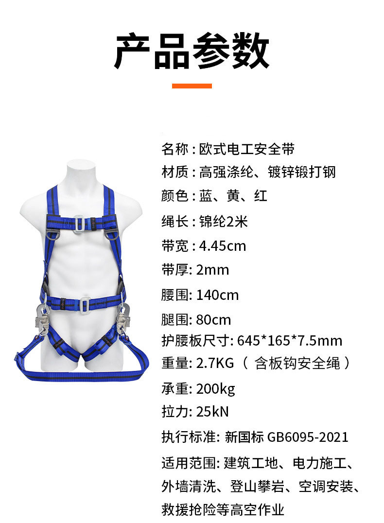国标欧式电工安全带电力电网高空作业防坠落全身五点式锦纶保险带