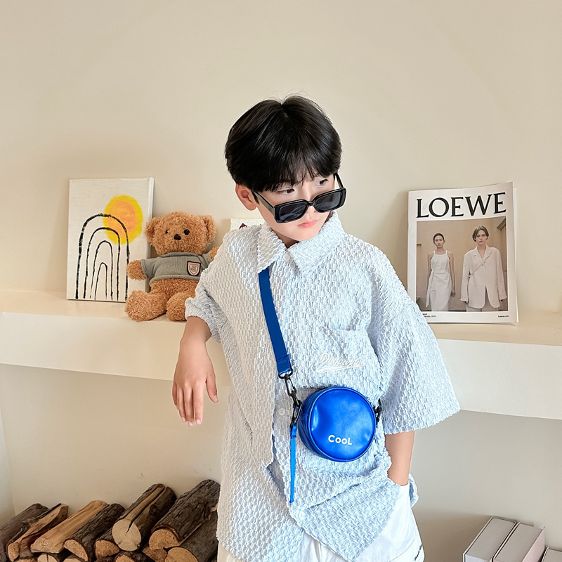 潮酷男童单肩包韩版创意圆形洋气字母小孩斜挎包新款迷你儿童包包