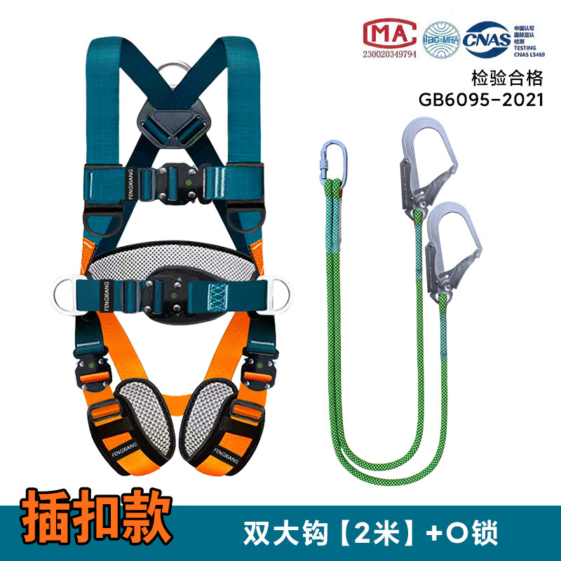 欧式全身五点式速插式安全带高空作业安全绳双挂大钩防坠落防护