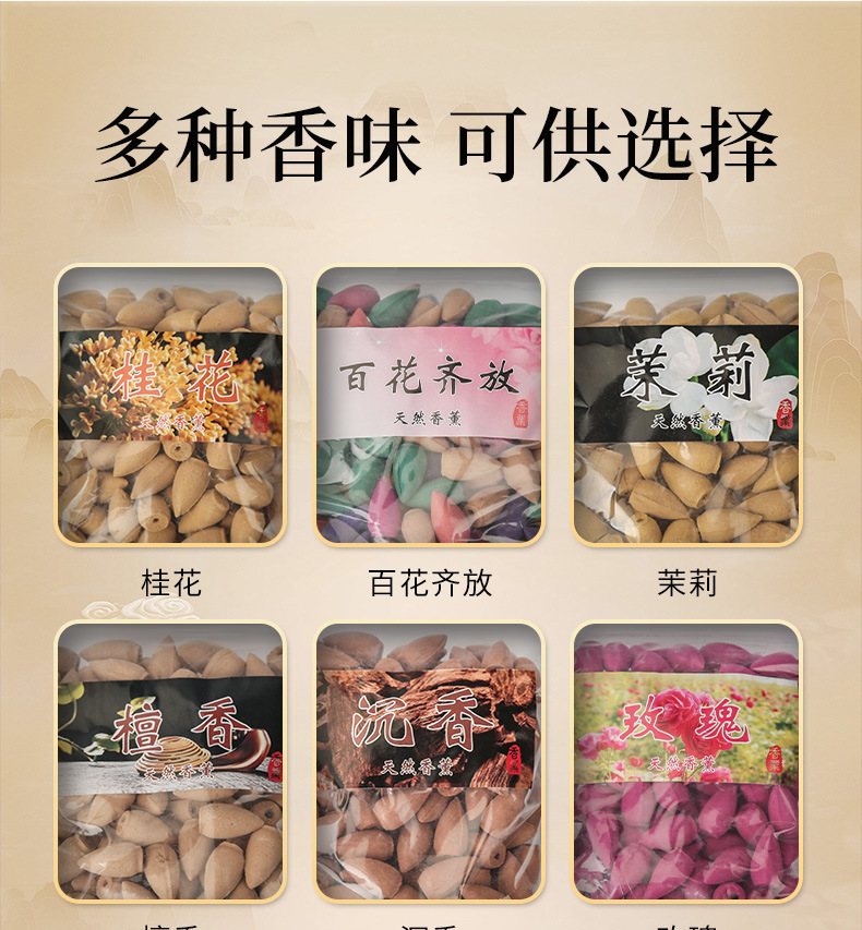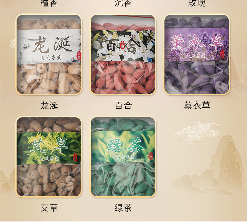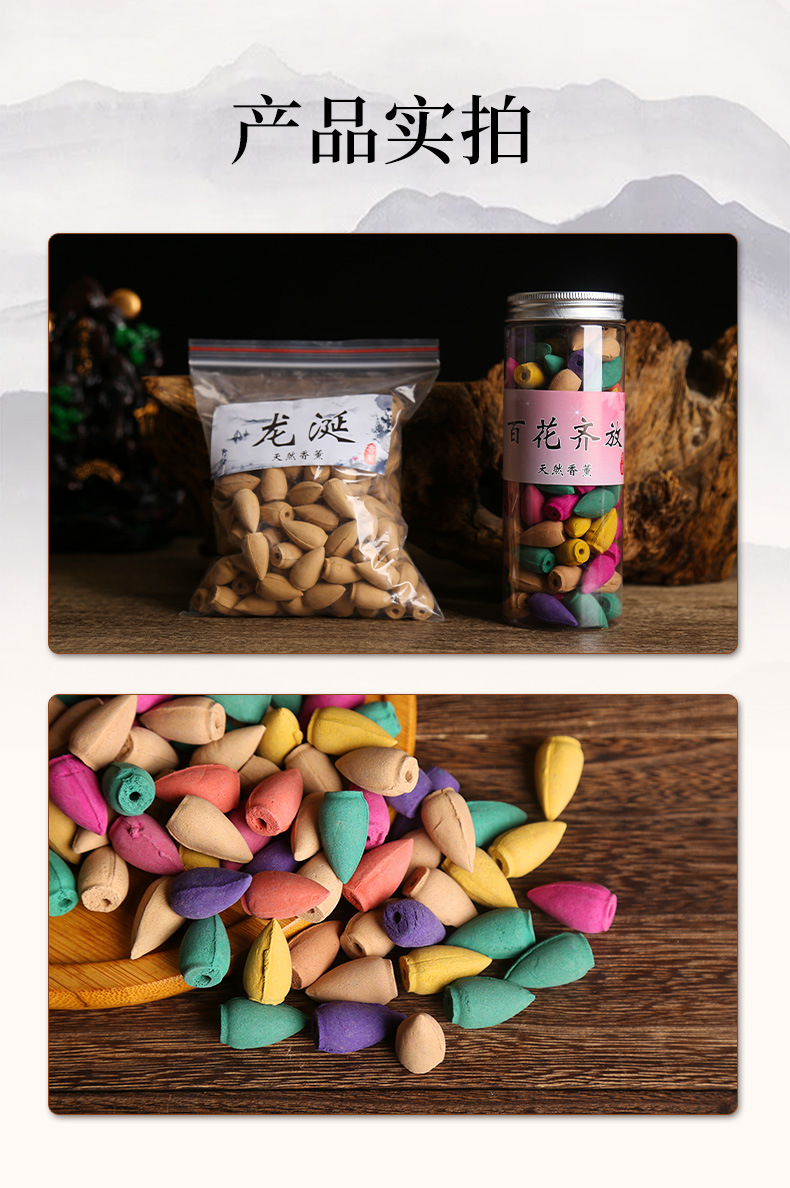倒流香粒老山檀香家用香薰沉香花香艾草塔香锥香除臭流云熏香