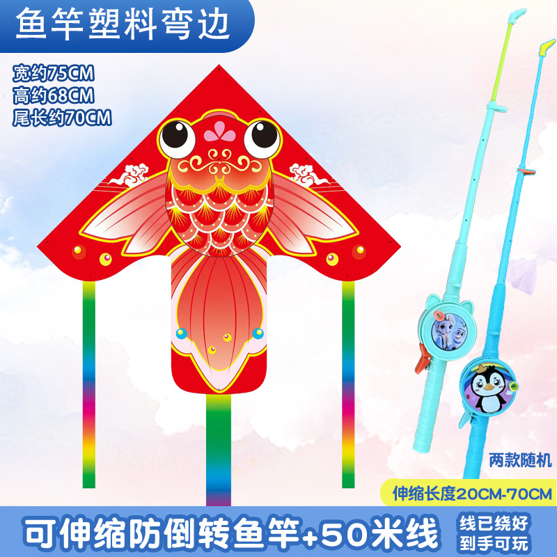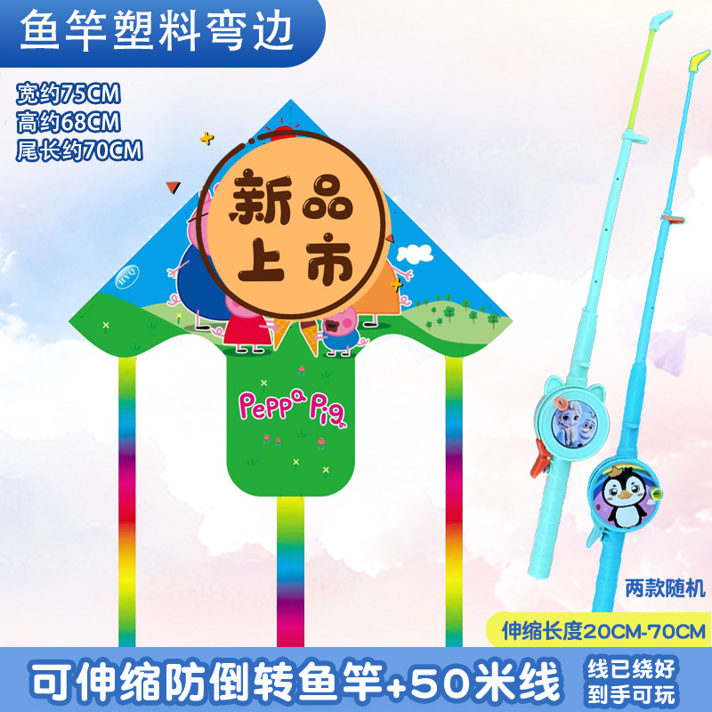 钓鱼竿风筝批发新款塑料三角鱼竿风筝微风易飞儿童手持风筝地摊