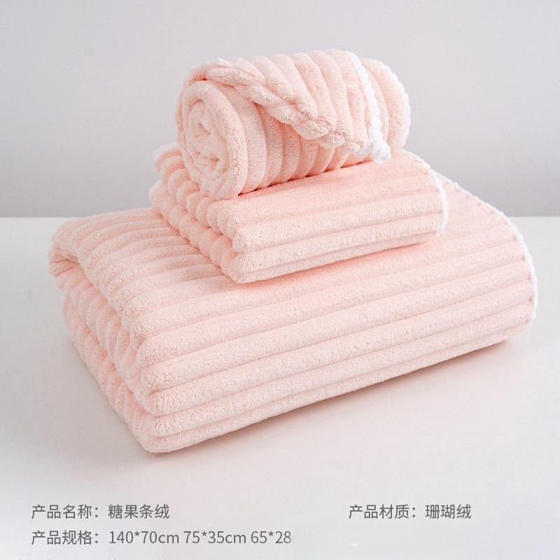 糖果条毛巾浴巾浴帽加厚吸水不掉毛a类成人儿童家用珊瑚绒干发帽