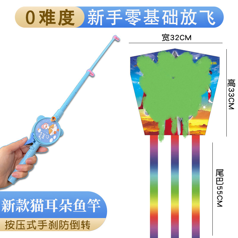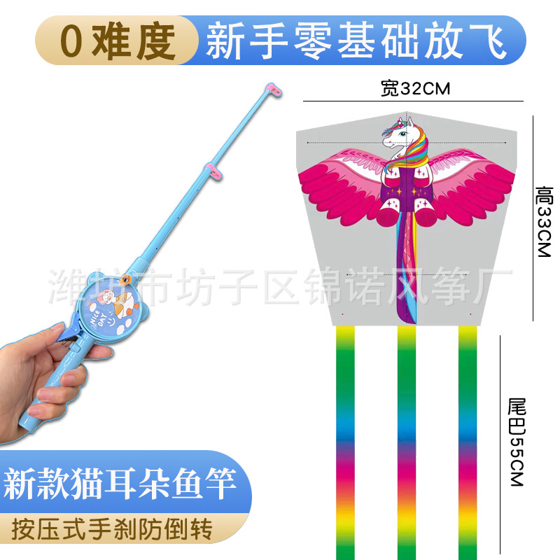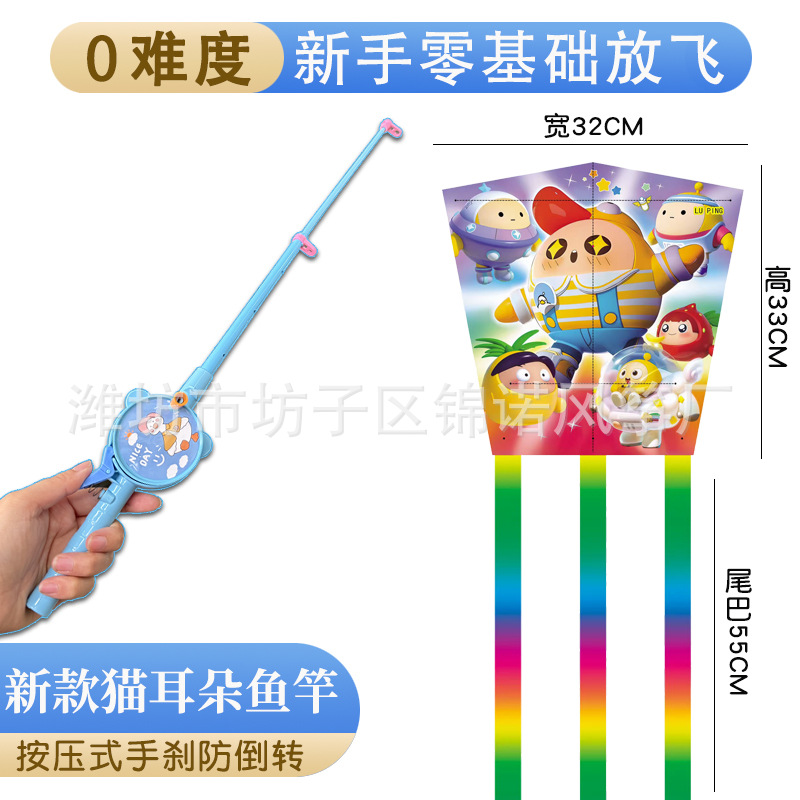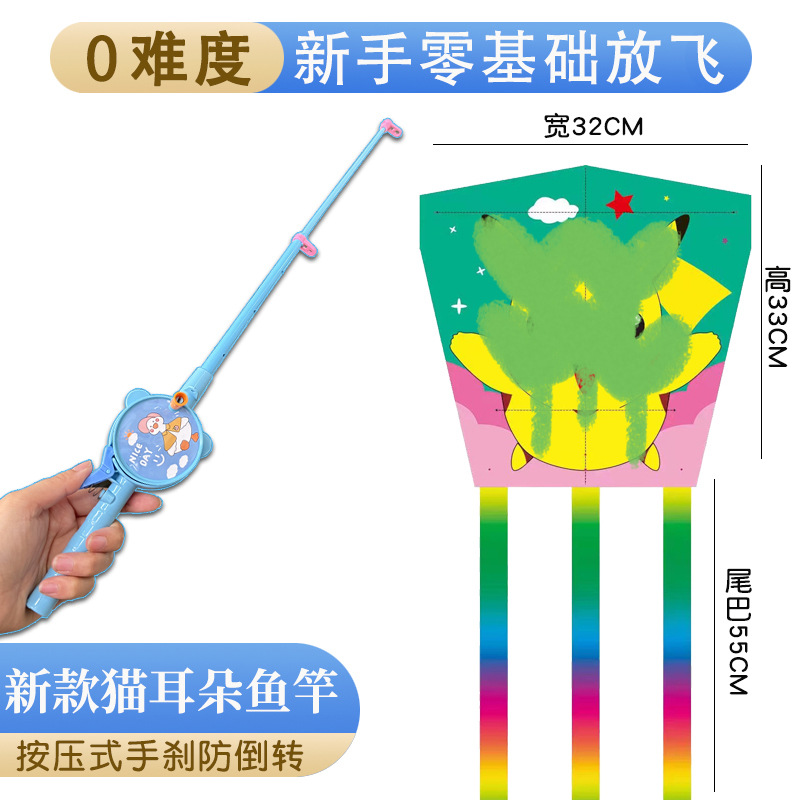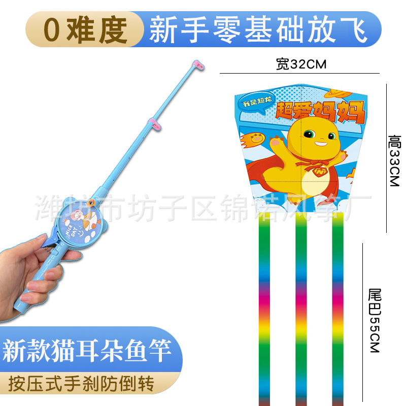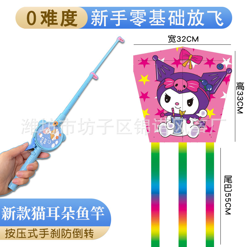 儿童伸缩鱼竿风筝手持塑料卡通风筝亲子户外校园春游玩具带线批发