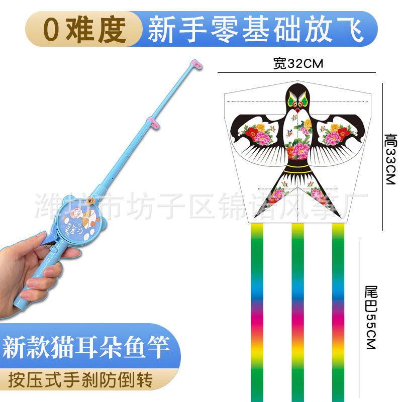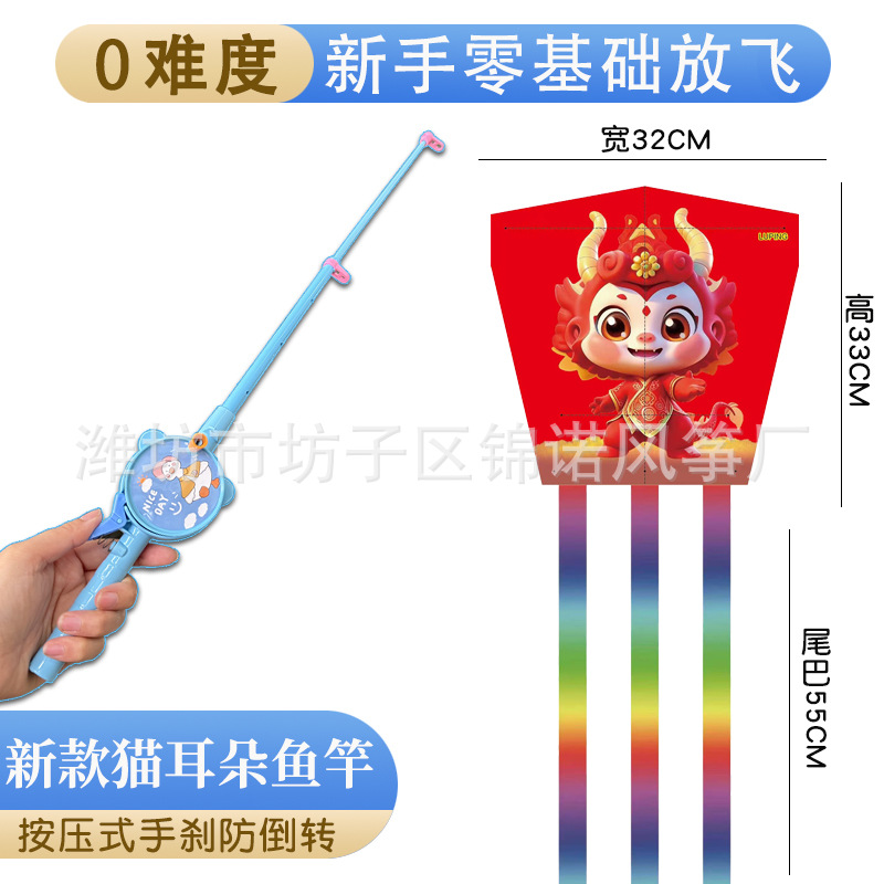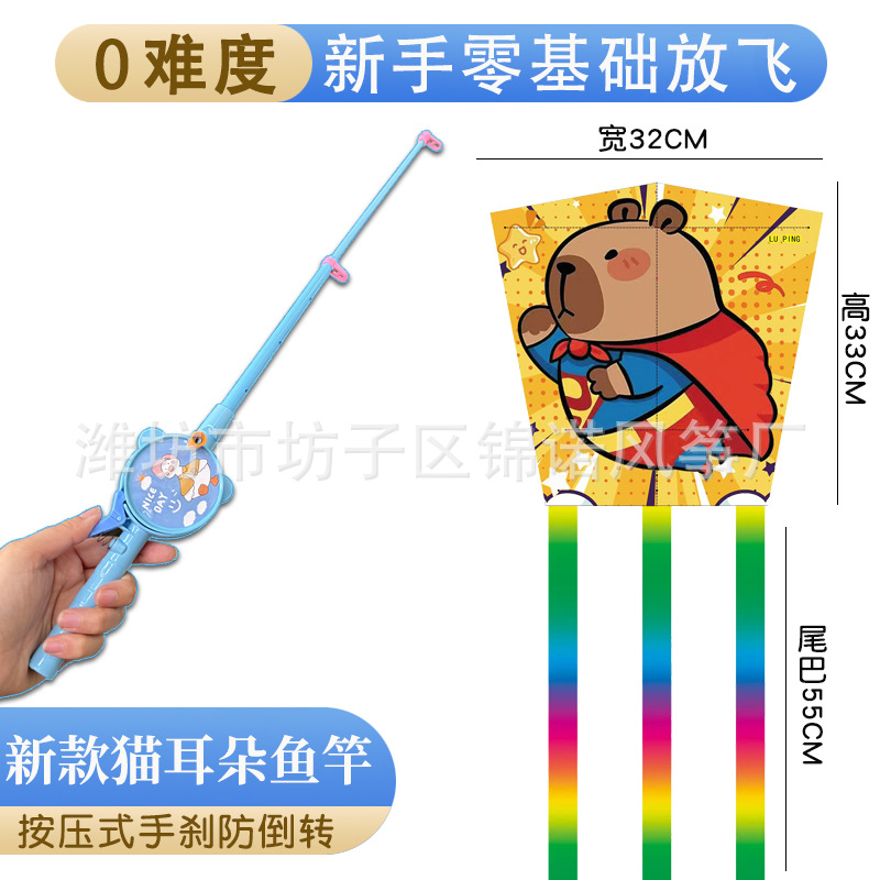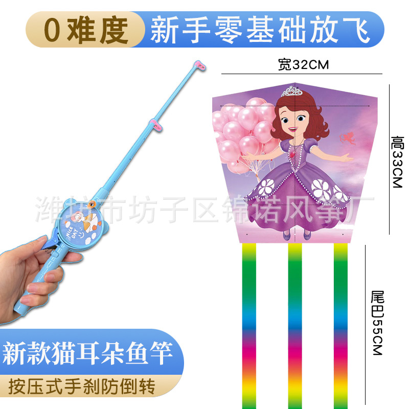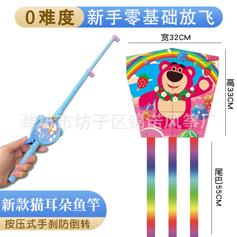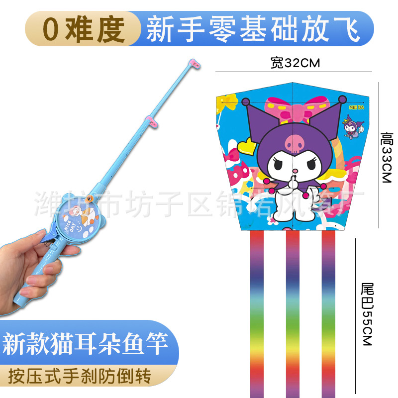 儿童伸缩鱼竿风筝手持塑料卡通风筝亲子户外校园春游玩具带线批发