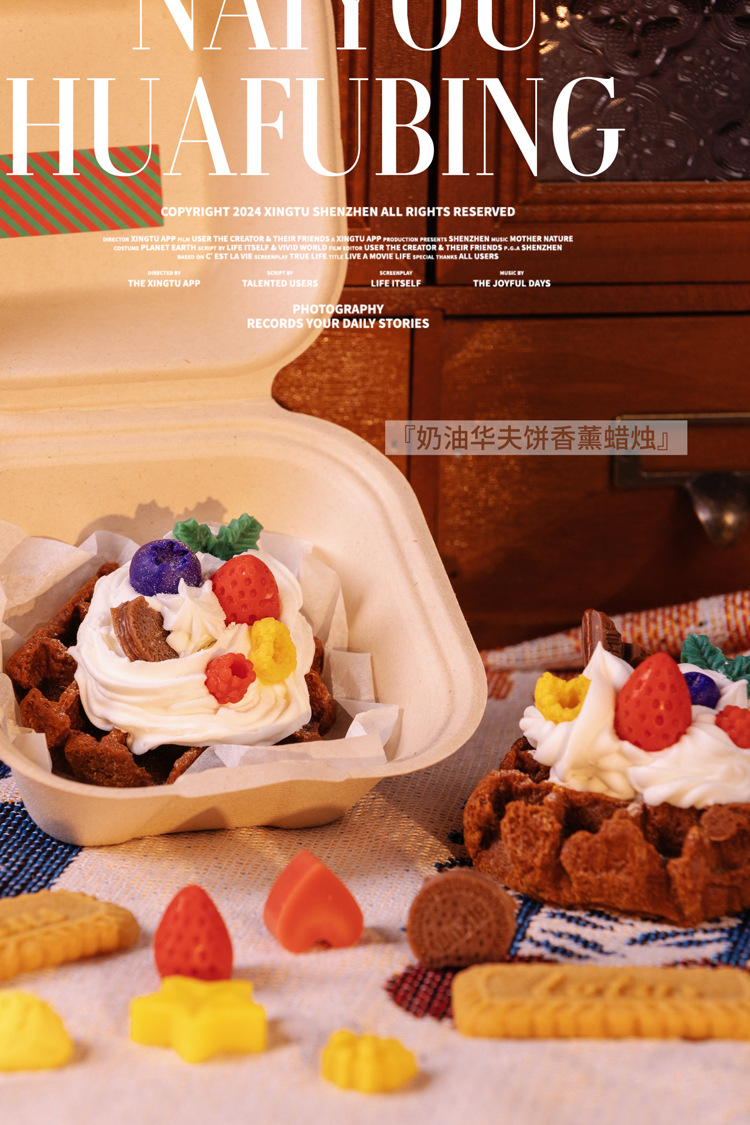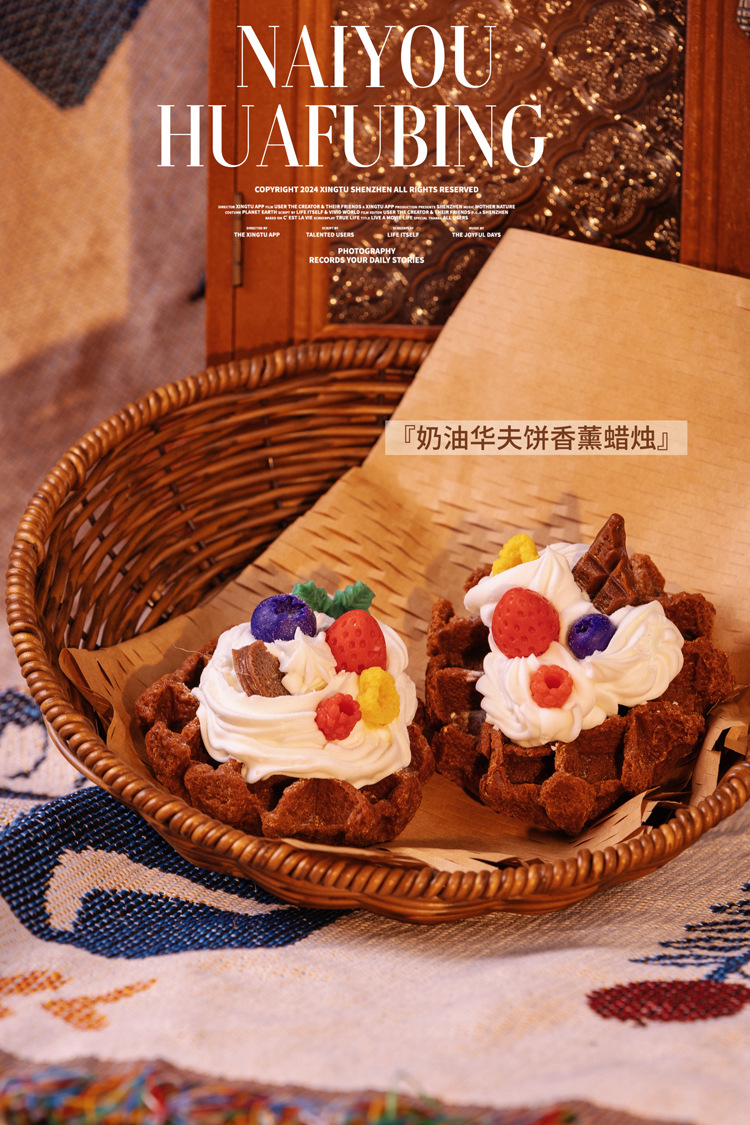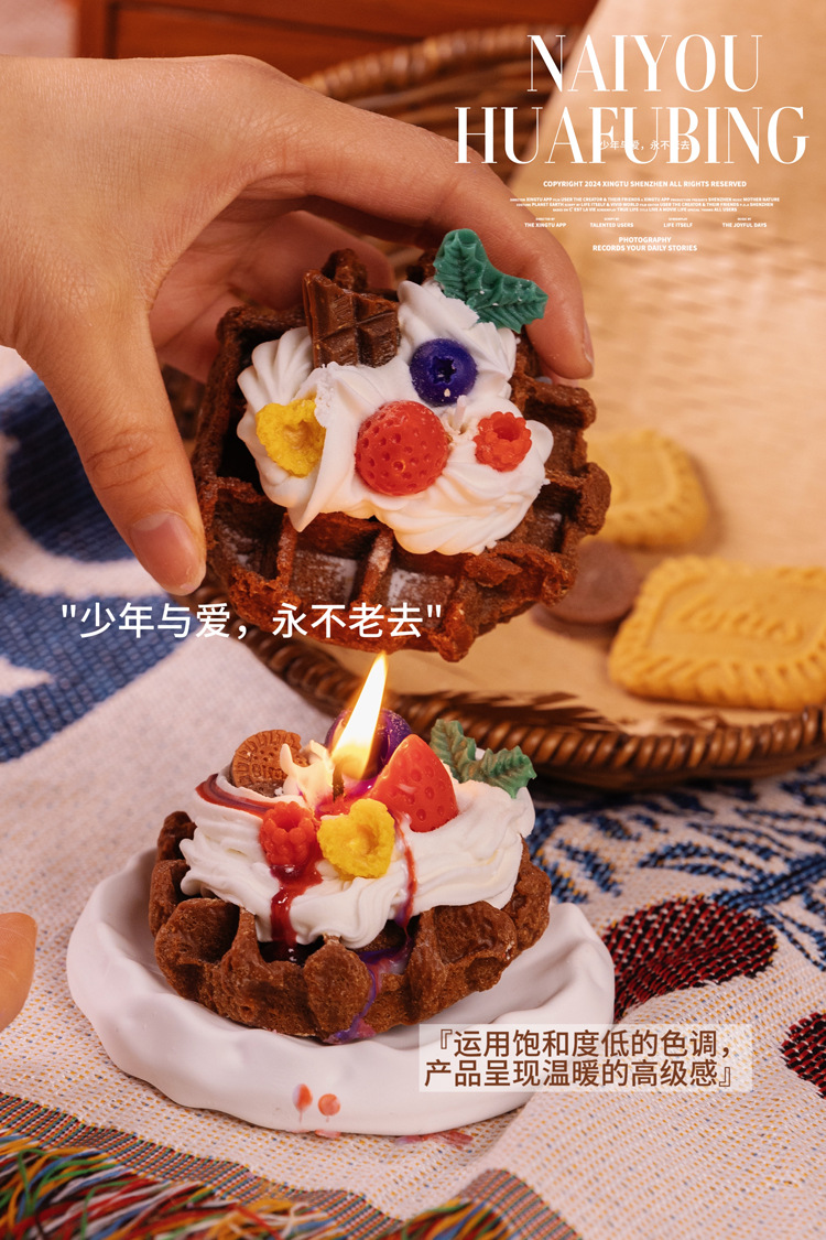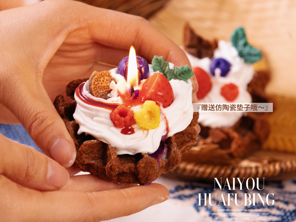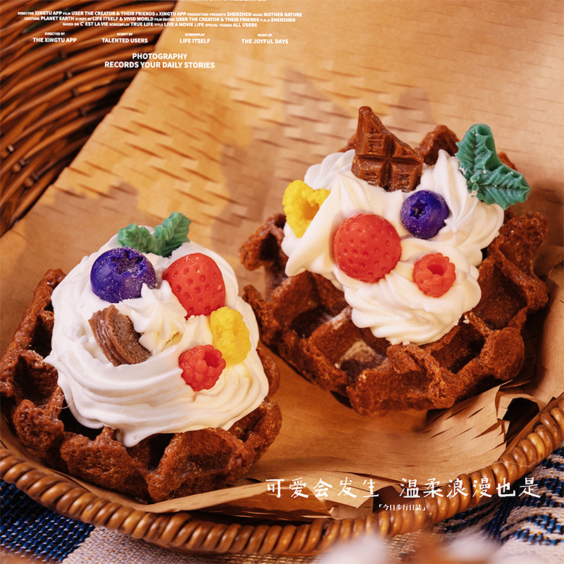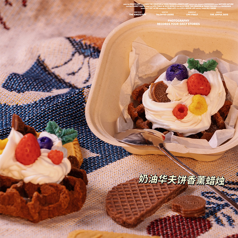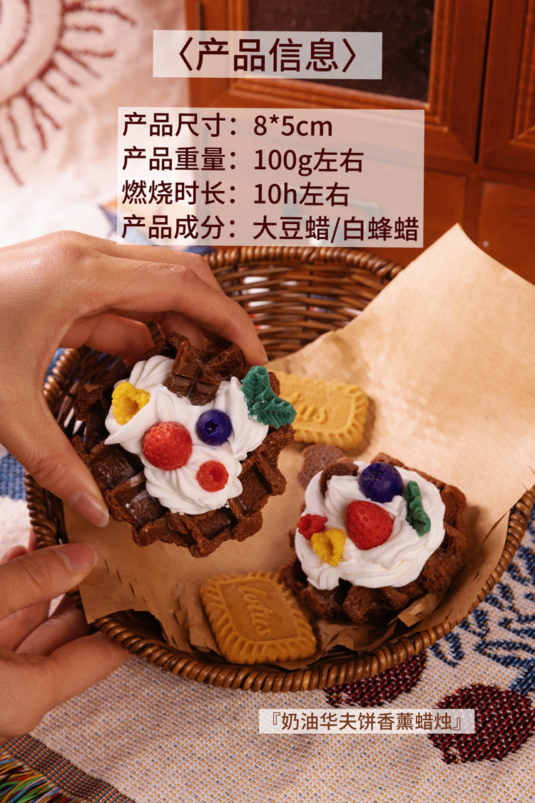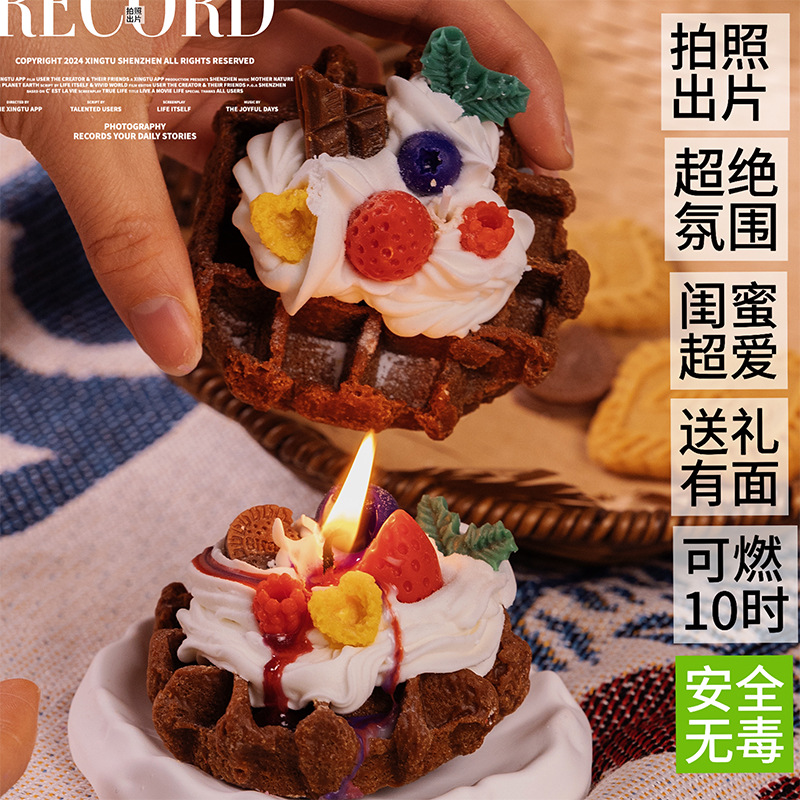 ins风可爱手作华夫饼甜品香薰蜡烛房间摆设创意小众圣诞礼物跨境