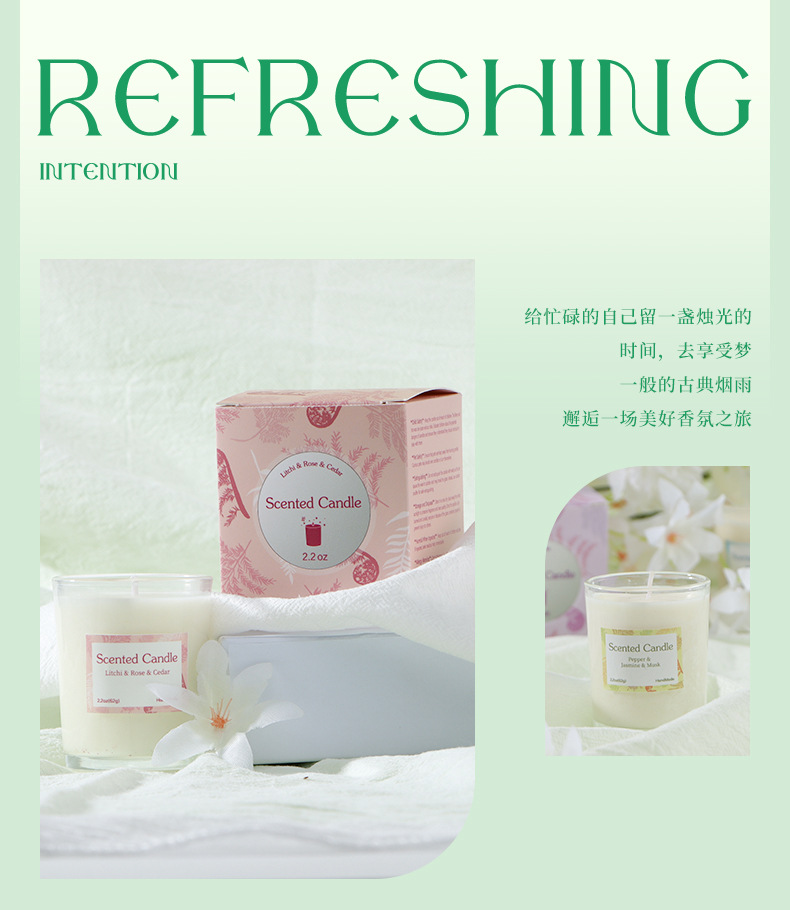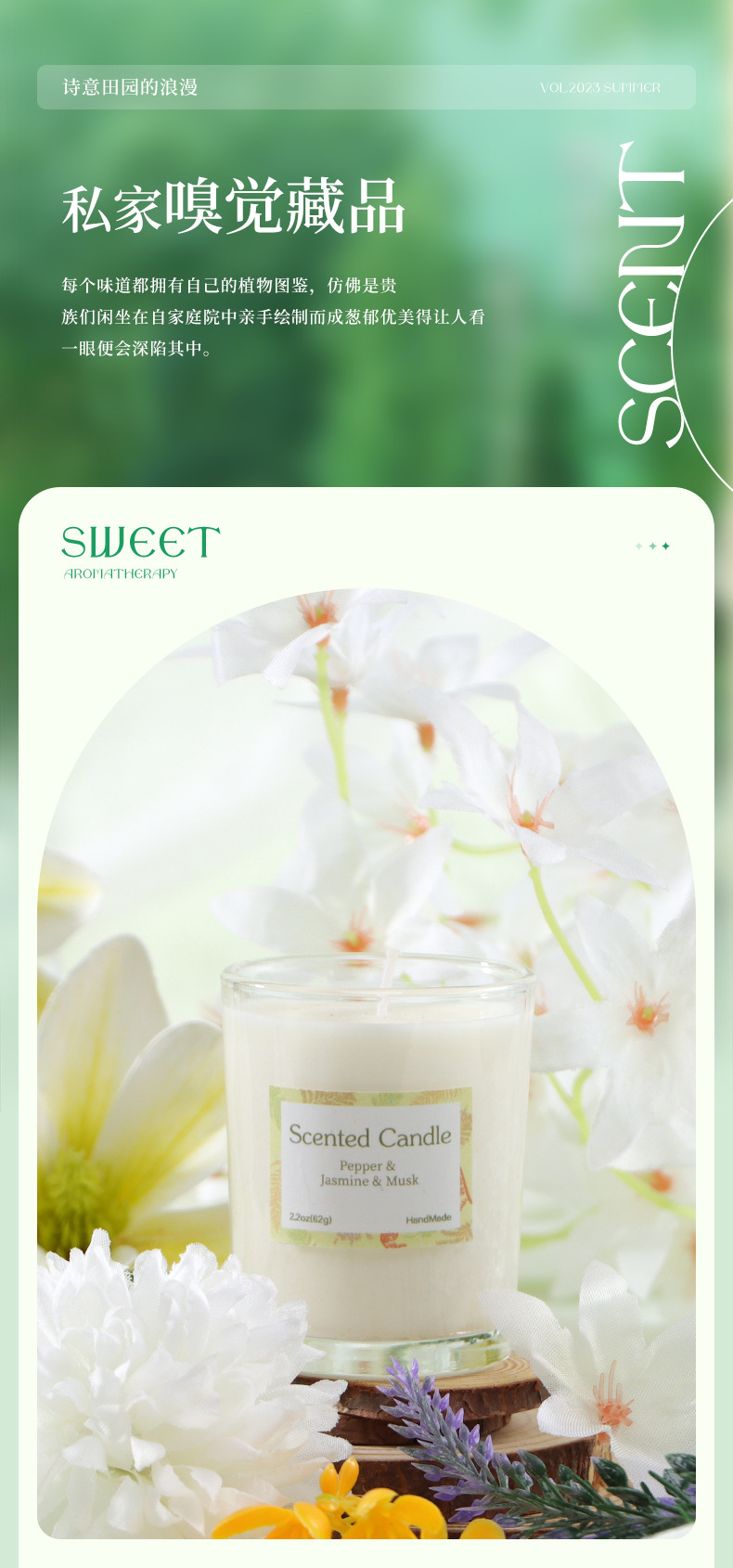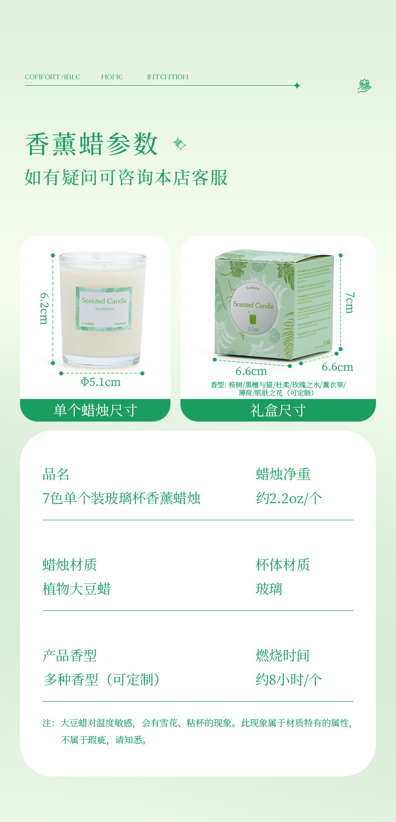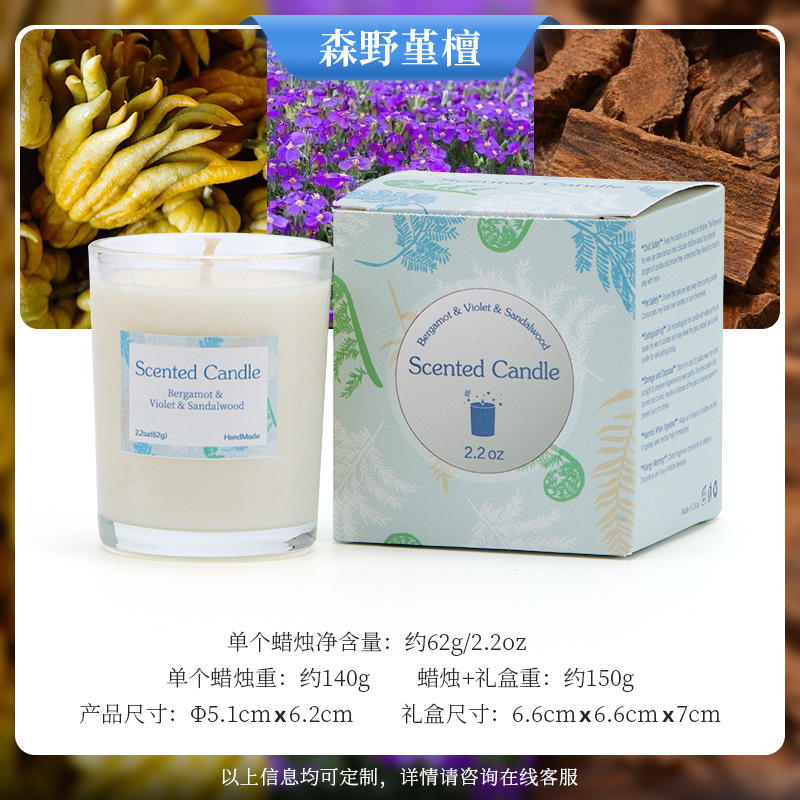 单个礼盒装森野堇檀香薰蜡烛桉树薄荷家用室内卧室香氛薰衣草香薰