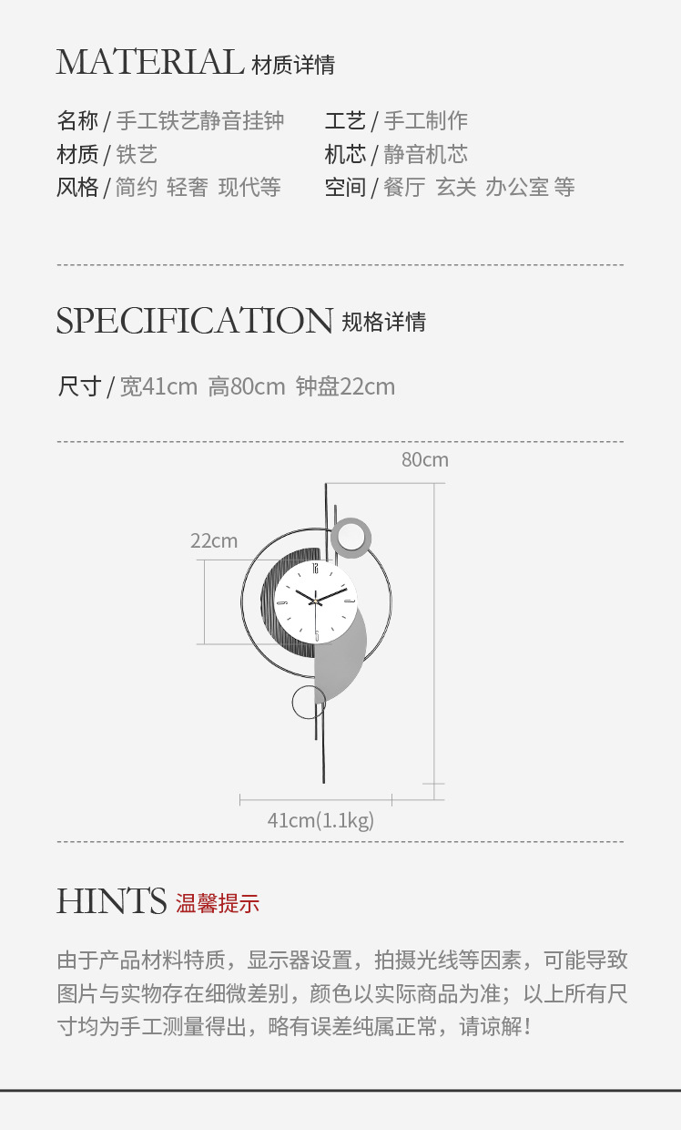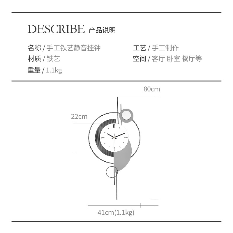 网红餐厅背景墙面装饰时钟挂墙创意钟表挂钟客厅2026新款静音挂表