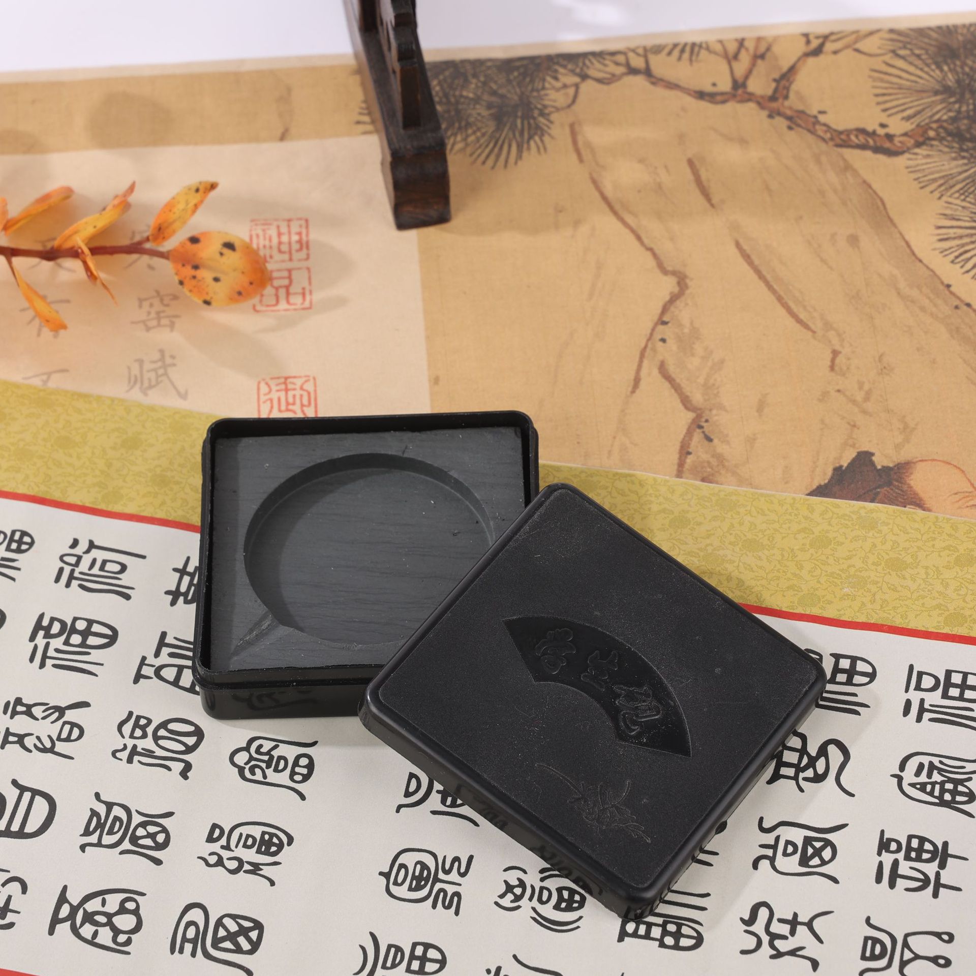 初学者便携砚台墨盒学生书法防干笔舔笔多用墨池砚台带盖墨盒砚台
