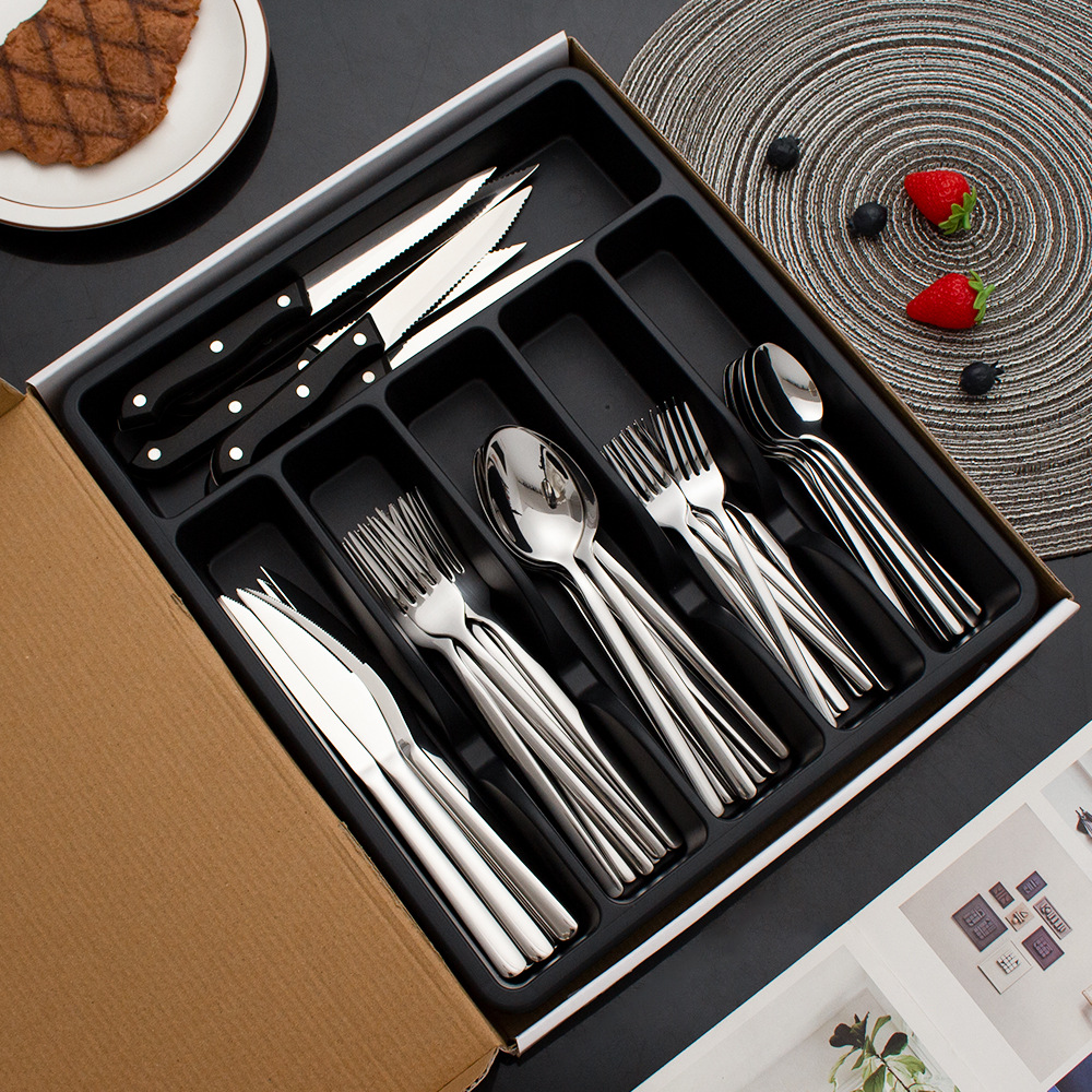 亚马逊加厚不锈钢餐具48件套装跨境西餐具牛排刀叉勺厨房收纳盒