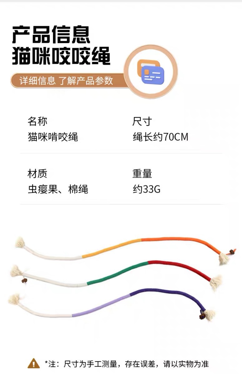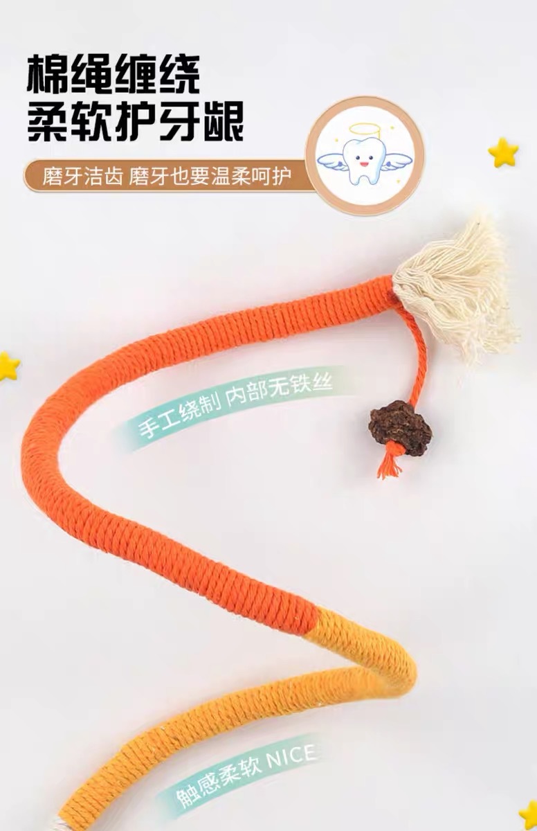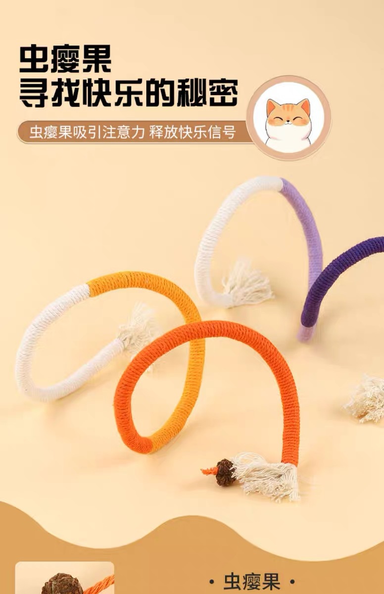 猫咪咬绳玩具自嗨解闷磨牙棒棉绳静音啃咬虫瘿果幼猫玩具逗猫用品