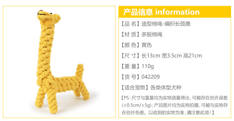 狗狗玩具编织长颈鹿金毛磨牙解闷狗咬绳泰迪耐咬互动棉绳宠物用品