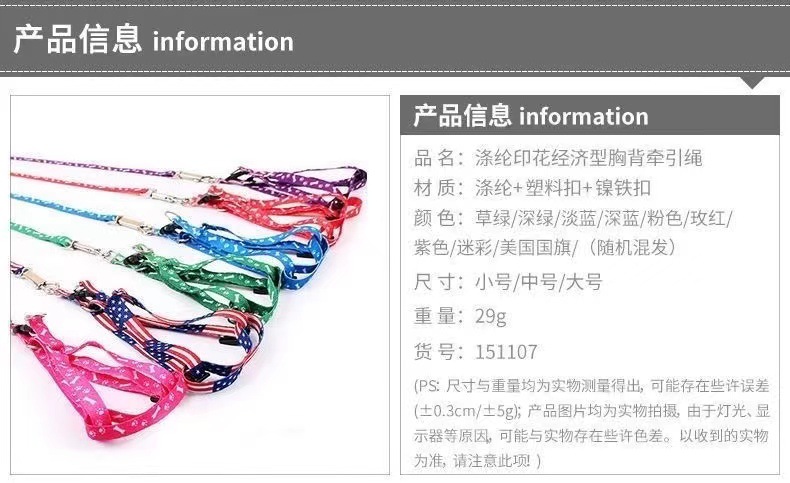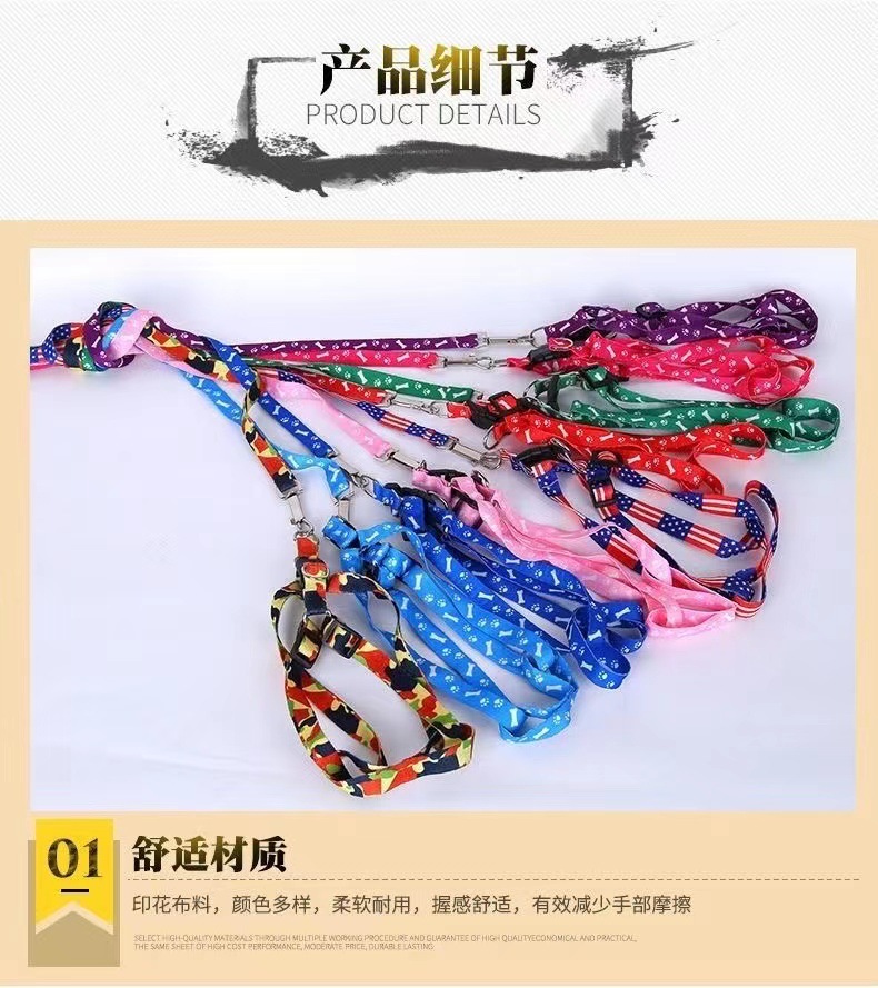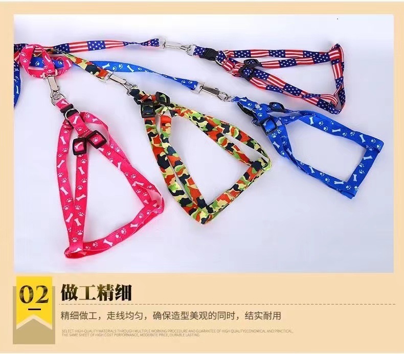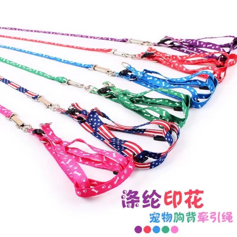 猫咪牵引绳 骨头印花遛狗神器专用猫绳狗绳 宠物胸背带猫链用品