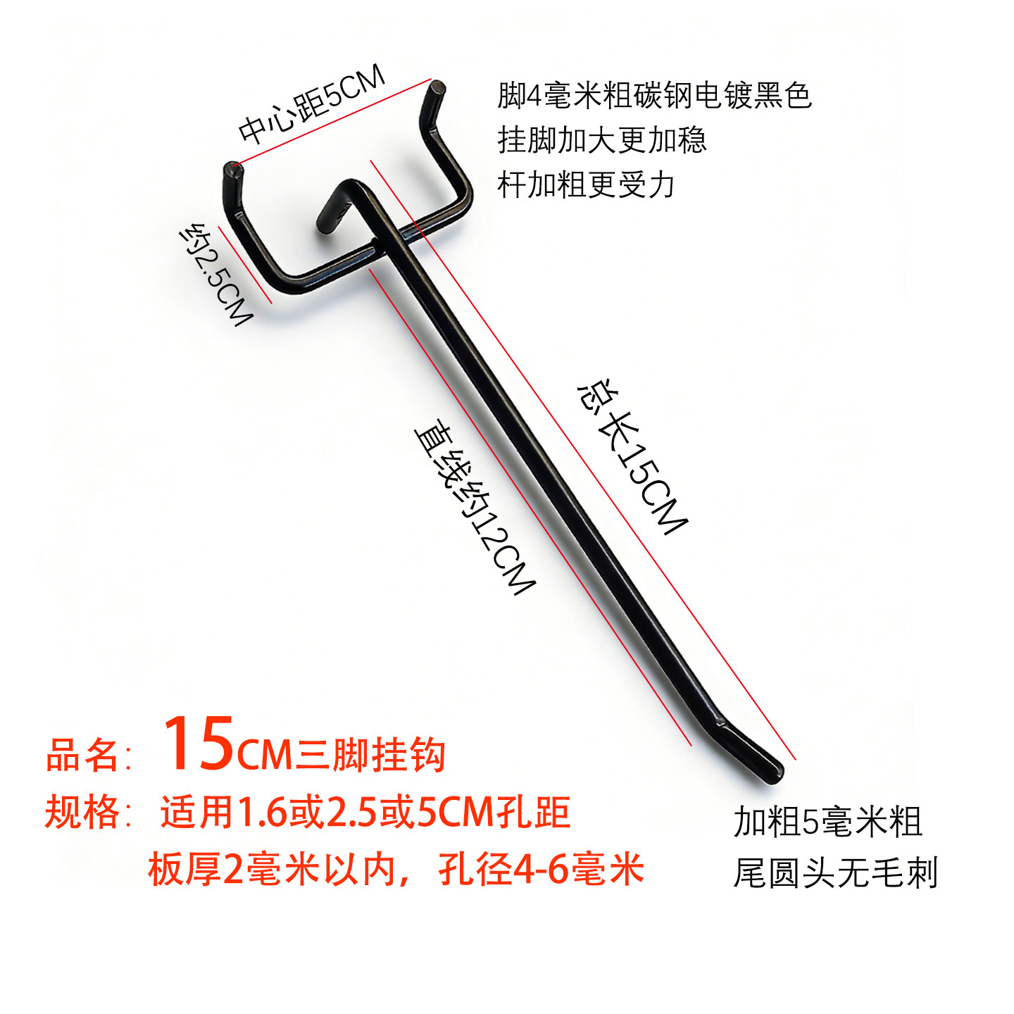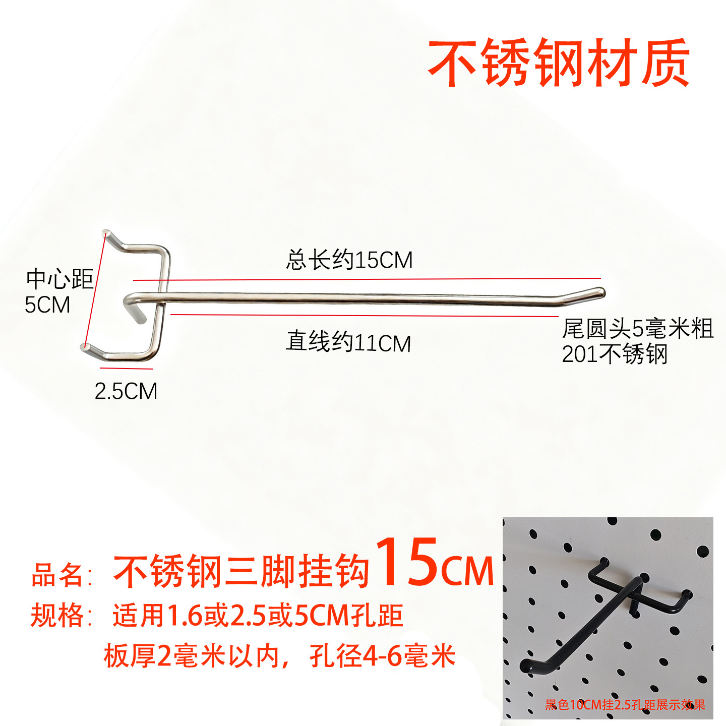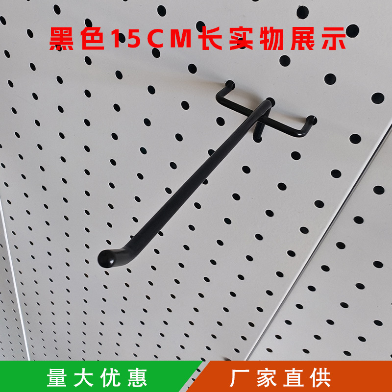 黑色洞洞板单线挂钩金属展示架配件货架圆孔板三脚钩加粗不锈钢